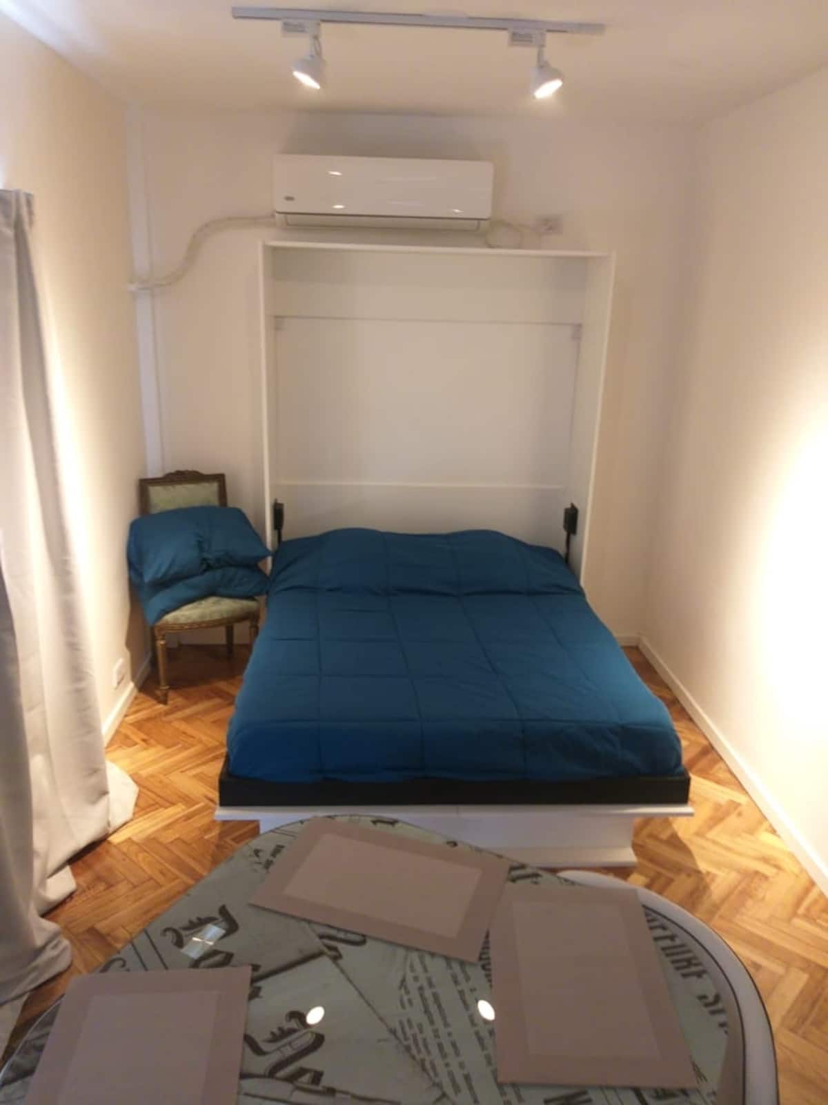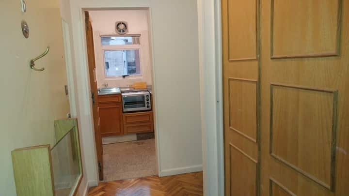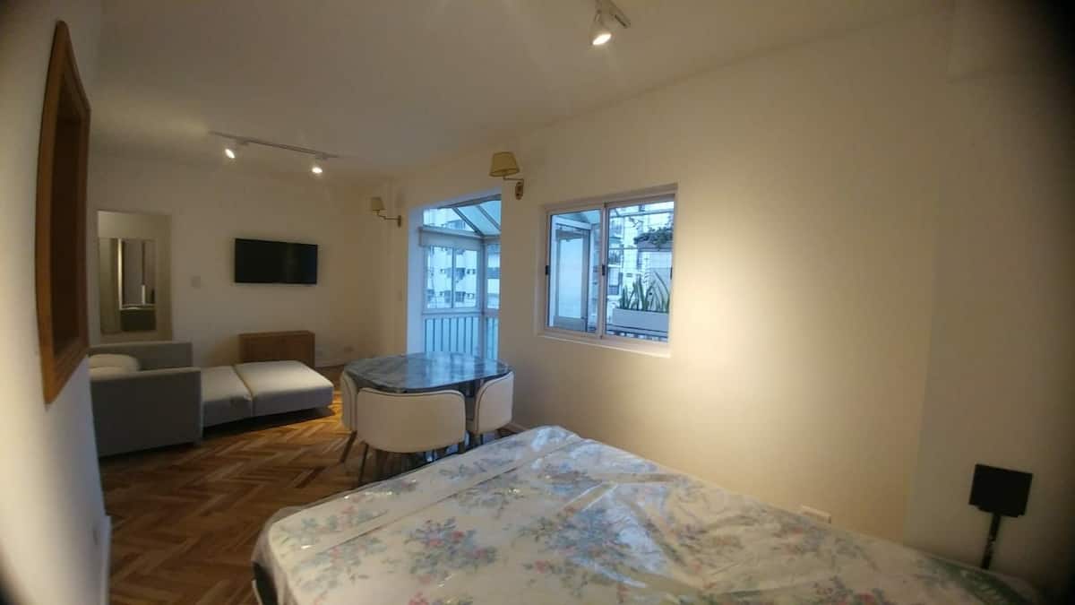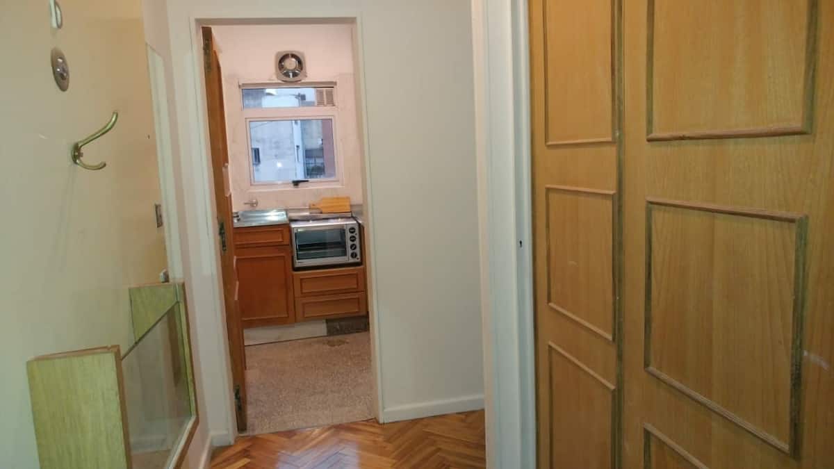 Kitnet em Palermo com varanda. O imóvel fica em área silenciosa e recebe boa iluminação natural.