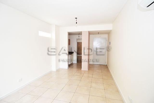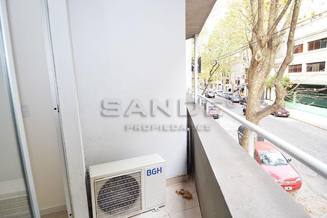 Kitnet de 1 ambiente, de frente para a rua, com varanda, em Almagro. Possui kitchenette, banheiro completo, ar-condicionado e pisos cerâmicos. Inclui lavanderia no prédio e foi recém-pintado. É permitido uso profissional.