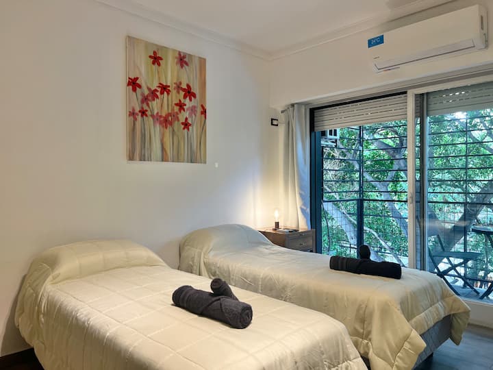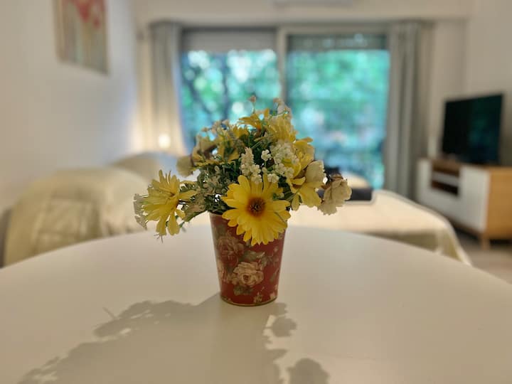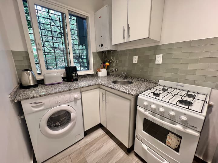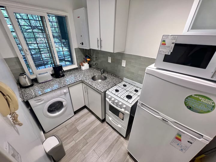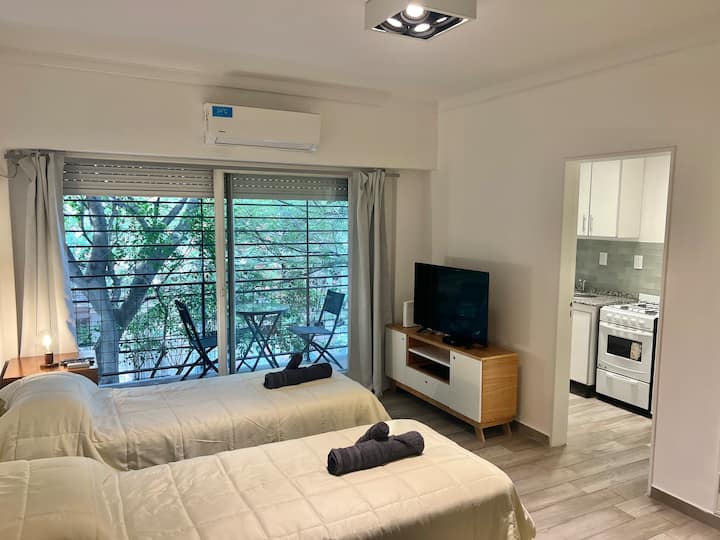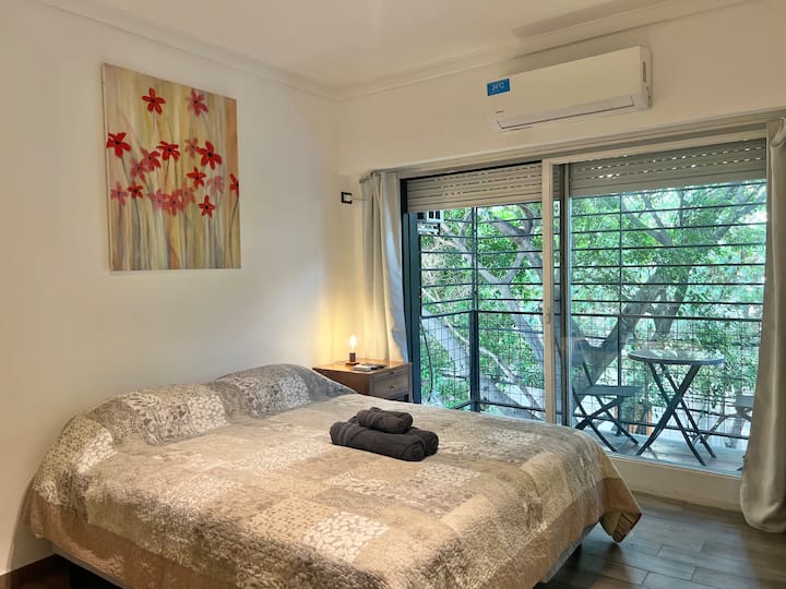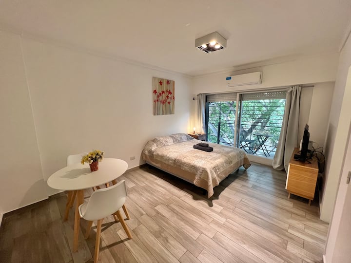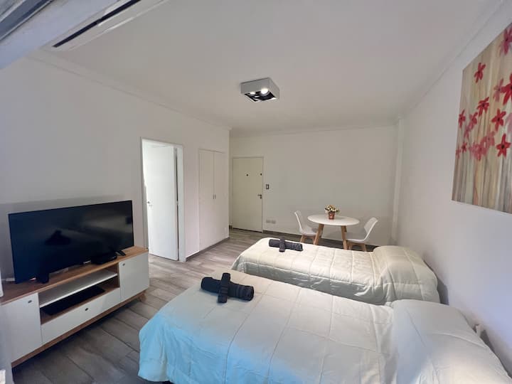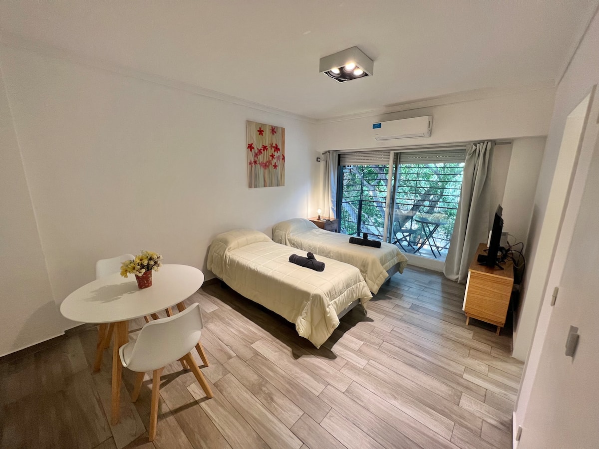Apartamento de 1 ambiente em Palermo Soho, com varanda. Fica perto da Plaza Armenia e a alguns quarteirões da Plaza Serrano, com opções de transporte nas proximidades. A reserva para estadas de 20 dias ou mais pode incluir uma política de consumo de energia elétrica: se o uso ultrapassar 500 kWh durante a estadia, poderá haver cobrança adicional. O acesso ao imóvel exige o envio prévio de identificação de todos os passageiros para registro no prédio e o check-in é feito por autoatendimento, com