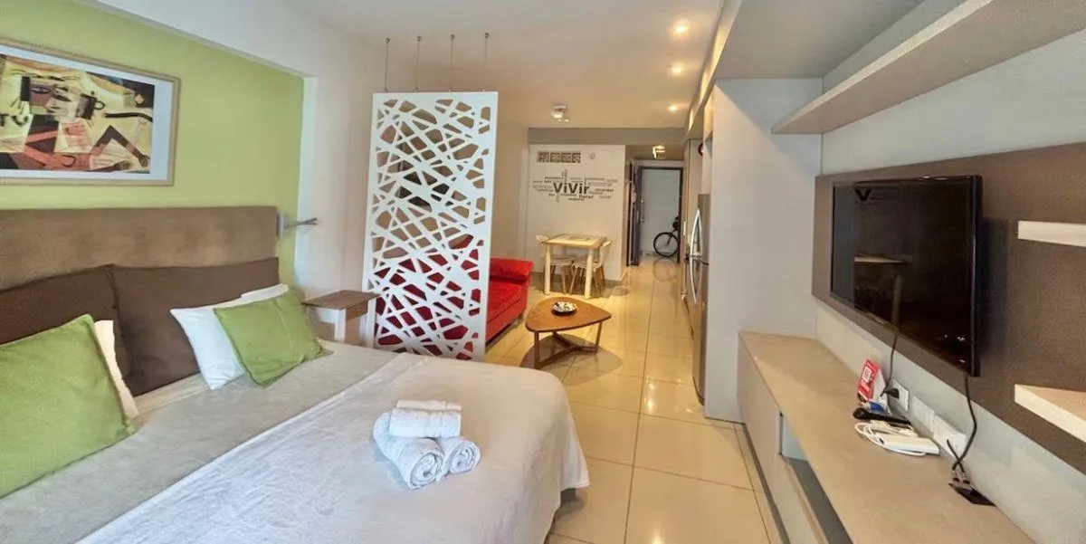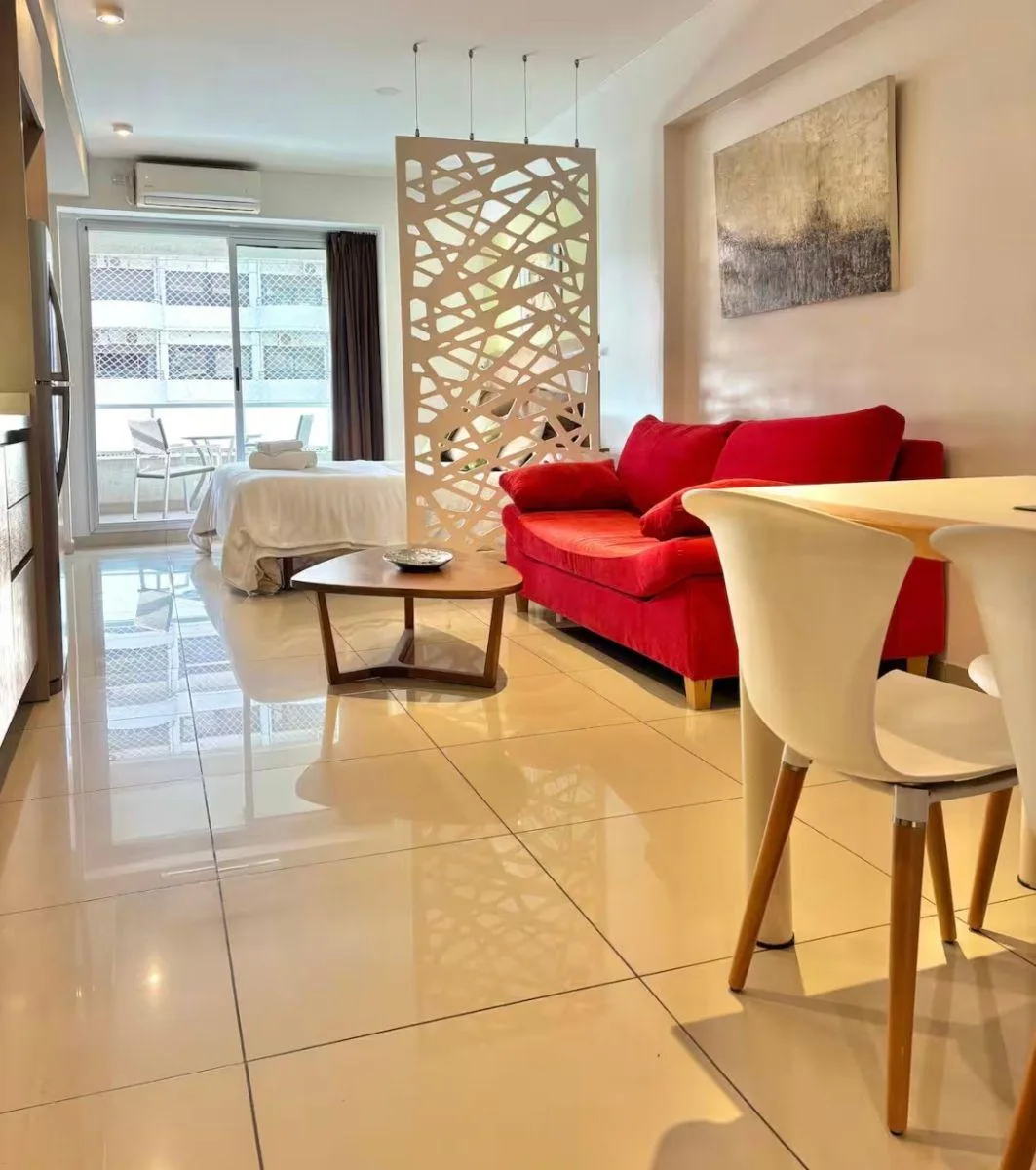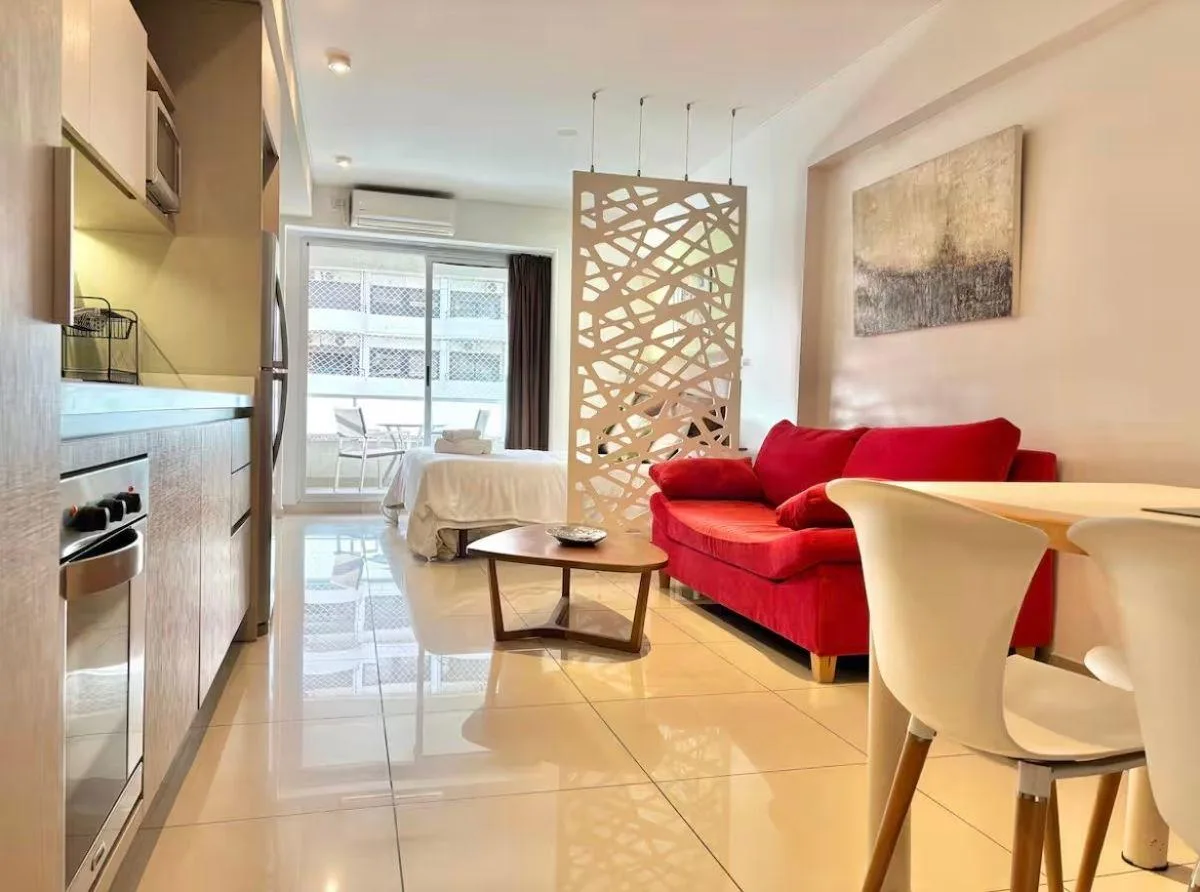 Kitnet de 39 m² para locação temporária em Palermo, com frente para a rua, varanda e 1 banheiro. Cozinha equipada, com ar-condicionado, elevador e acesso à piscina. Fica na Calle Cerviño, próximo à Av. General Las Heras e às imediações de Parque Las Heras, Ecoparque, Plaza Italia, Plaza Sicilia, Jardín Botánico, Jardín Japonés e Av. Libertador. Disponível a partir de abril, por U$D 850.