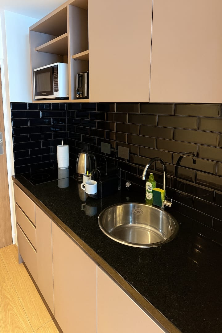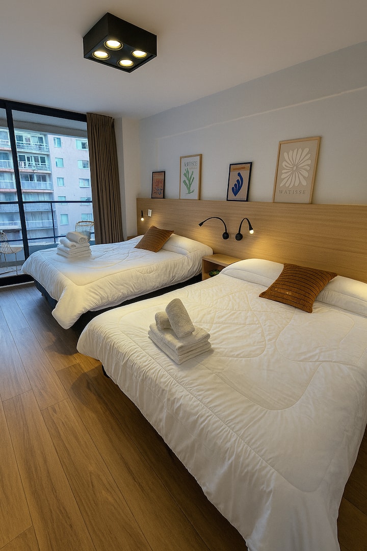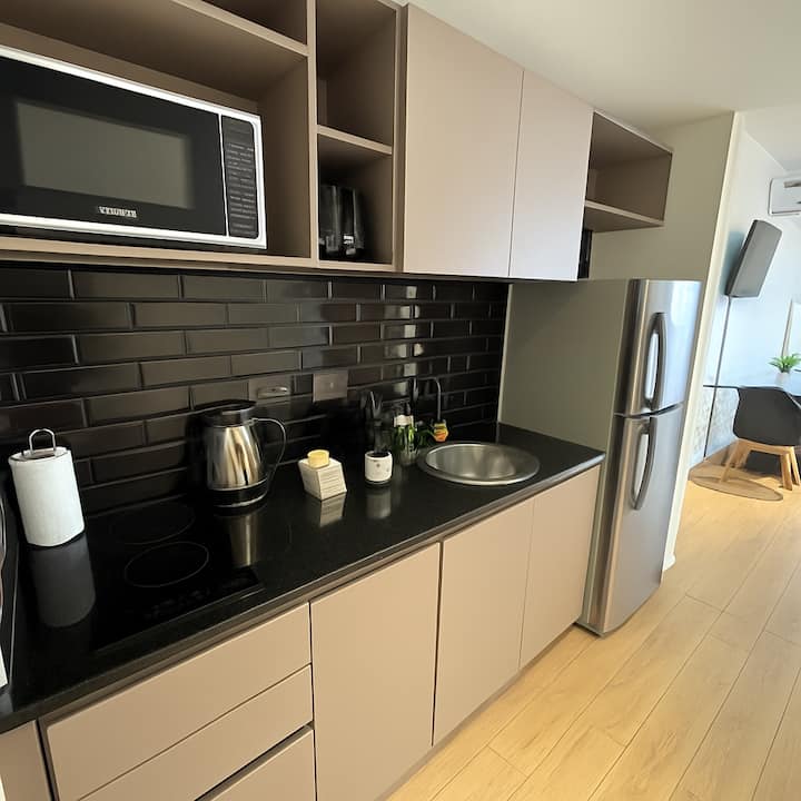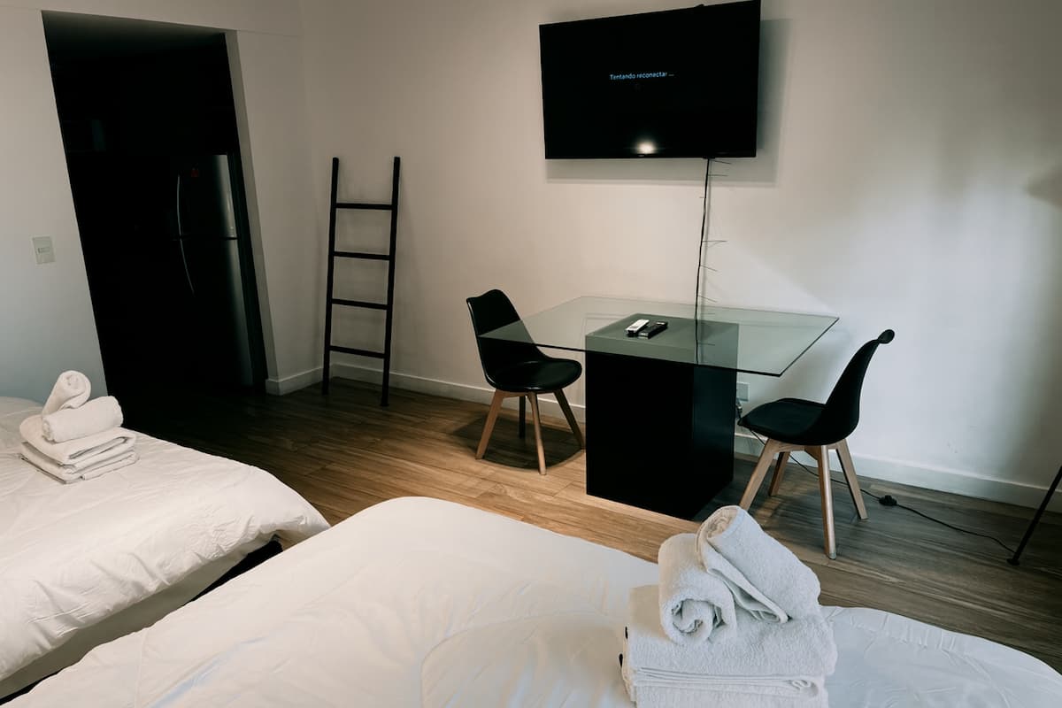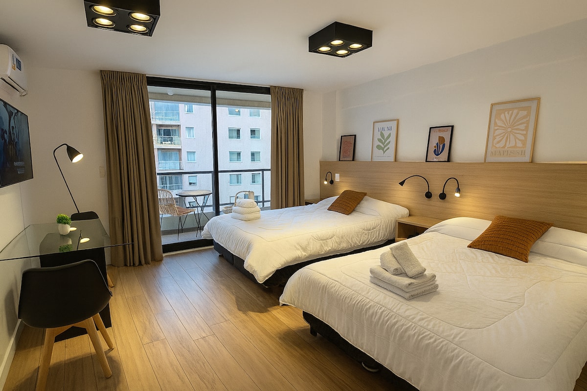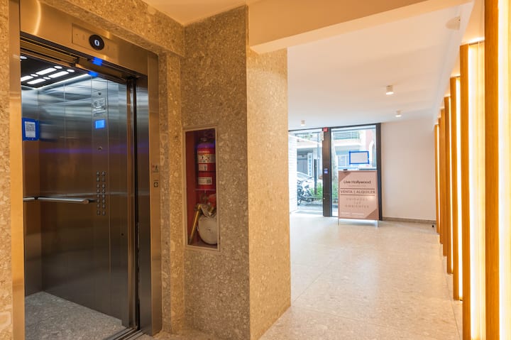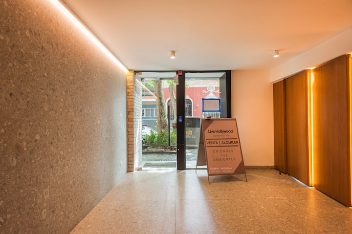 Kitnet em Palermo Hollywood para até 4 pessoas. Regras do prédio incluem check-in às 15h e check-out às 11h, proibição de fumar nas áreas comuns e no apartamento, restrição de ruídos e música em volume alto, descarte do lixo próximo às escadas e multa de 150 USD em caso de violação das regras de convivência.