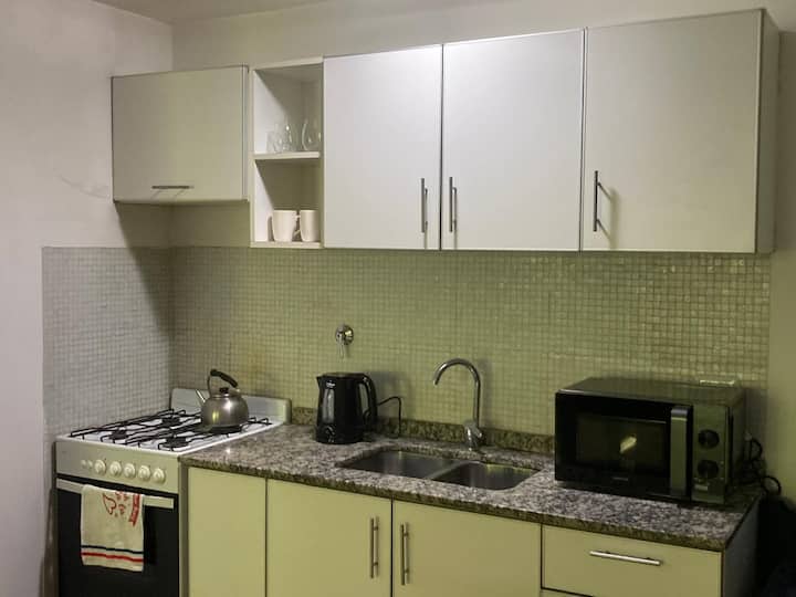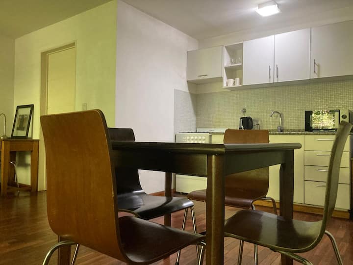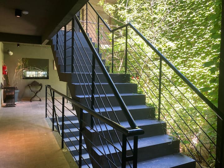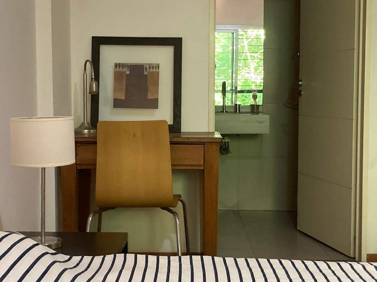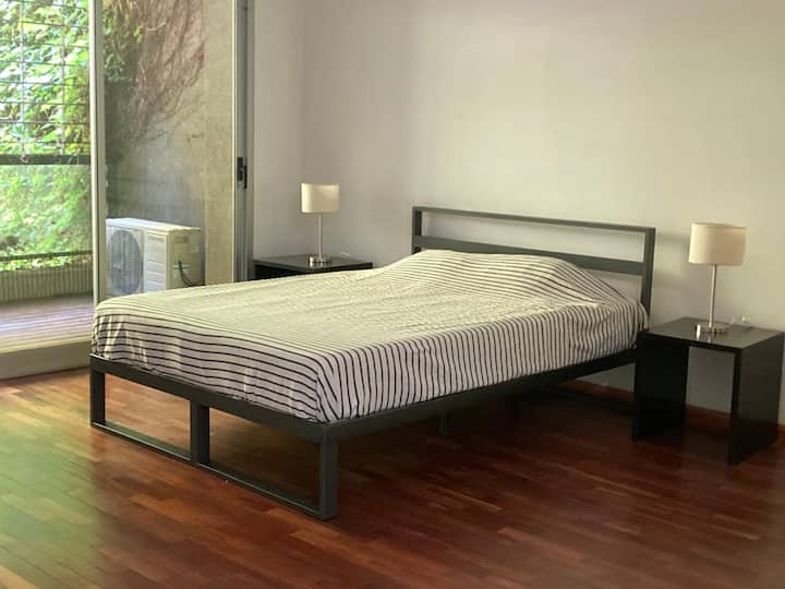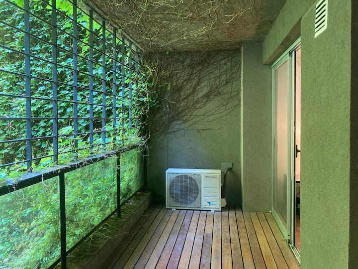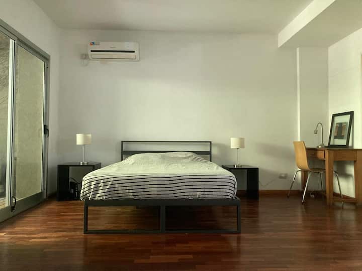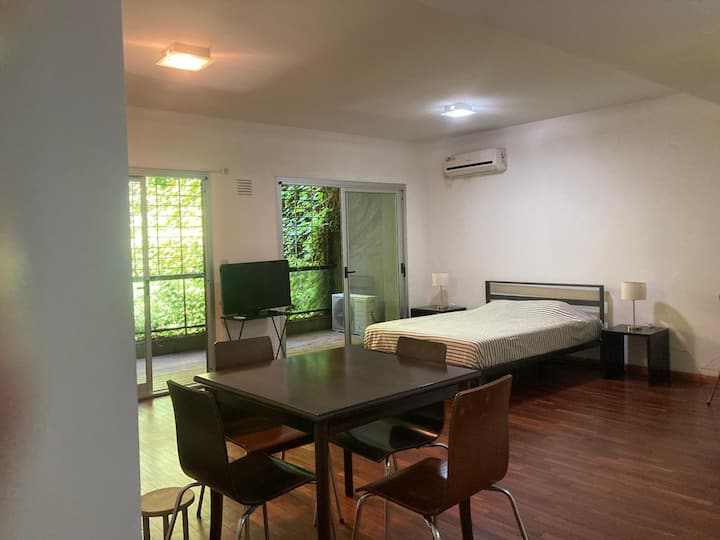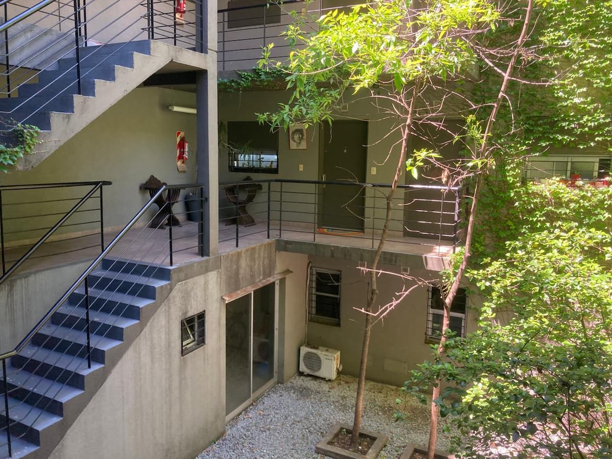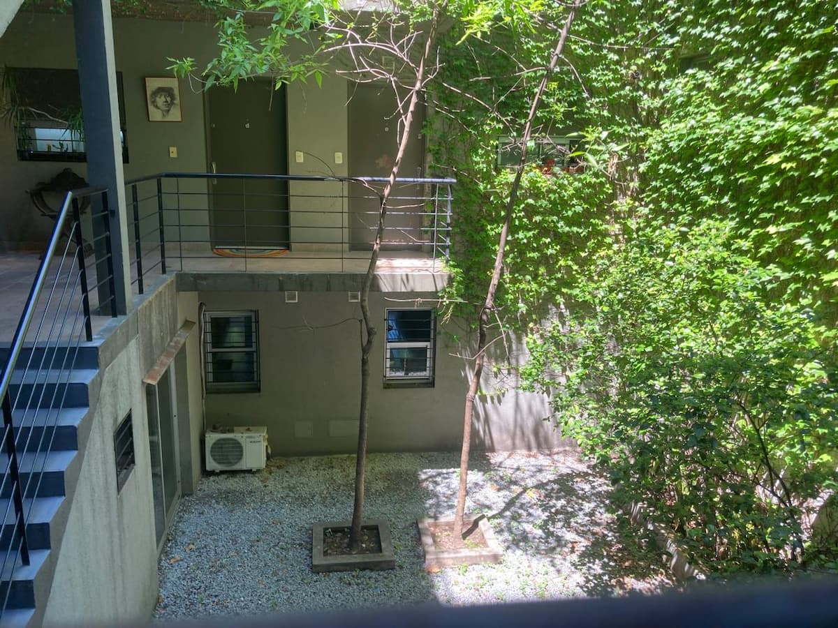 Studio em Palermo, em rua de paralelepípedos. Fica em frente a uma varanda voltada para o pátio interno. A menos de meio quarteirão da Plaza Unidad Latinoamericana.