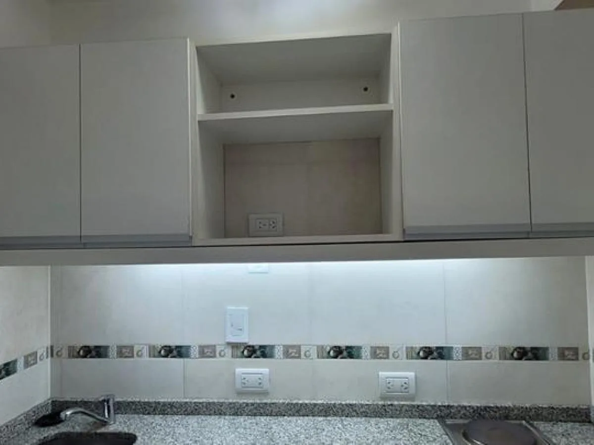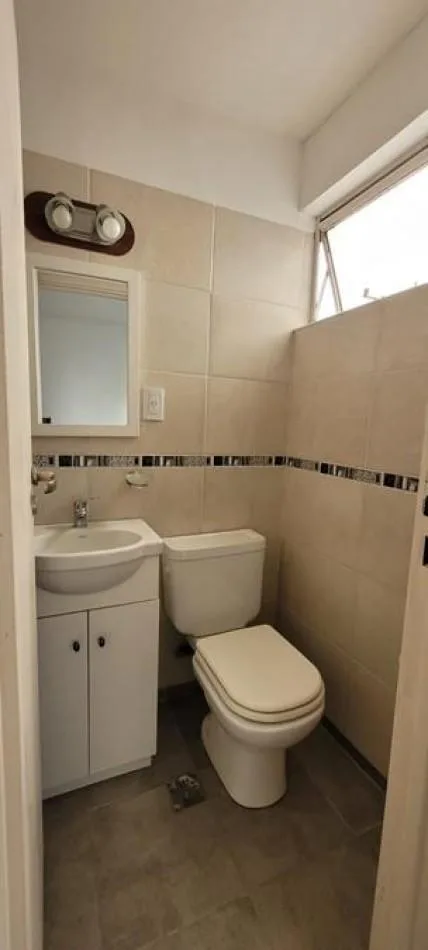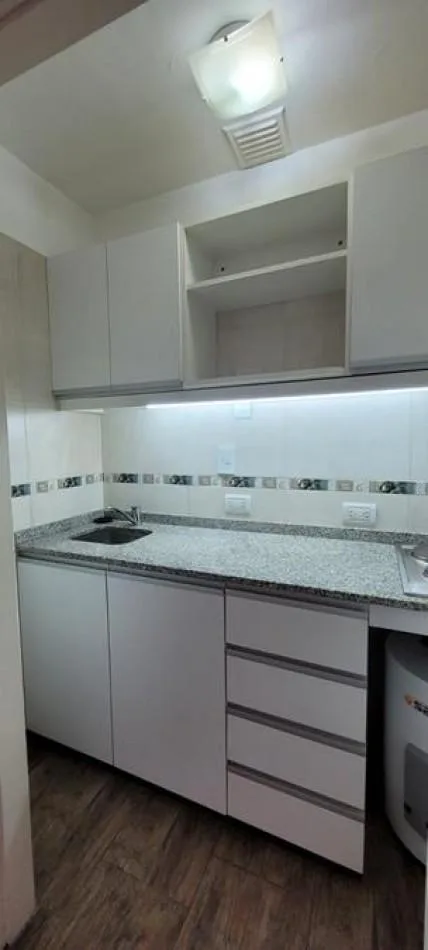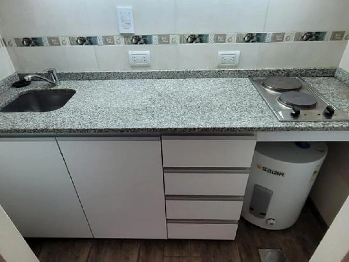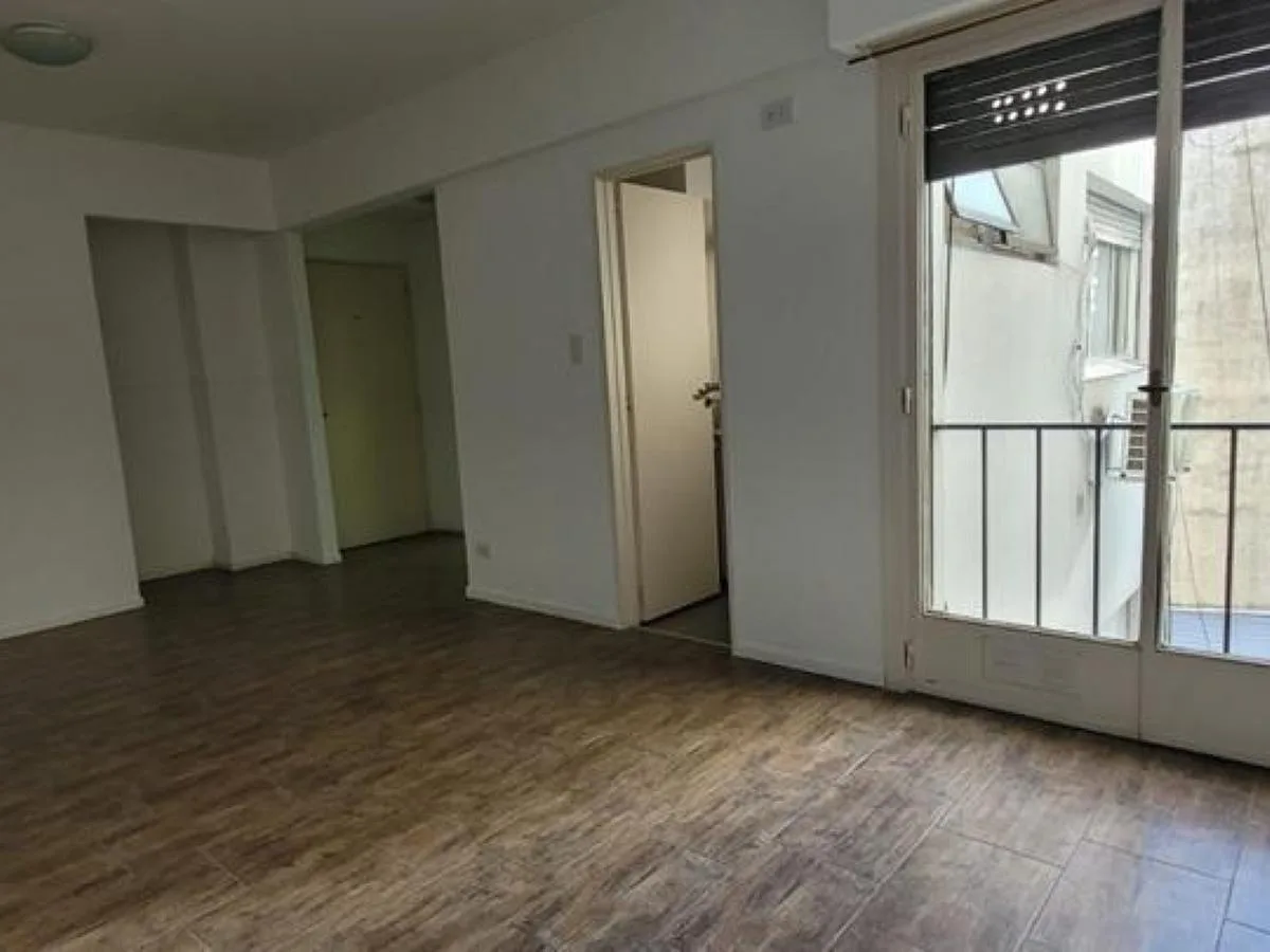 Kitnet de 1 ambiente em Palermo, de fundos (contrafrente), com varanda francesa. Possui área de living de 5,50 x 3, cozinha de 2 x 1 e banheiro com box para ducha. Piso cerâmico com acabamento que imita madeira; não admite animais de estimação.