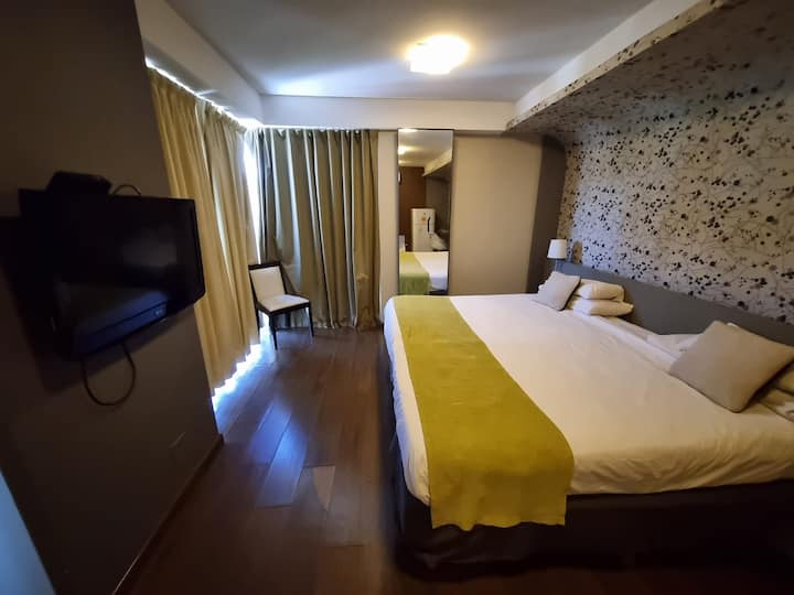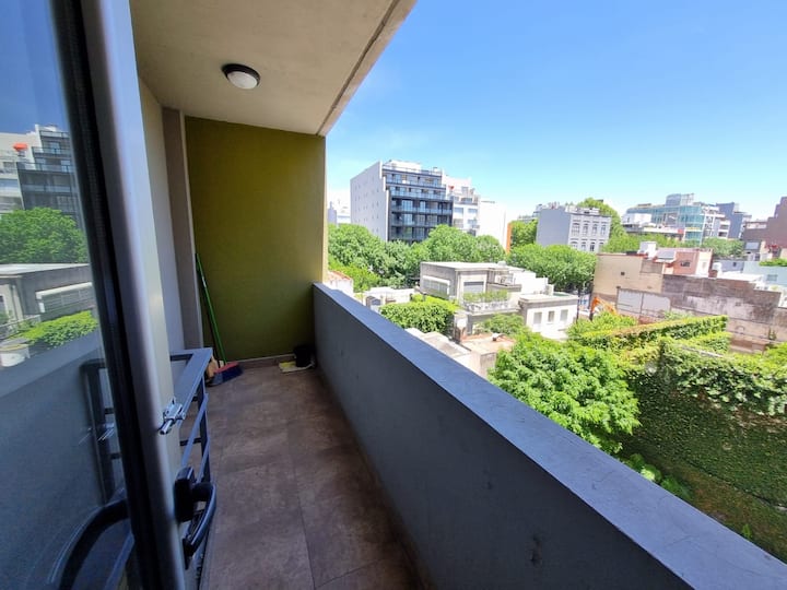 Loft de 1 ambiente em Palermo, com área de dormir, cozinha equipada e banheiro. Inclui varanda. Há ar-condicionado, TV smart e Wi-Fi.