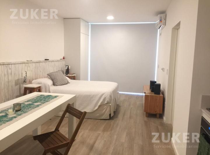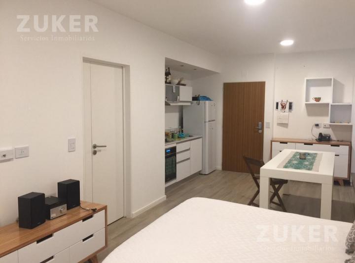 Kitnet de 33 m² cobertos e 37 m² totais para aluguel em Palermo, mobiliada e equipada. Fica no piso alto, de fundos, com varanda e vista aberta. Possui cozinha integrada com fogão a gás (anafe) e forno elétrico, banheiro completo e ar-condicionado split frio/calor. Água quente central. Prédio com cerca de 15 anos de idade e elevador, com piscina, solário, áreas de churrasco e lavanderia. Localizada a 1 quadra da Av. Cabildo, com acesso a linhas de ônibus, Metrobus, Subte Linha D (estação Carranz