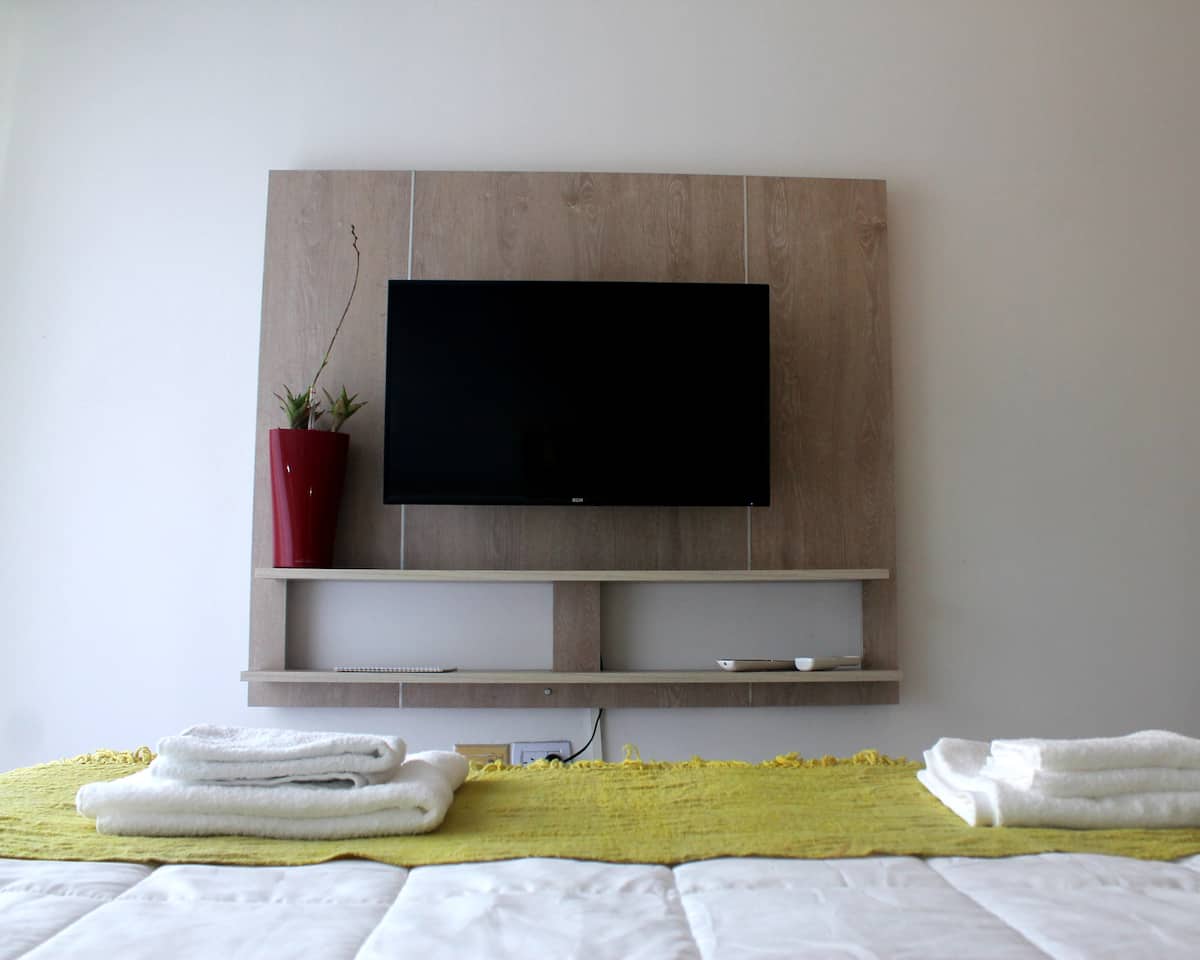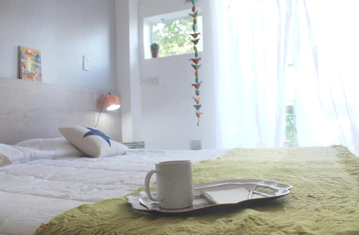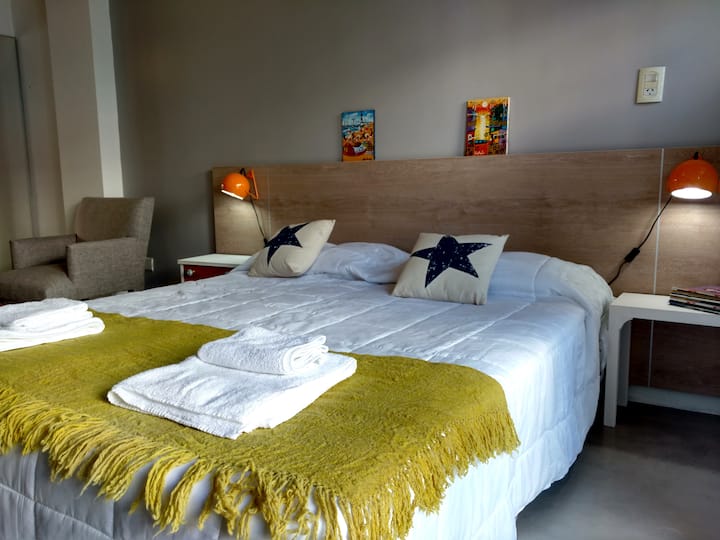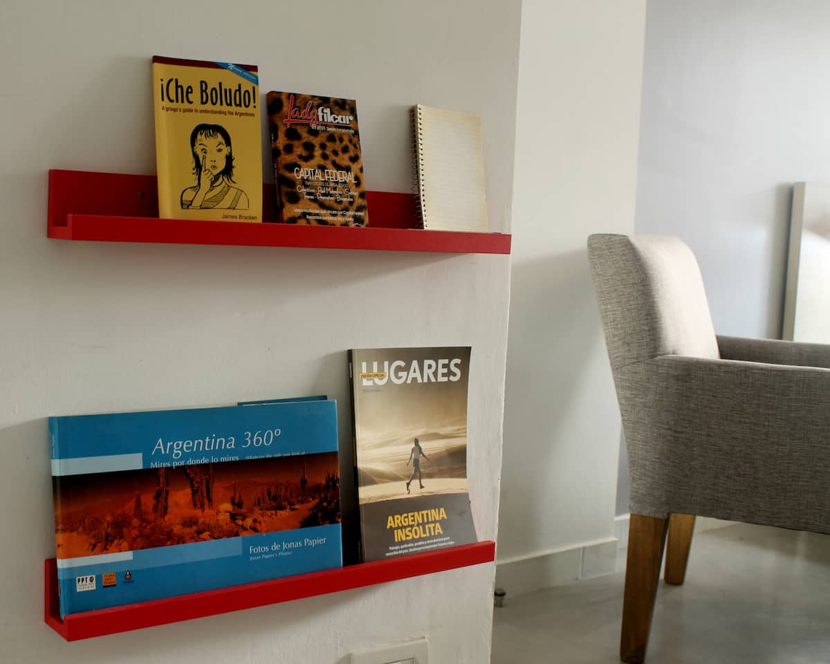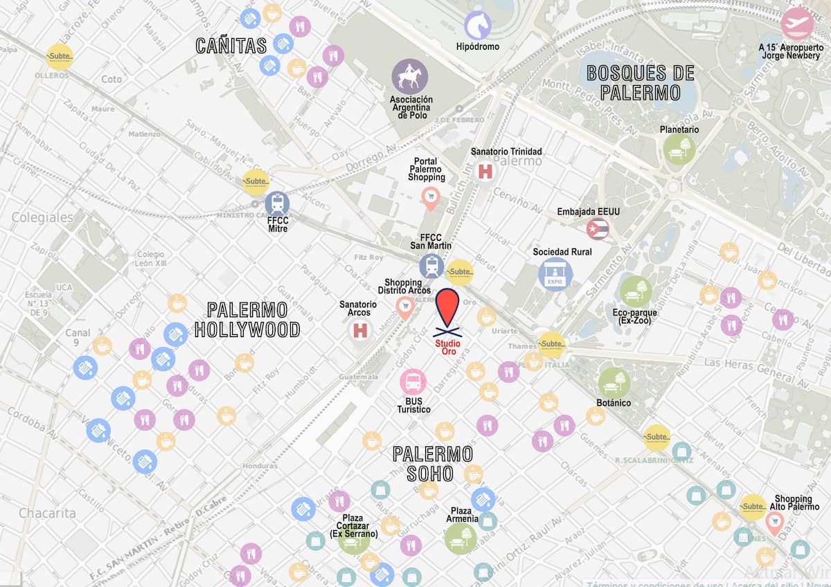 Kitnet mobiliada em Palermo, a poucas quadras da Plaza Italia. Conta com cama queen (180 x 190 cm), cozinha com fogão elétrico de 2 bocas e micro-ondas elétrico, e banheiro com banheira. O prédio tem área de lavanderia no último andar e segurança noturna. Há possibilidade de ruído entre 8:00 e 17:00 em dias úteis devido a obras nas proximidades; para entrar no prédio é necessário subir degraus.