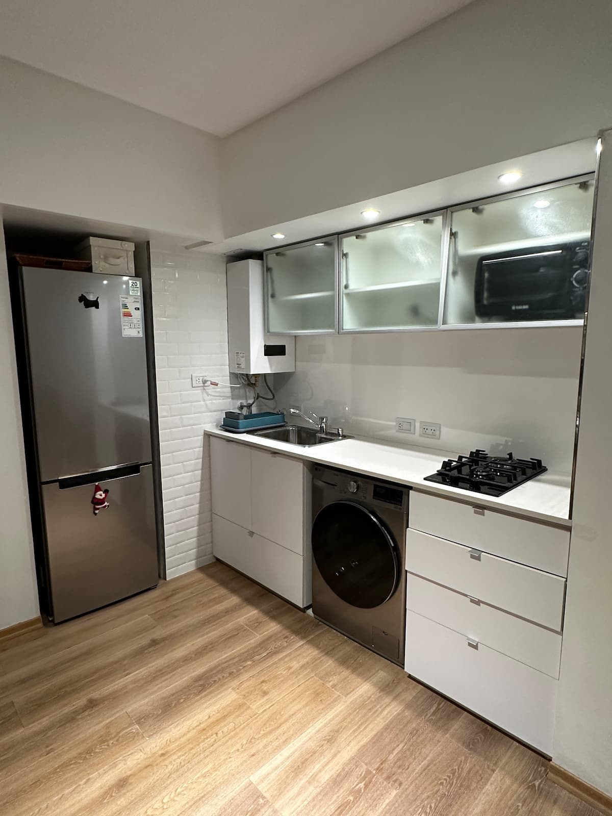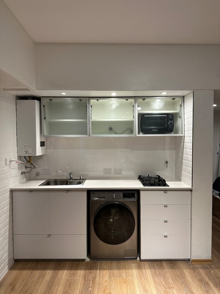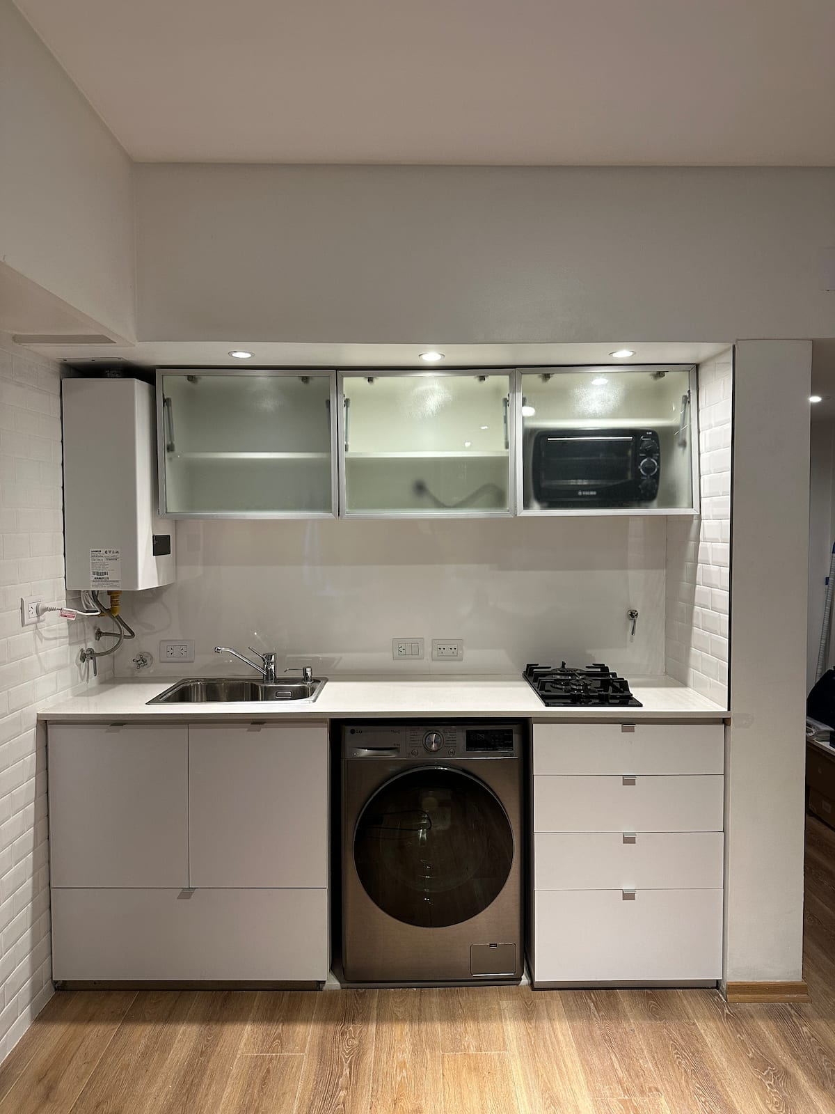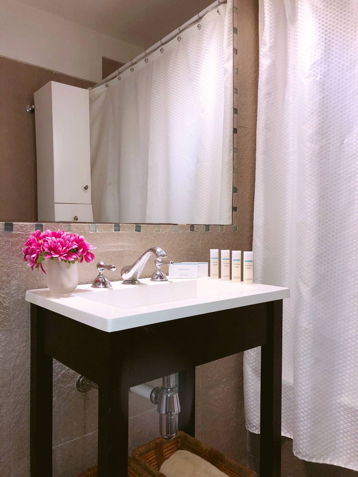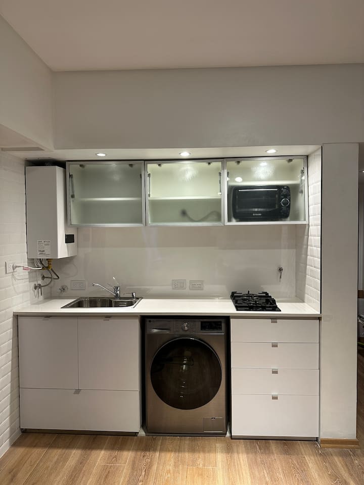 Kitnet de 40 m² em Palermo, em edifício com portaria e elevador. Possui grande janela com ventilação e acesso a uma varanda com vista panorâmica. Inclui Wi-Fi de alta velocidade, TV a cabo, DVD, telefone e ar-condicionado (quente e frio), além de piso de madeira, armário amplo e banheiro completo com box e banheira.