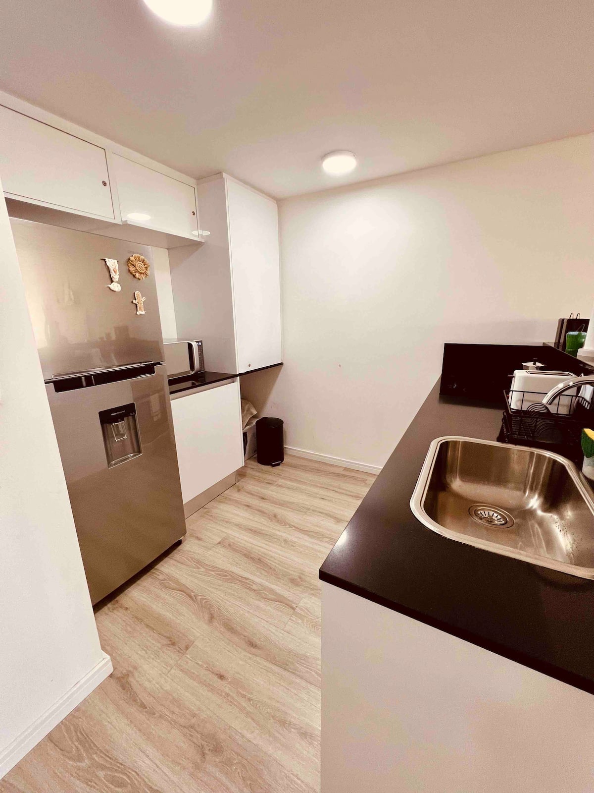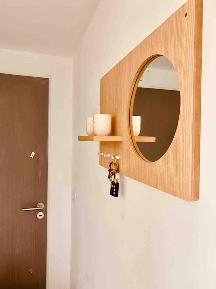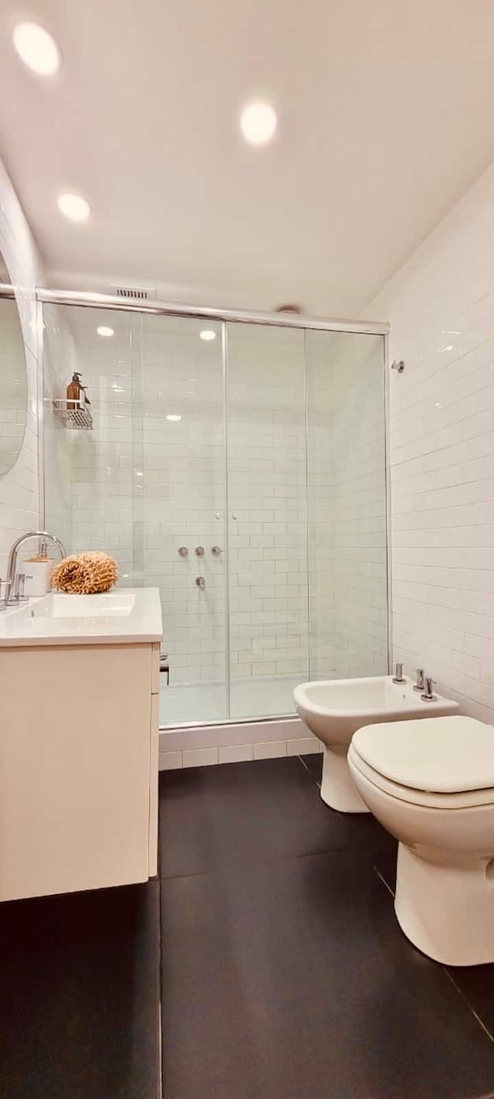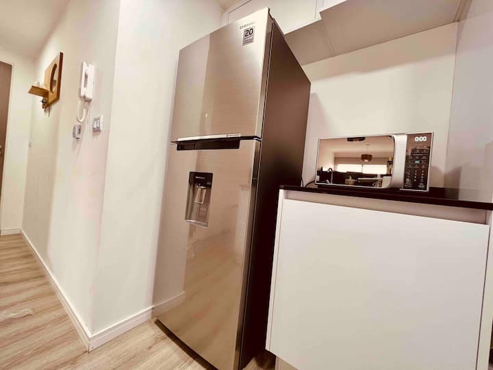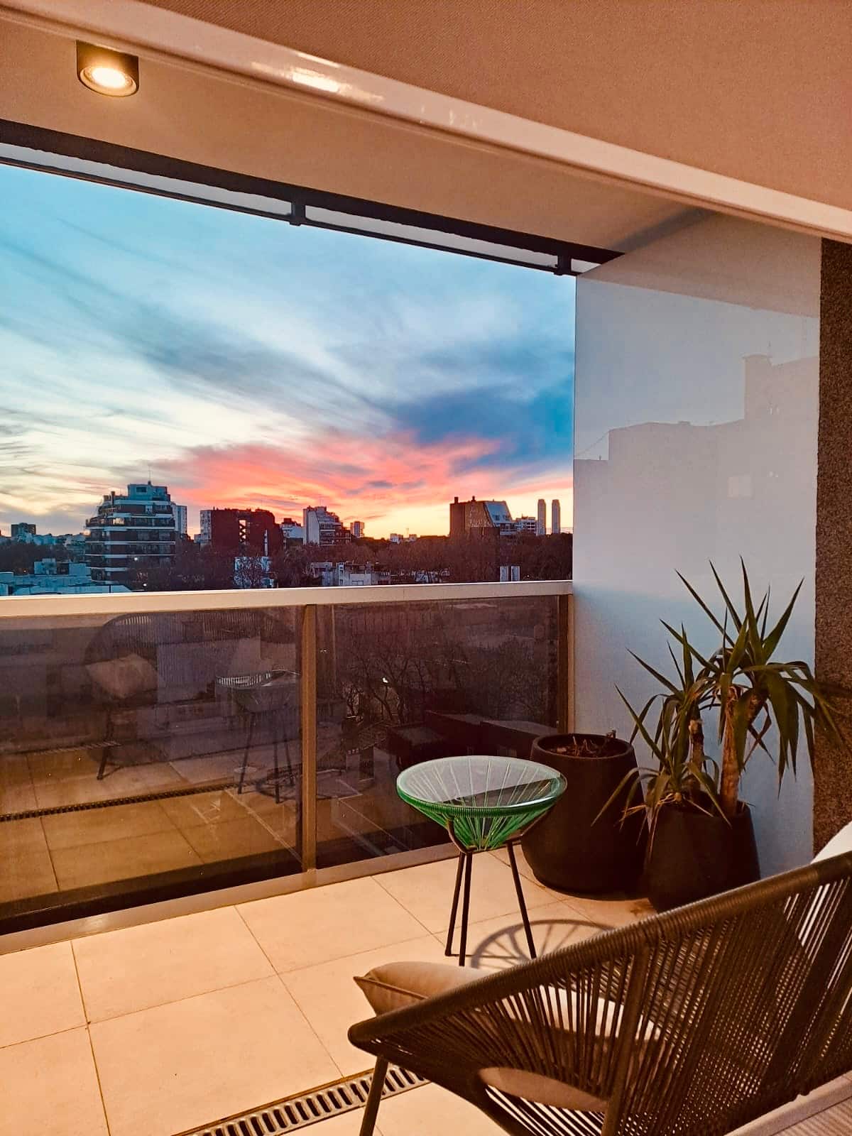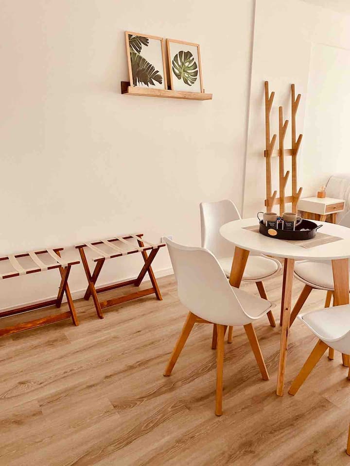 Apartamento mobiliado em Palermo Soho. Unidade de um ambiente com cama queen, roupas de cama e toalhas, utensílios de cozinha, itens de cortesia como café e chá, água quente, ar-condicionado e aquecimento. Inclui TV com streaming e aplicativos, internet Wi‑Fi de alta velocidade (300 MB), churrasqueira privativa na varanda e academia no próprio edifício. Acesso às áreas comuns e privativas do imóvel.