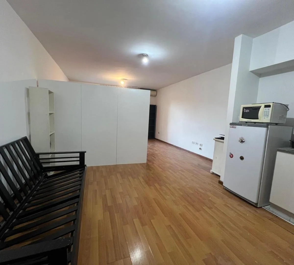 Kitnet divisível em Palermo Soho, no 5º andar, de frente para a rua, com ar-condicionado. Semiamoblada com geladeira, micro-ondas, armários e cortinas; cozinha integrada com área de armazenamento. Banheiro completo com banheira. O prédio tem piscina, solarium, área de churrasco e lavanderia. As despesas de condomínio podem variar e os m² informados são estimativos.