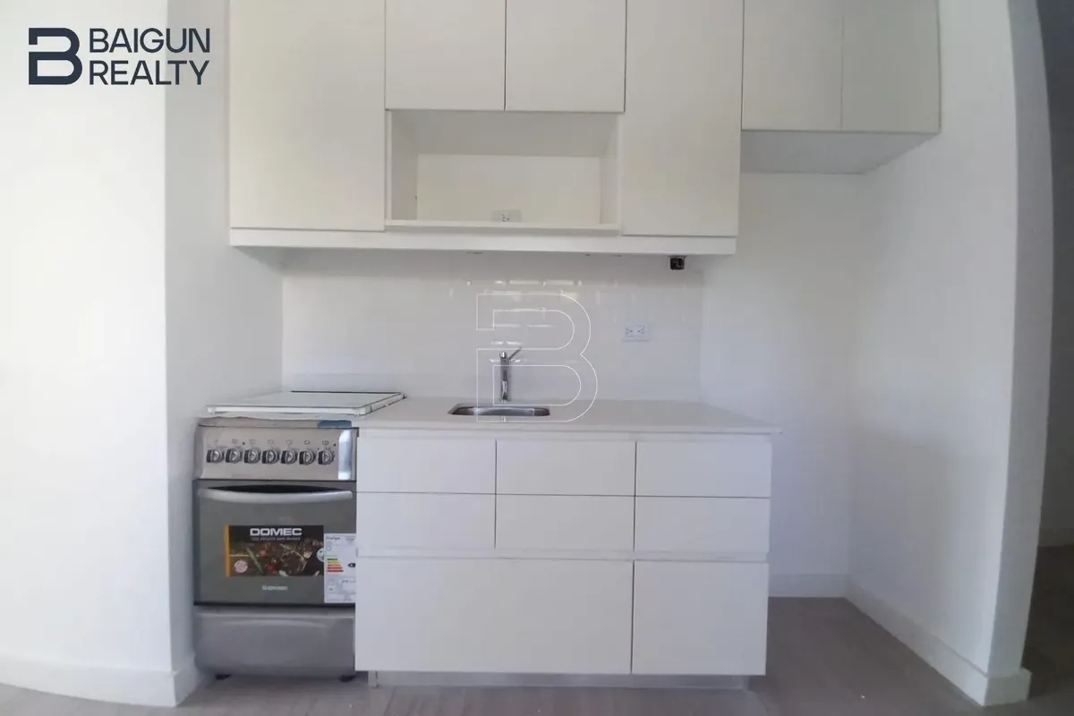 Kitnet novo (nunca habitado) com varanda, no 1º andar de frente para a rua. Cozinha integrada com armários na parte inferior e armário superior, conexão para máquina de lavar, armário embutido e 1 banheiro completo. A unidade tem água quente central, ar-condicionado (quente/frio) e fechadura digital. O prédio oferece piscina e jacuzzi aquecida, solário, salão/lounge, área de churrasco, academia e lavanderia, além de totem de segurança 24 horas.