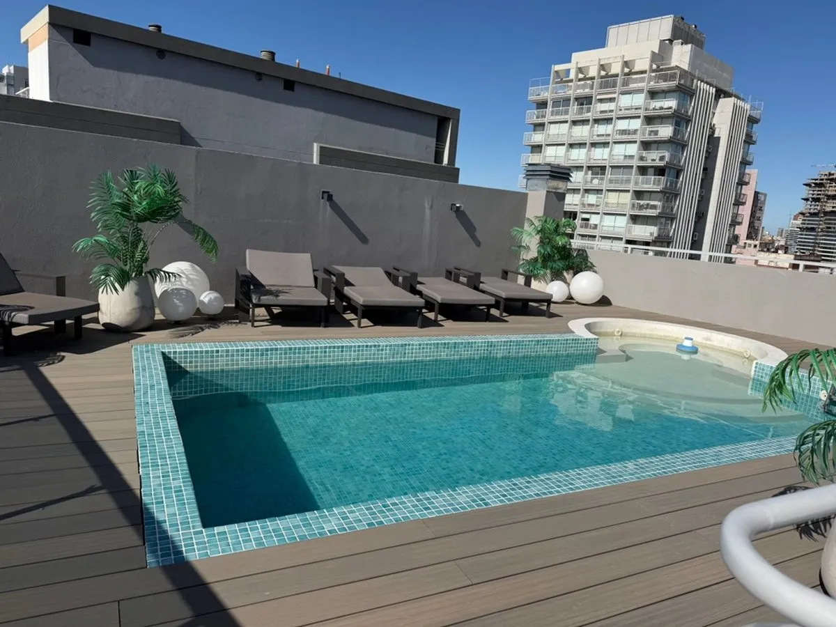 Kitnet (1 ambiente) para alugar com 37 m² em Las Cañitas, de frente para a Av. República de Eslovenia. Imóvel novo (nunca habitado) em prédio de 10 andares, com fechadura eletrônica, banheiro completo e varanda integrada de 3 m² (semi-cobertos). O edifício conta com piscina, solarium, área de churrasco e área de lavanderia; o aluguel tem ajuste trimestral pelo IPC.