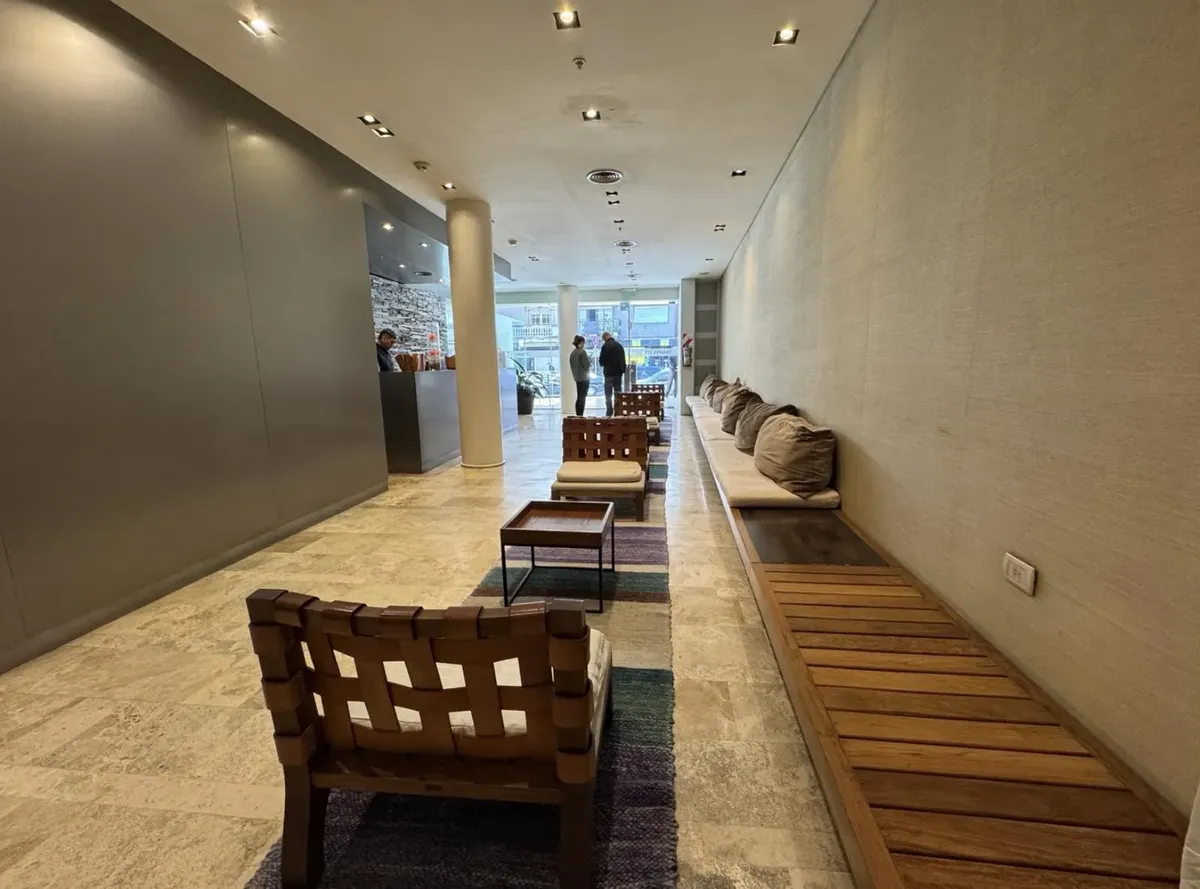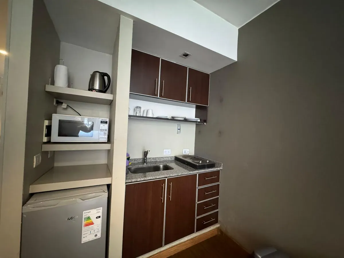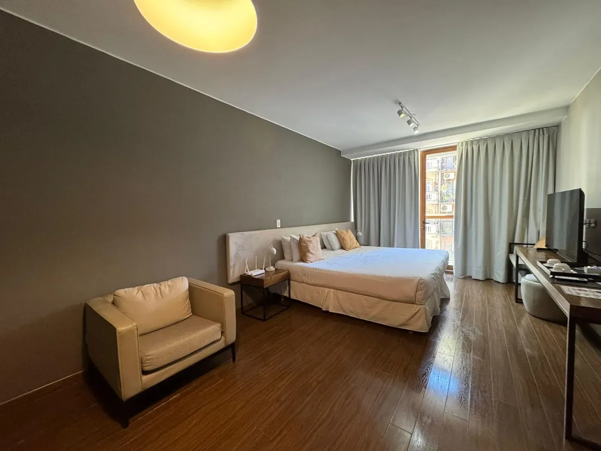 Kitnet mobiliada em Palermo Soho, em um edifício com segurança 24 horas. A unidade inclui cama king size (2x2), roupa de cama, kitchenette com fogareiros elétricos, louças e cafeteira Nespresso, além de Smart TV. O prédio oferece sala de estar/coworking no térreo, academia, piscina no 8º andar, solarium e SUM.