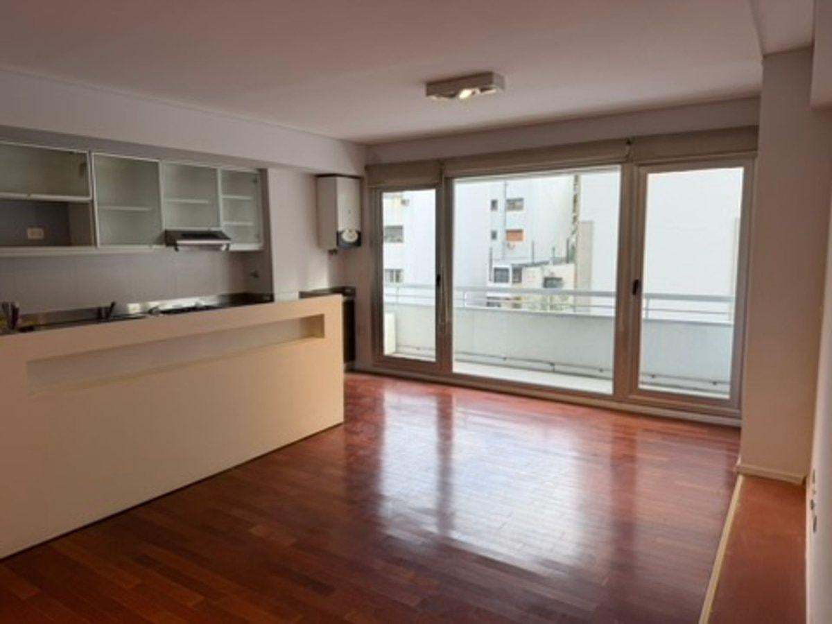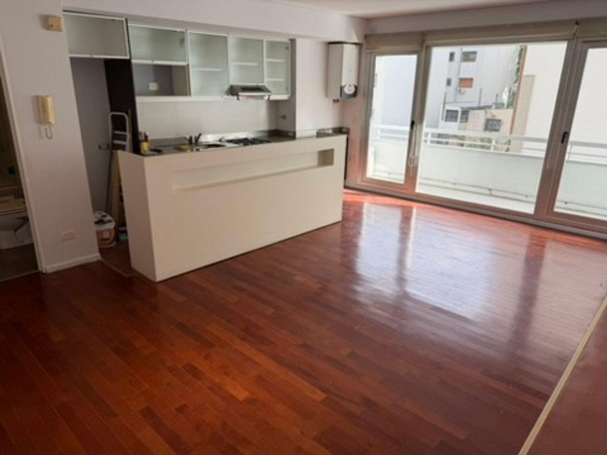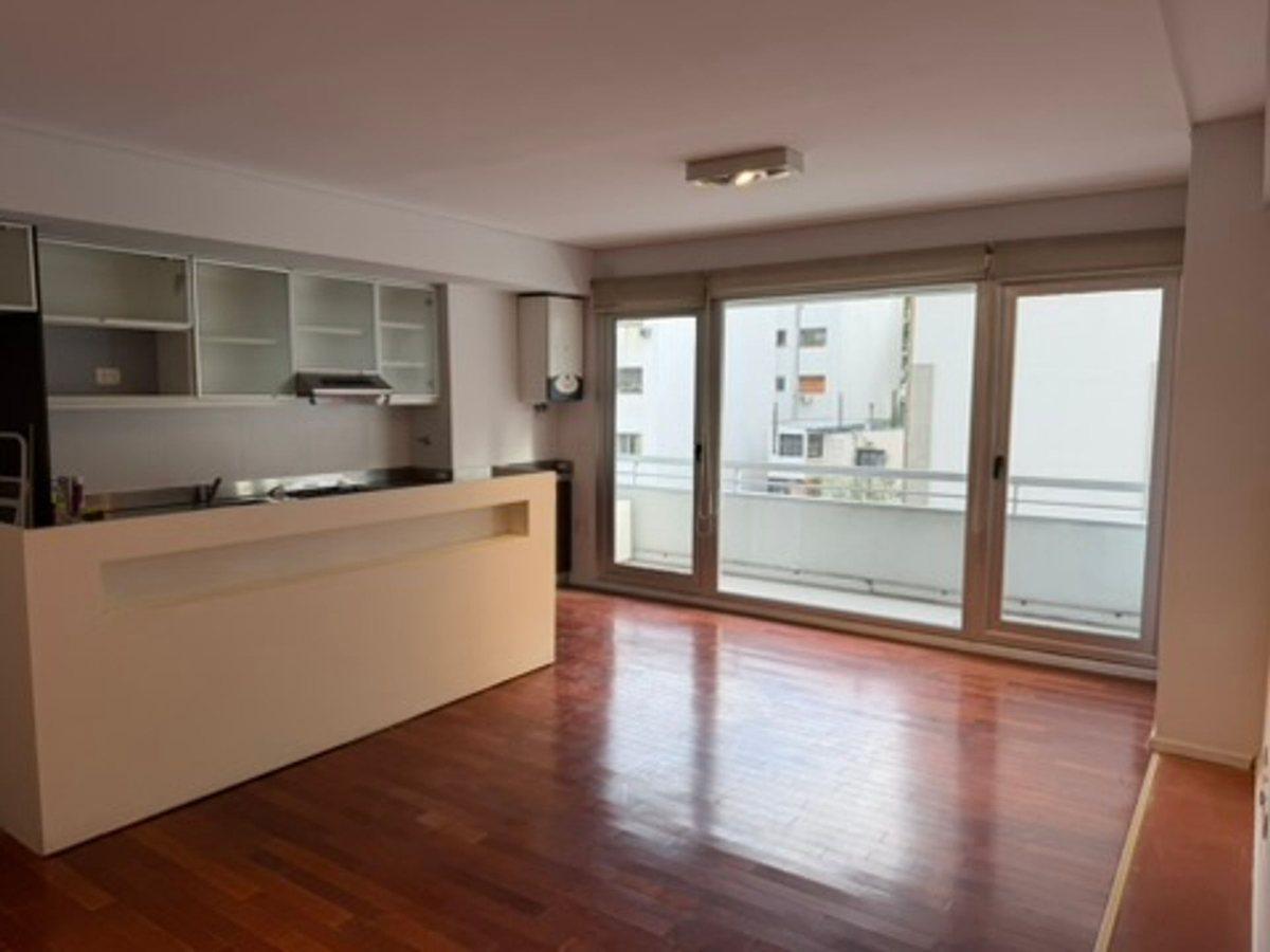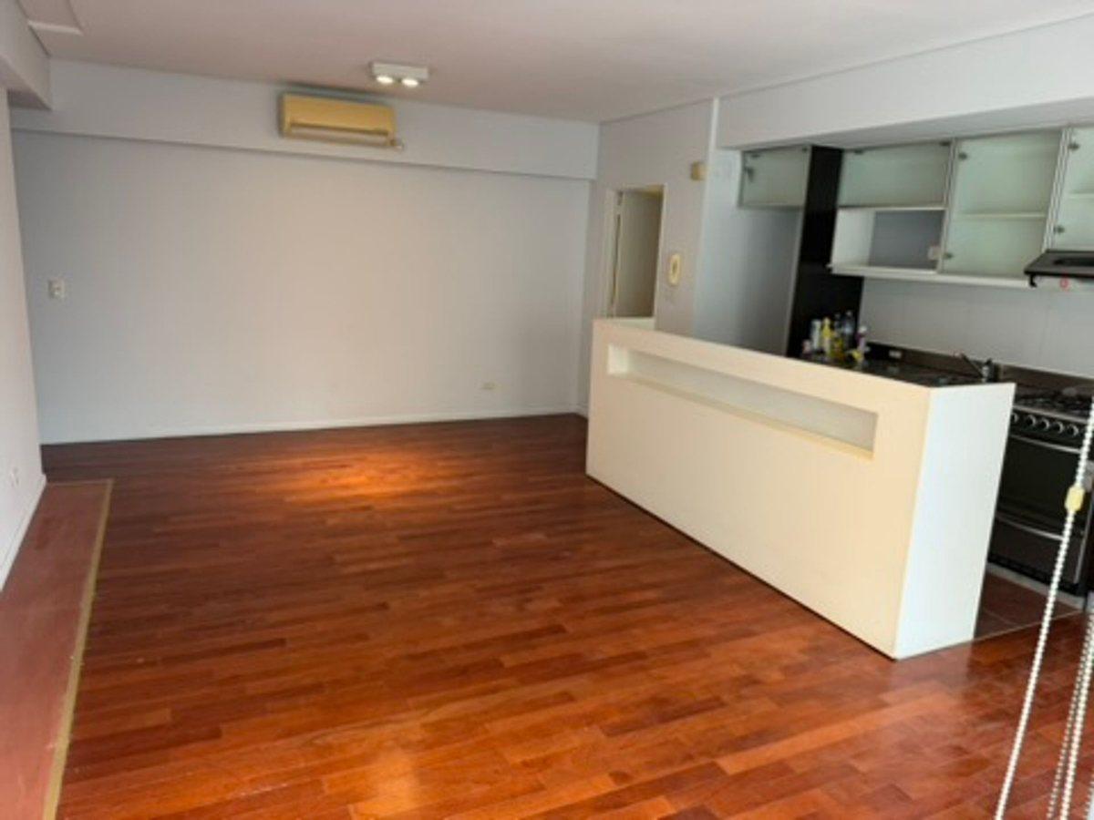 Apartamento tipo kitnet em Palermo, com 1 banheiro completo, cozinha com barra e área de dormitório integrada. Piso de madeira, ar-condicionado split frio-calor e cortinas blackout. Possui armário, varanda ampla com vista aberta e espaço para máquina de lavar roupa. O prédio tem SUM, academia, sauna, jacuzzi, área de recreação infantil e sala de relaxamento, além de segurança 24 horas e opção para uso profissional.