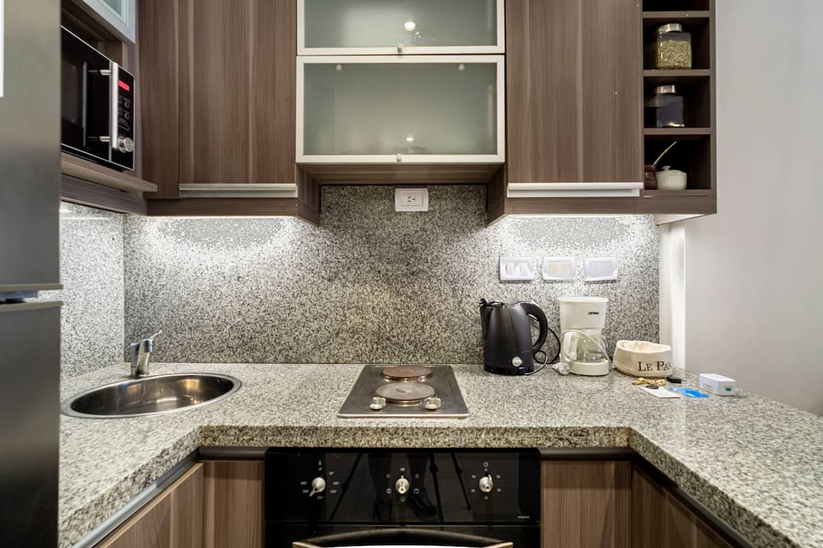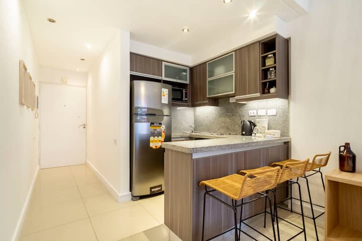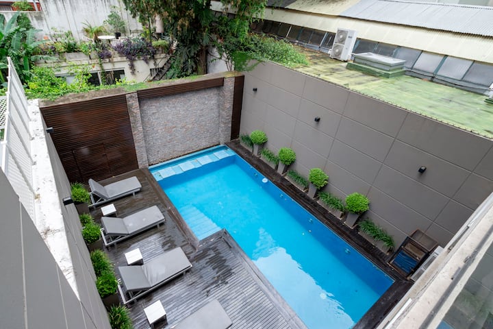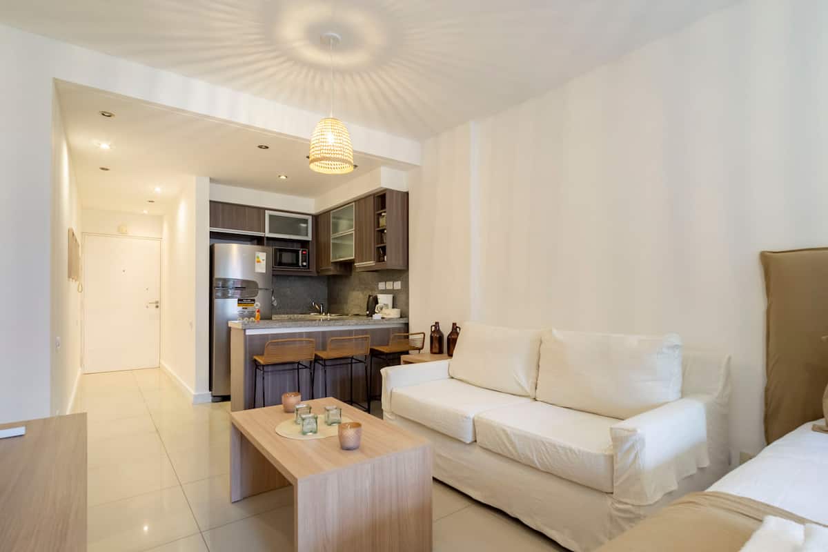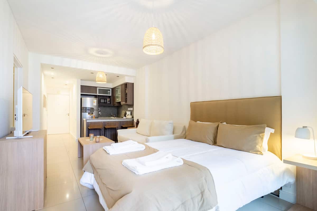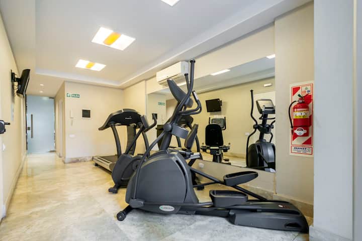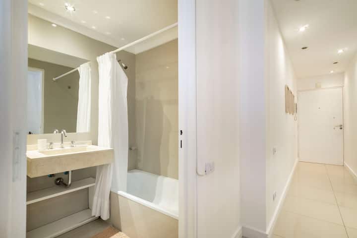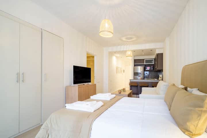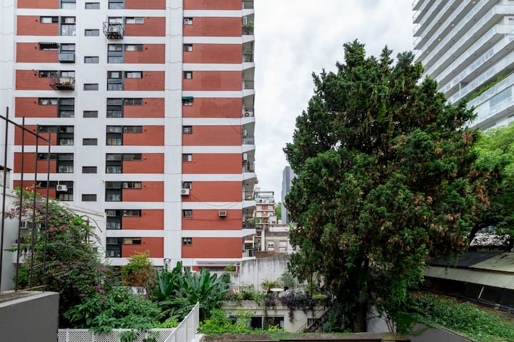 Kitnet em Las Cañitas, em esquina de Av. Jorge Newbery com Migueletes, com saída para varanda. Possui cozinha equipada, área de estar e jantar com sofá-cama, mesa, TV e ar-condicionado frio/quente, além de cama de casal e armário. O edifício conta com academia, lavanderia em áreas compartilhadas e piscina.