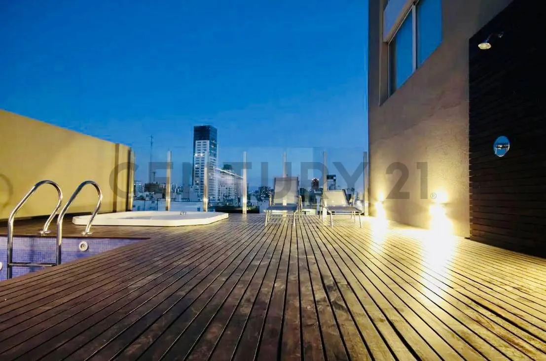 Kitnet mobiliada em Palermo, a poucos metros do Rosedal. O prédio oferece segurança 24 horas, salão de festas (SUM), lavanderia, sauna, piscina, solário, vestiário, academia, business center e lounge bar. A unidade tem ar-condicionado e varanda com vista para o fundos. Condomínio: $ 240.000.