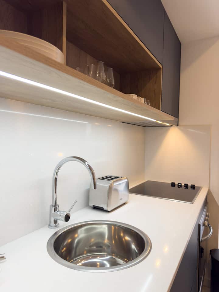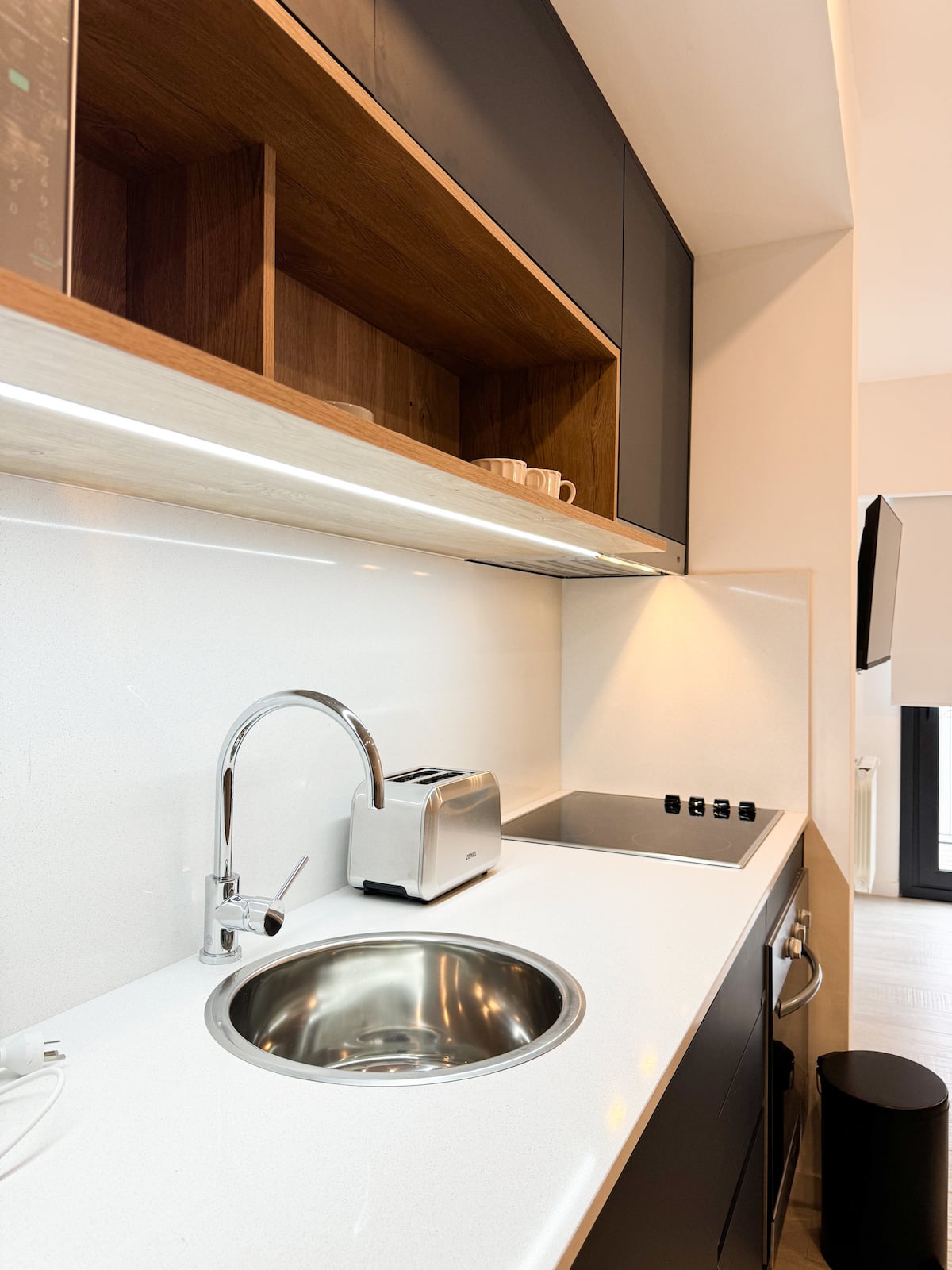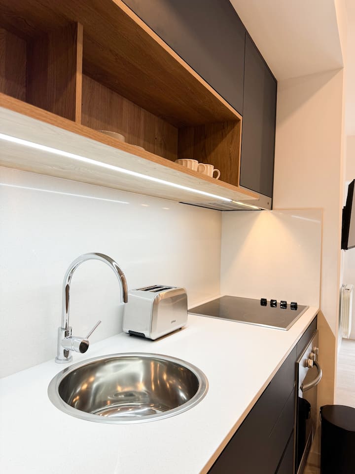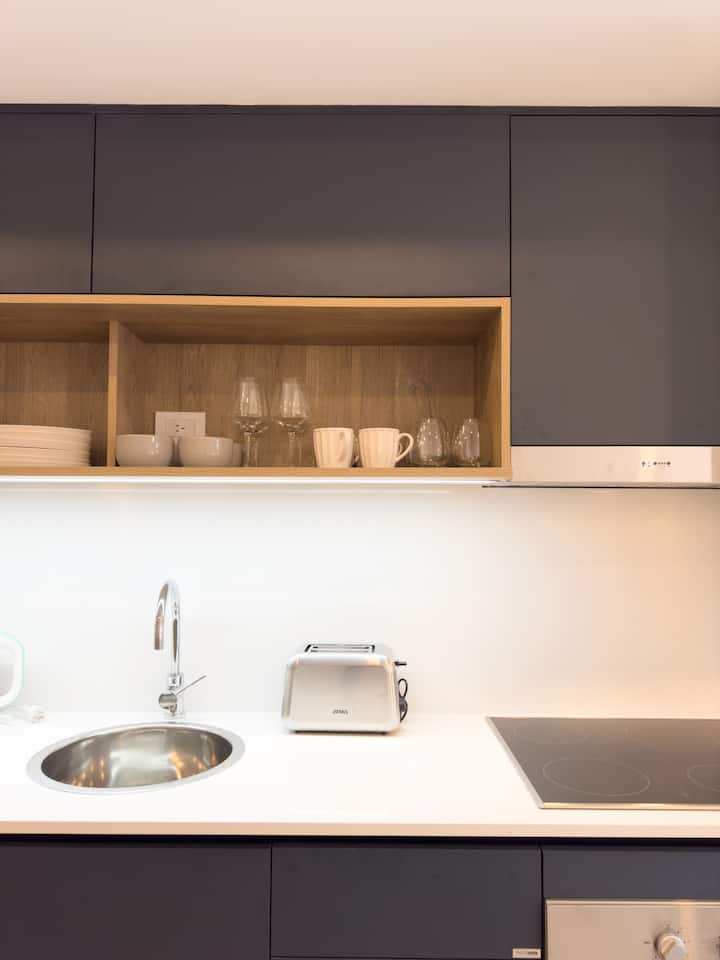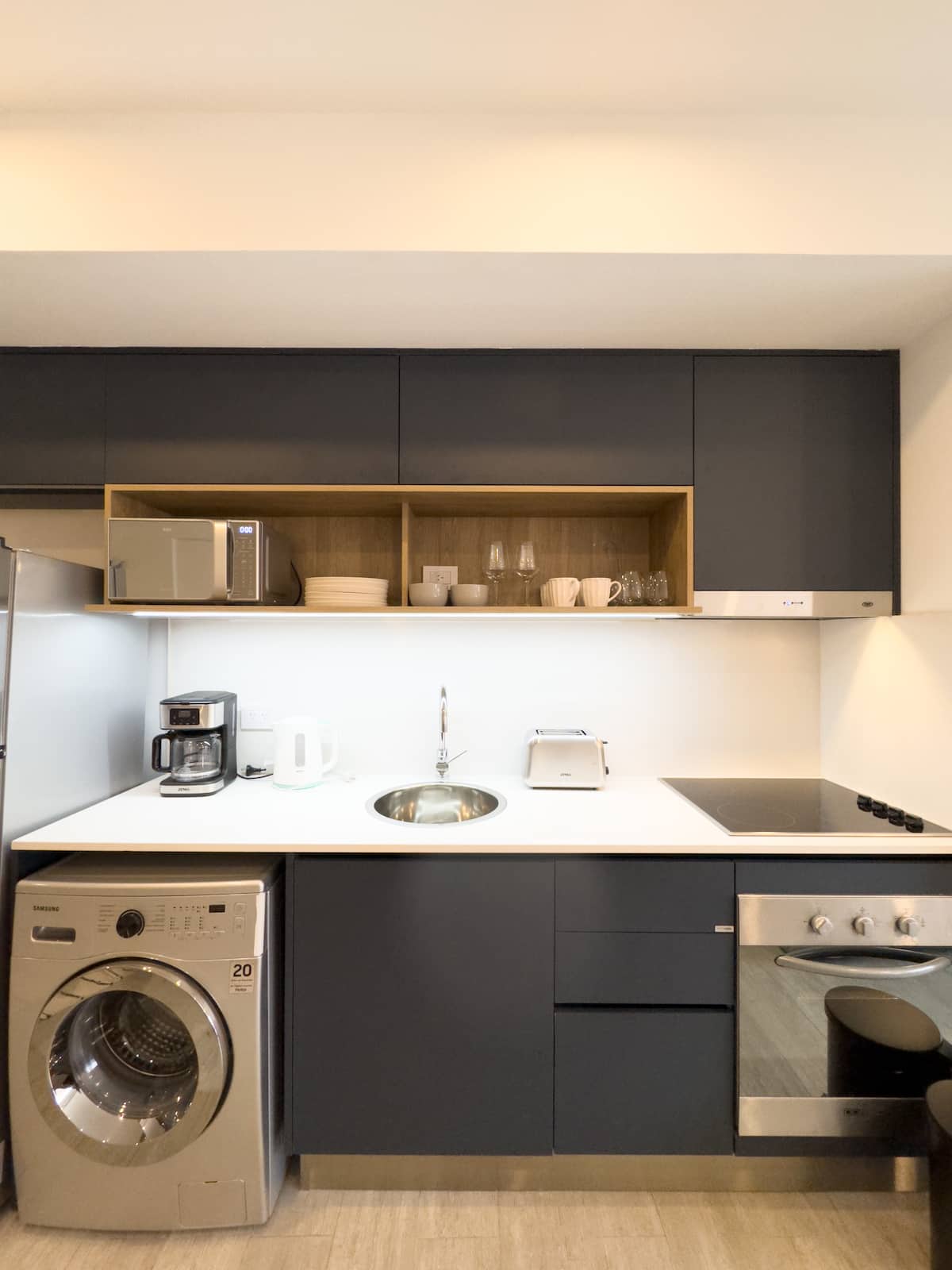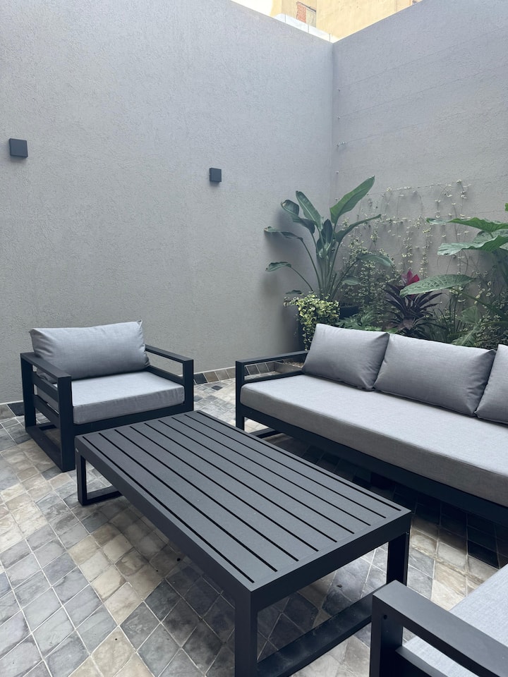 Kitnet em Palermo Hollywood, preparada para estadias de 1 a 4 pessoas. A unidade tem cama de casal que pode ser dividida em 2 camas de solteiro e sofá-cama para mais 2 pessoas, totalizando 4 lugares. O prédio conta com fechaduras digitais, espaço de coworking com internet, garagem comercial em 3 subandares, restaurante no térreo e terraço comum com piscina, solário e área de churrasco.
