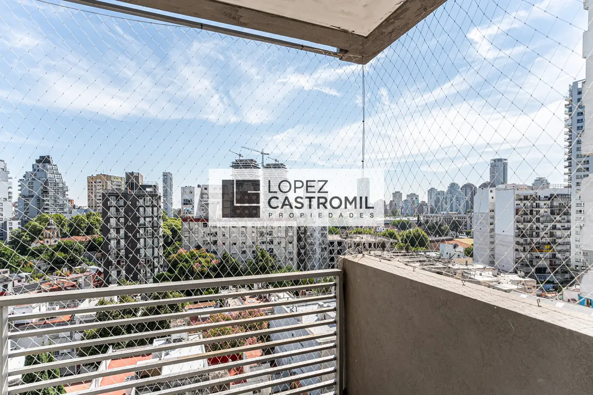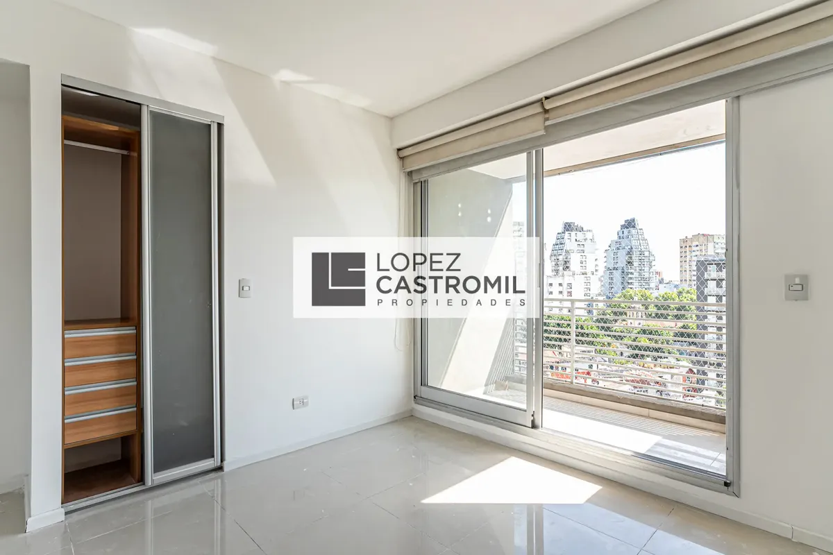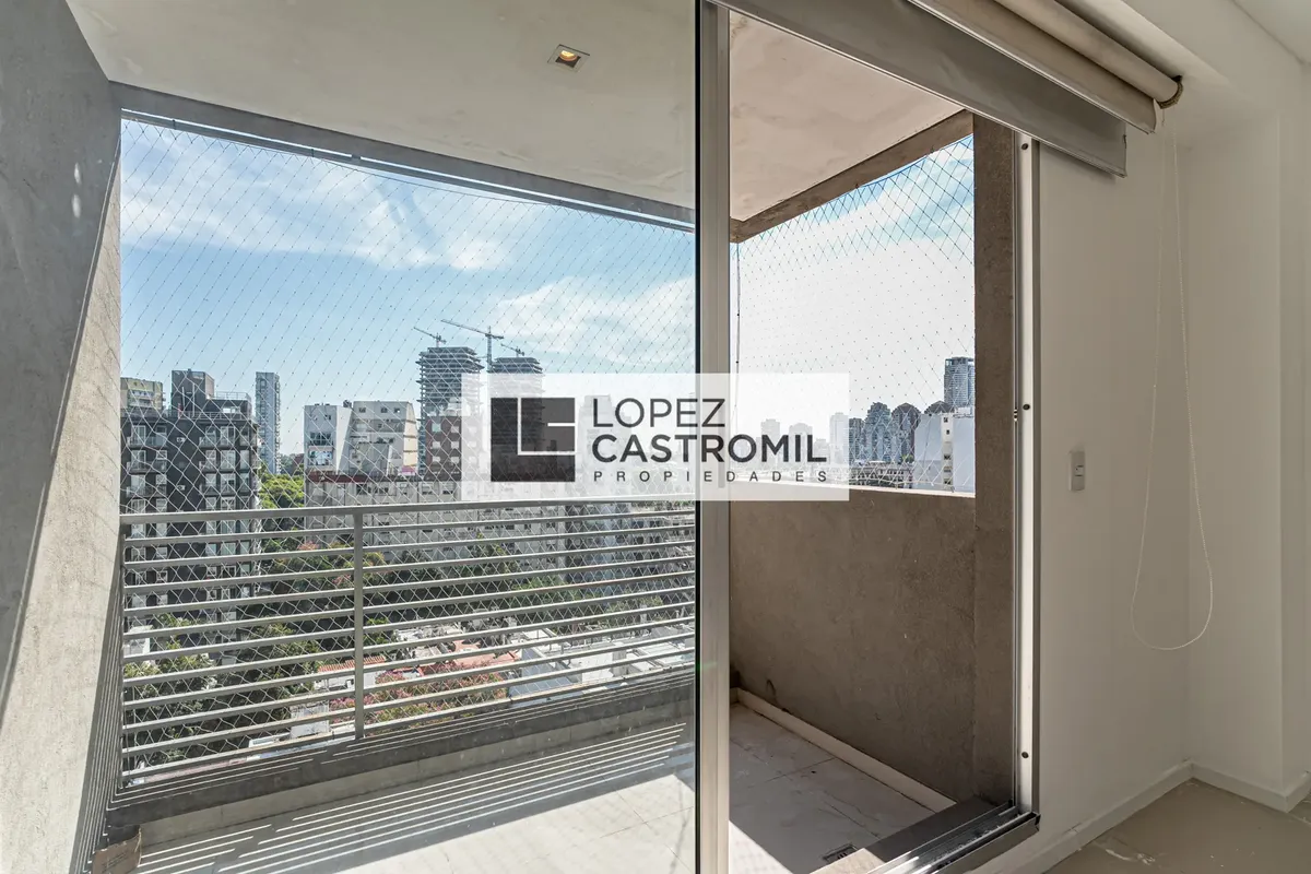 Kitnet de 1 ambiente para aluguel em Palermo, em andar alto. Unidade com varanda voltada para o miolo de quadra, com vista aberta, cozinha integrada e banheiro completo com ventilação natural. Possui armário, ar-condicionado split frio-calor e cortinas roller duplas (sunscreen e blackout). O prédio oferece solárium, piscina, academia, salão de festas, sauna e área de lavanderia, além de 2 elevadores e água quente central. Há aquecimento por piso radiante. Aceita uso profissional e tem rampa de a