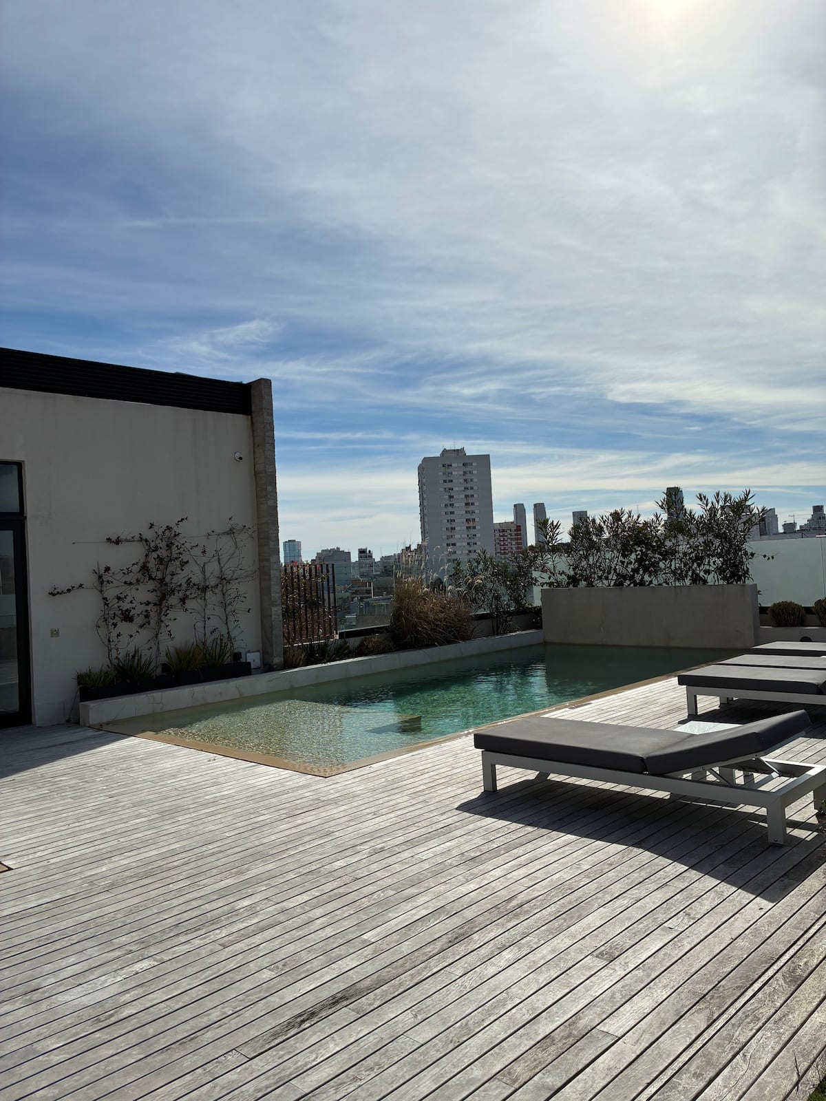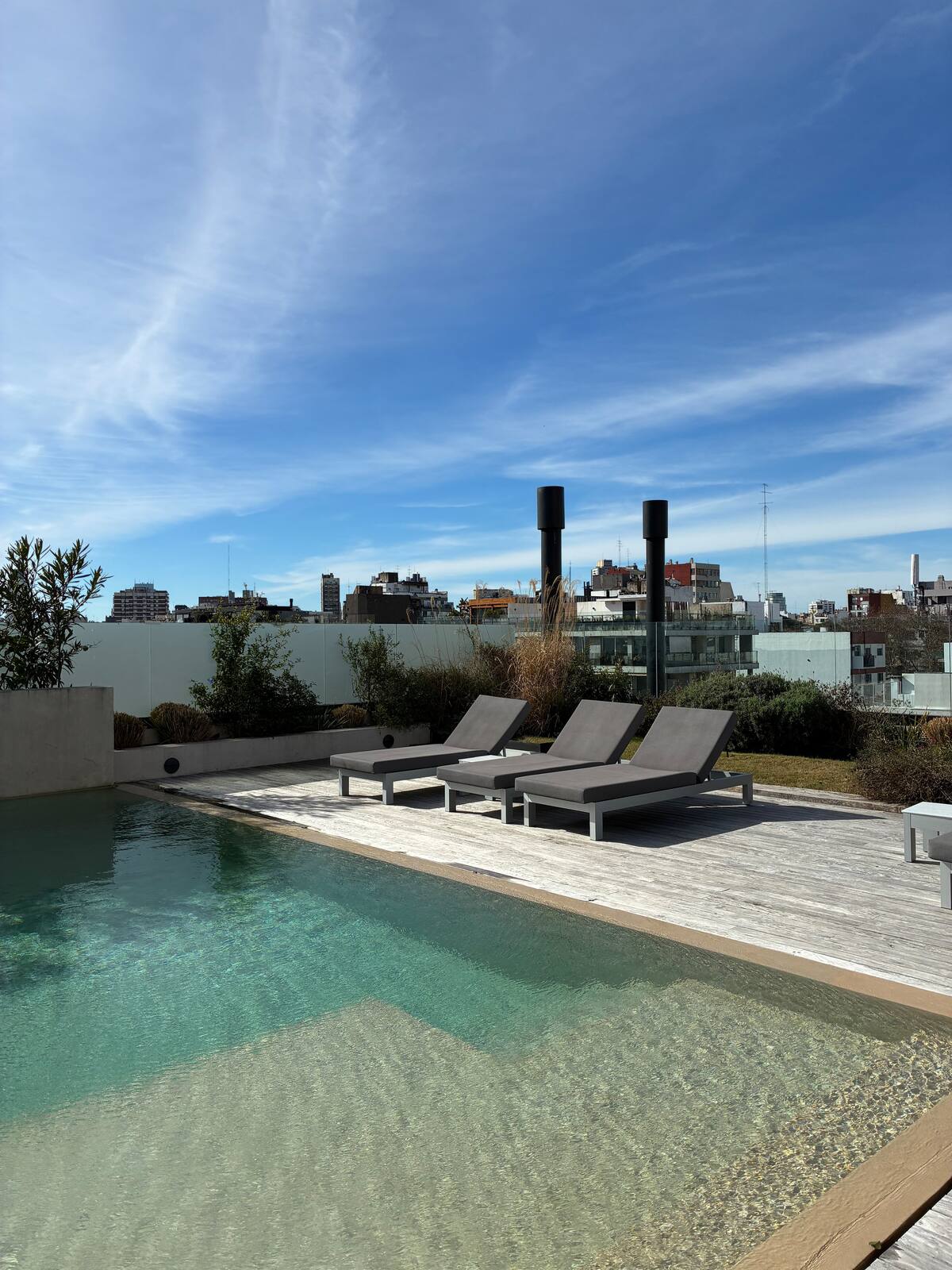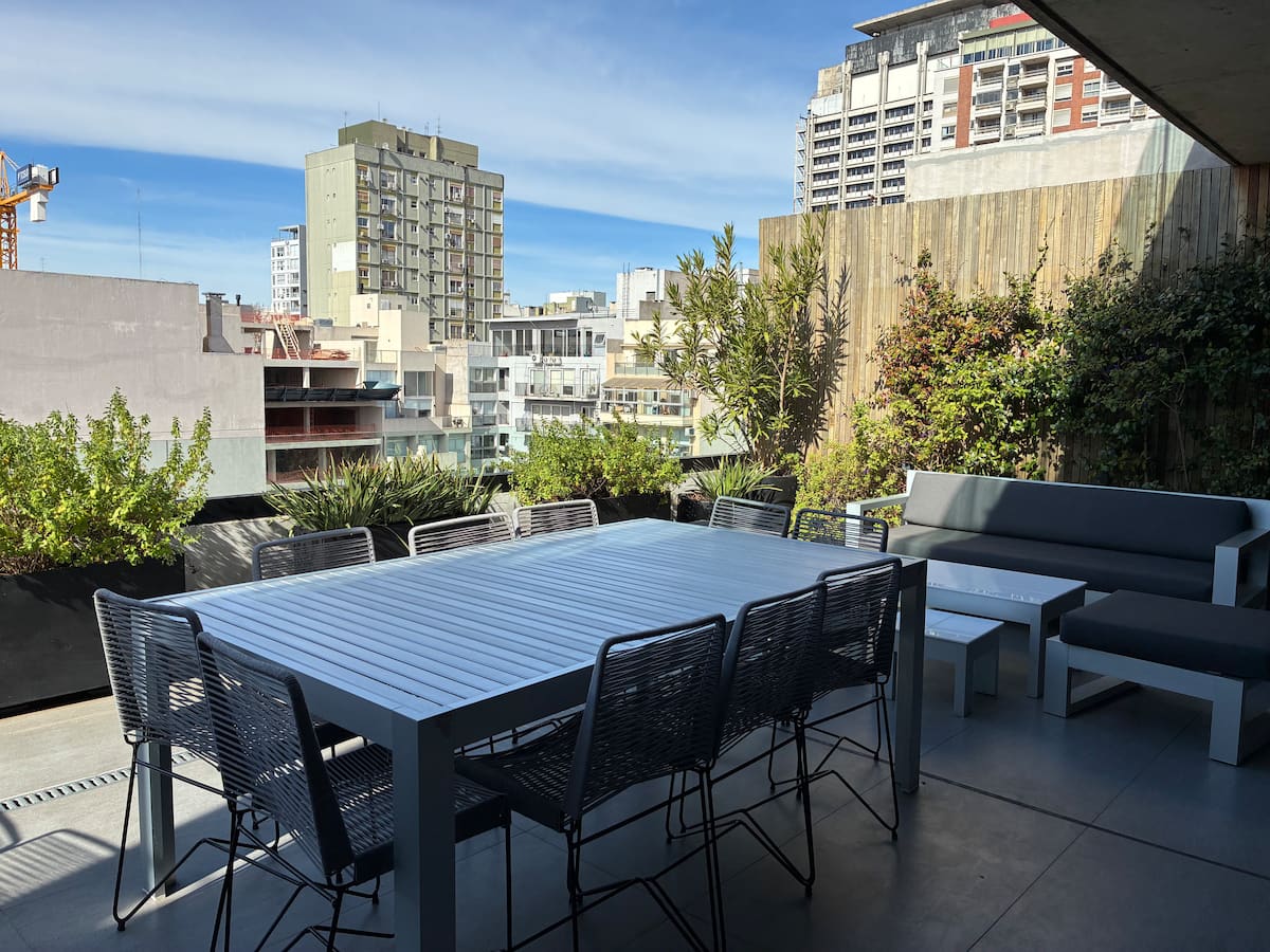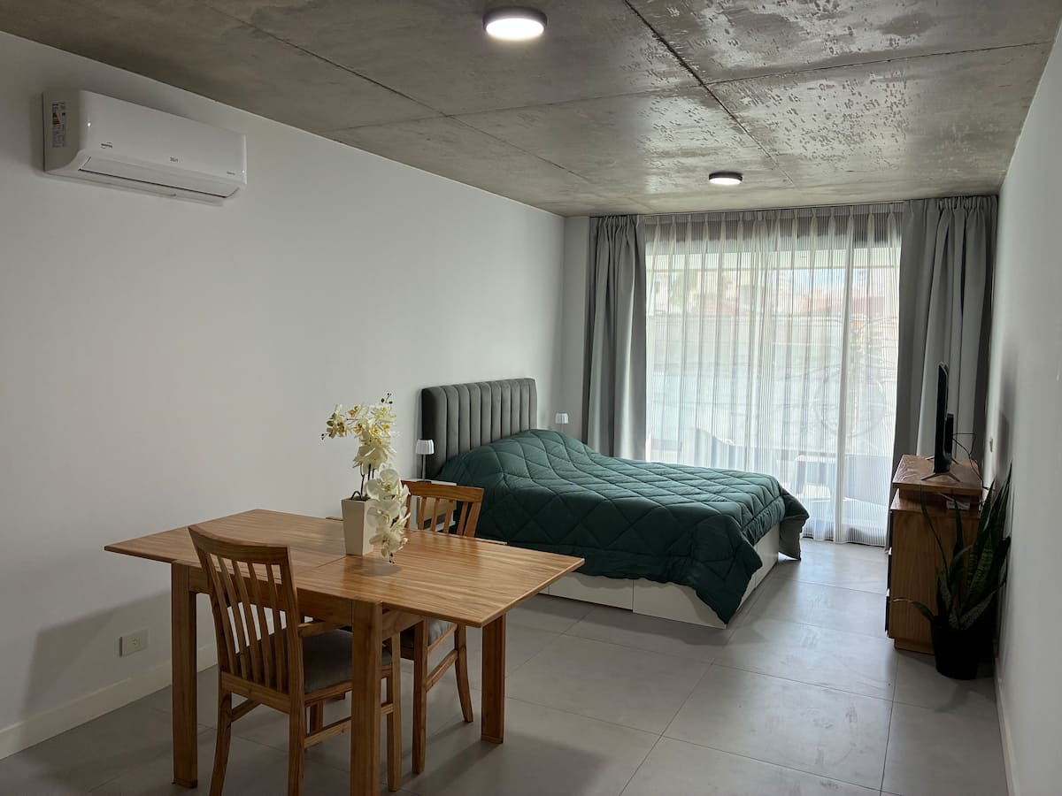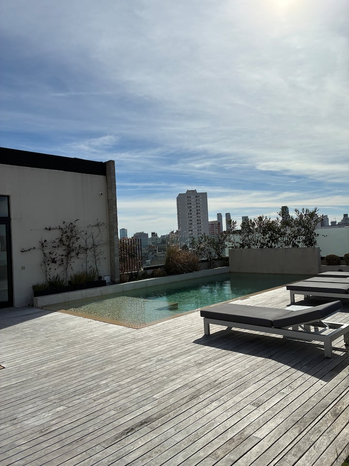 Kitnet mobiliada em Palermo, com cozinha completa, cama queen, banheiro com banheira e ar-condicionado. O imóvel conta com Wi-Fi e espaço de armazenamento. O prédio tem piscina, academia, SUM, área de churrasco, lavanderia com máquina de lavar e secar, e área externa para refeições.