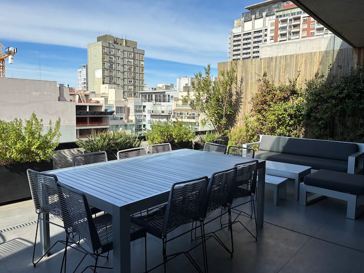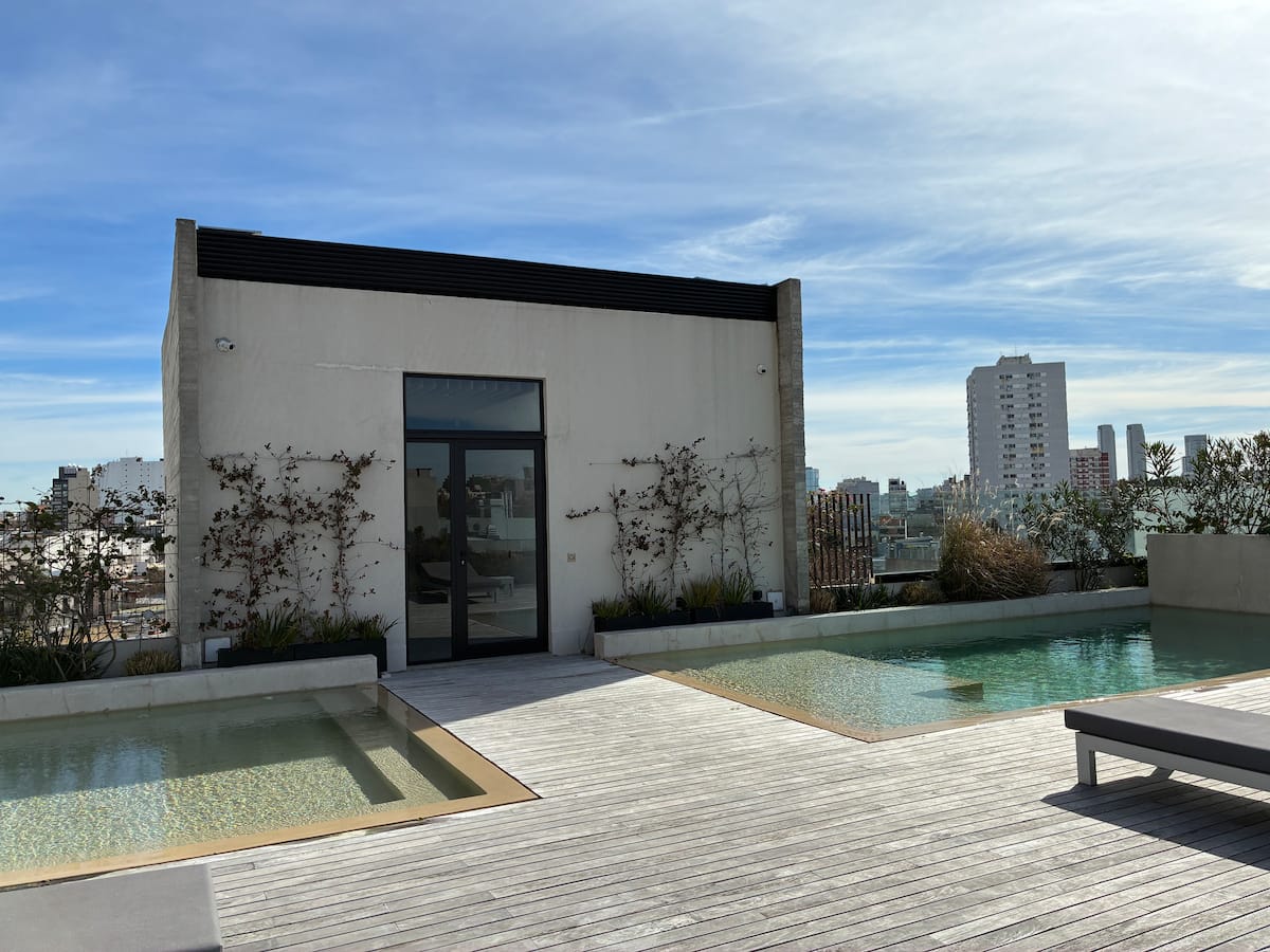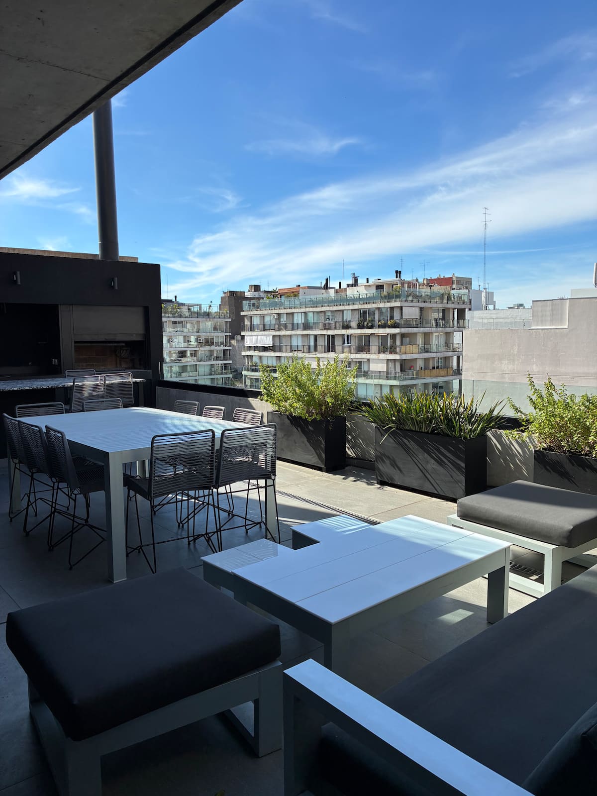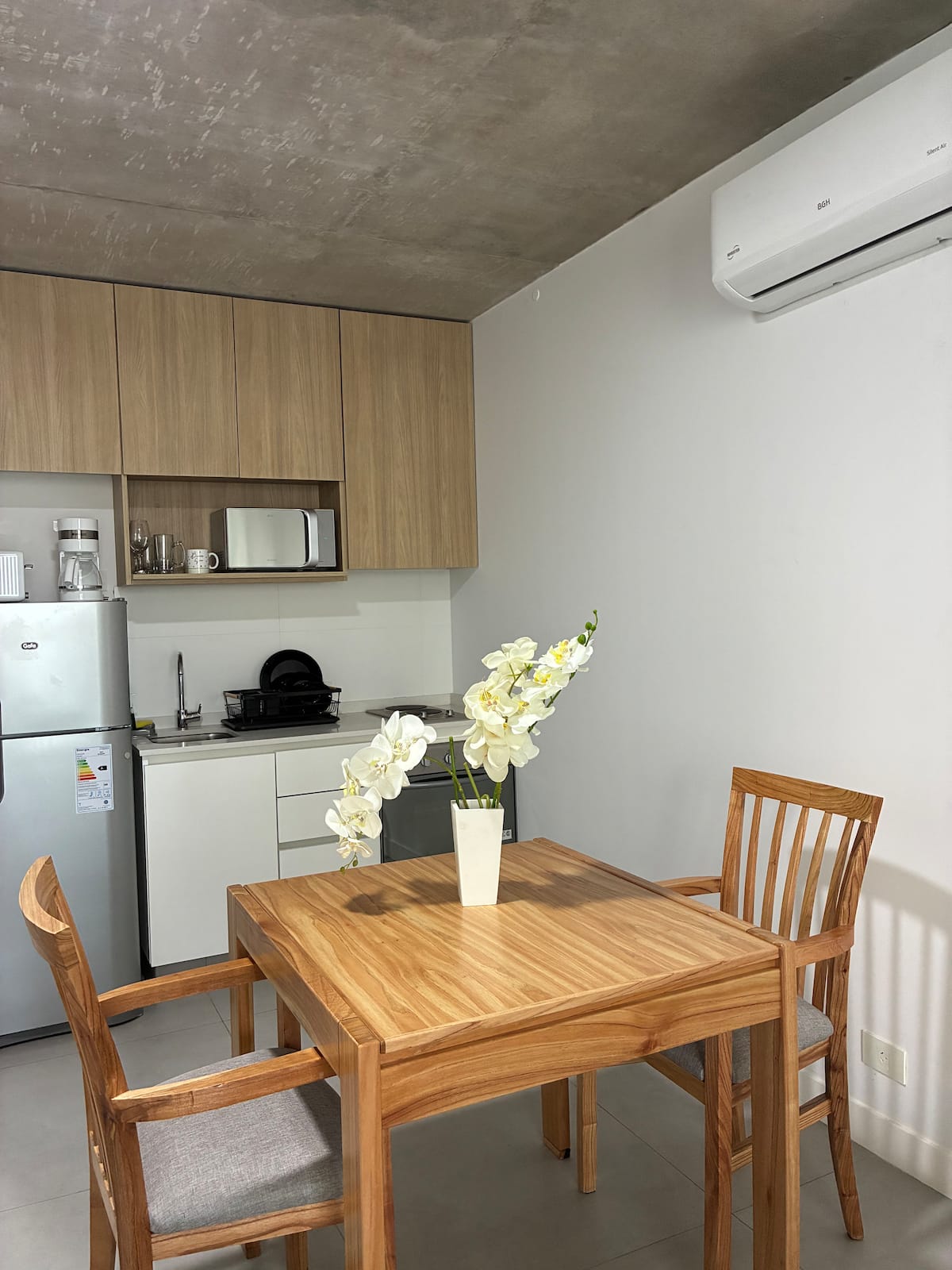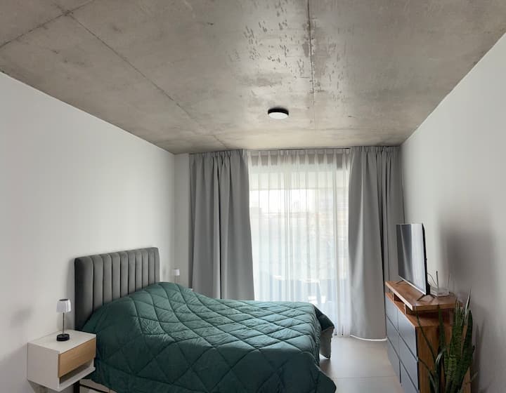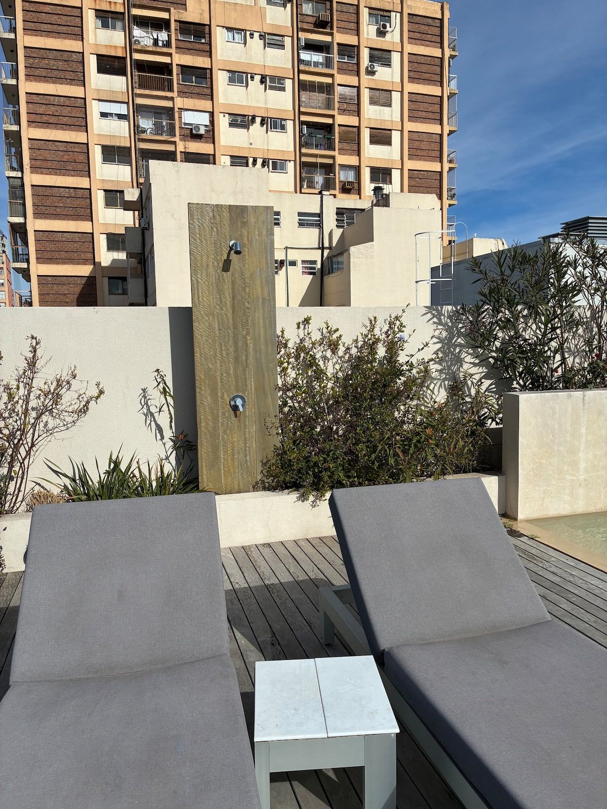 Kitnet mobiliada em Palermo, com cozinha completa, cama queen, banheiro com banheira e ar-condicionado. O imóvel conta com Wi-Fi e espaço de armazenamento. O prédio tem piscina, academia, SUM, área de churrasco, lavanderia com máquina de lavar e secar, e área externa para refeições.