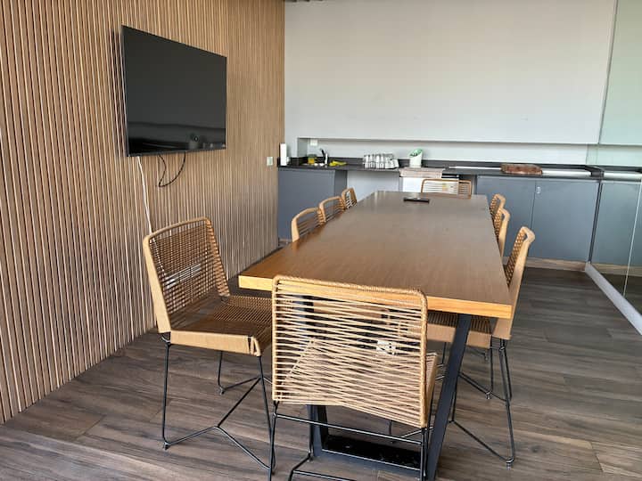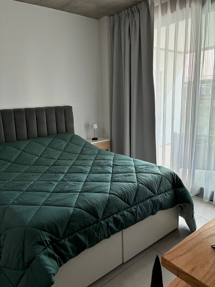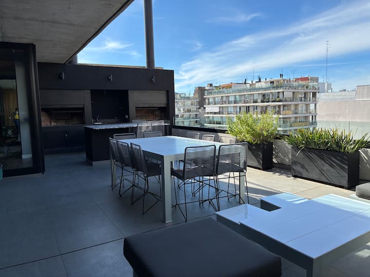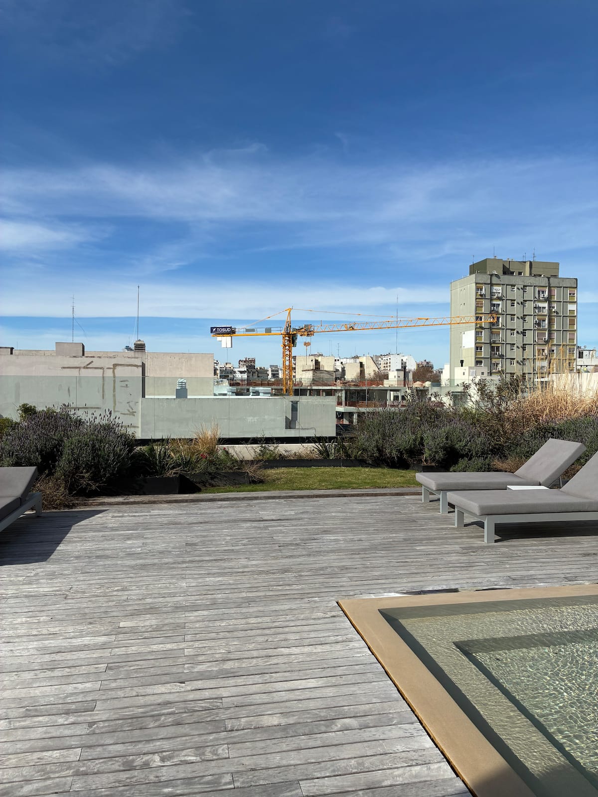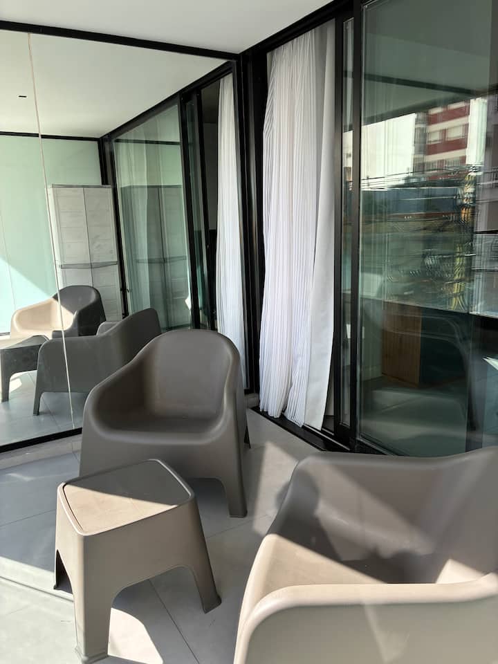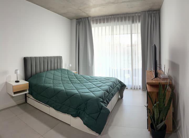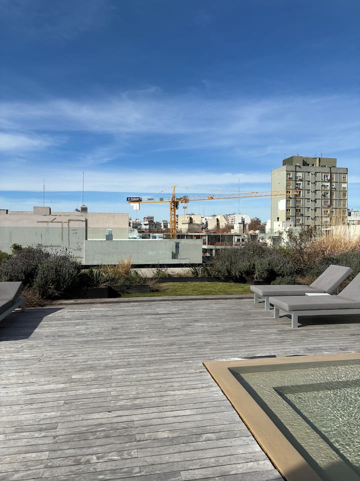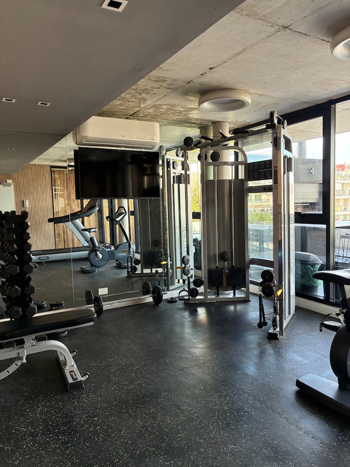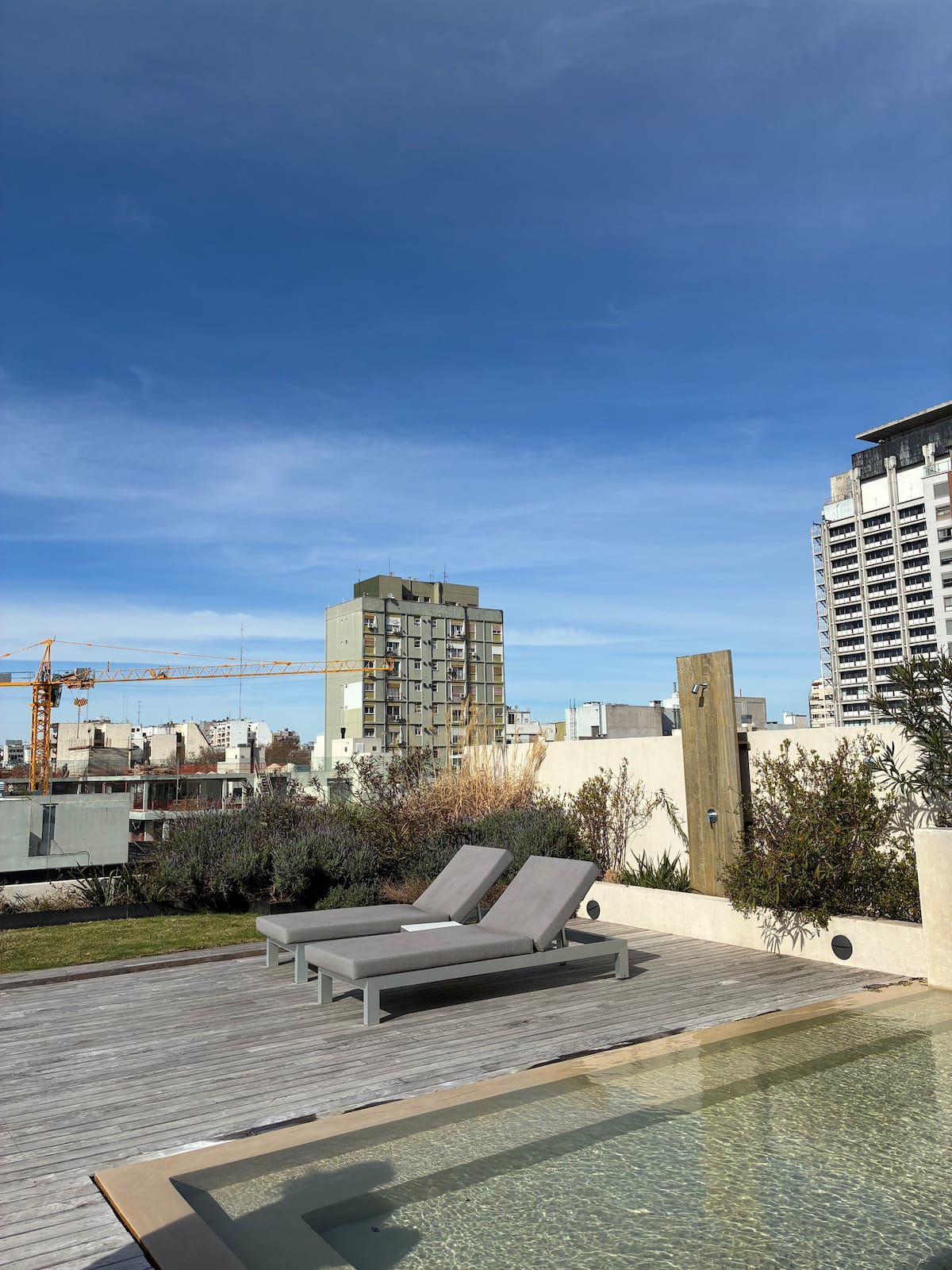 Kitnet mobiliada em Palermo, com cozinha completa, cama queen, banheiro com banheira e ar-condicionado. O imóvel conta com Wi-Fi e espaço de armazenamento. O prédio tem piscina, academia, SUM, área de churrasco, lavanderia com máquina de lavar e secar, e área externa para refeições.