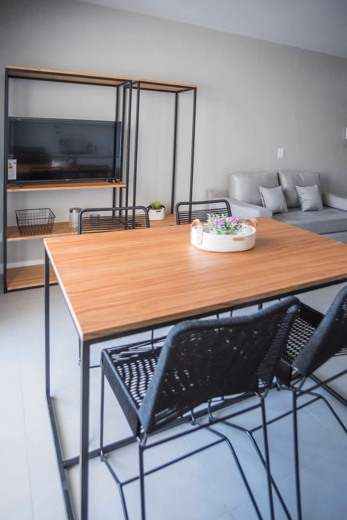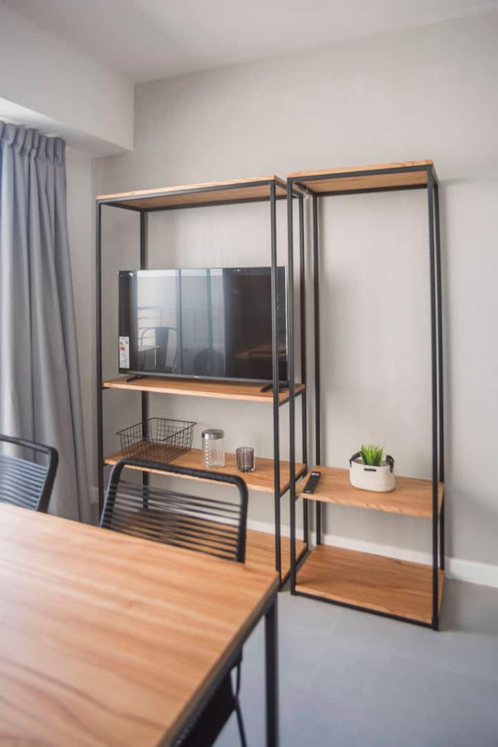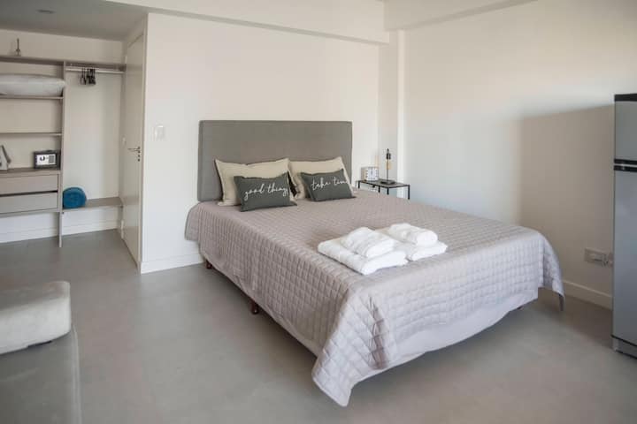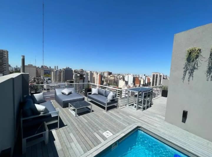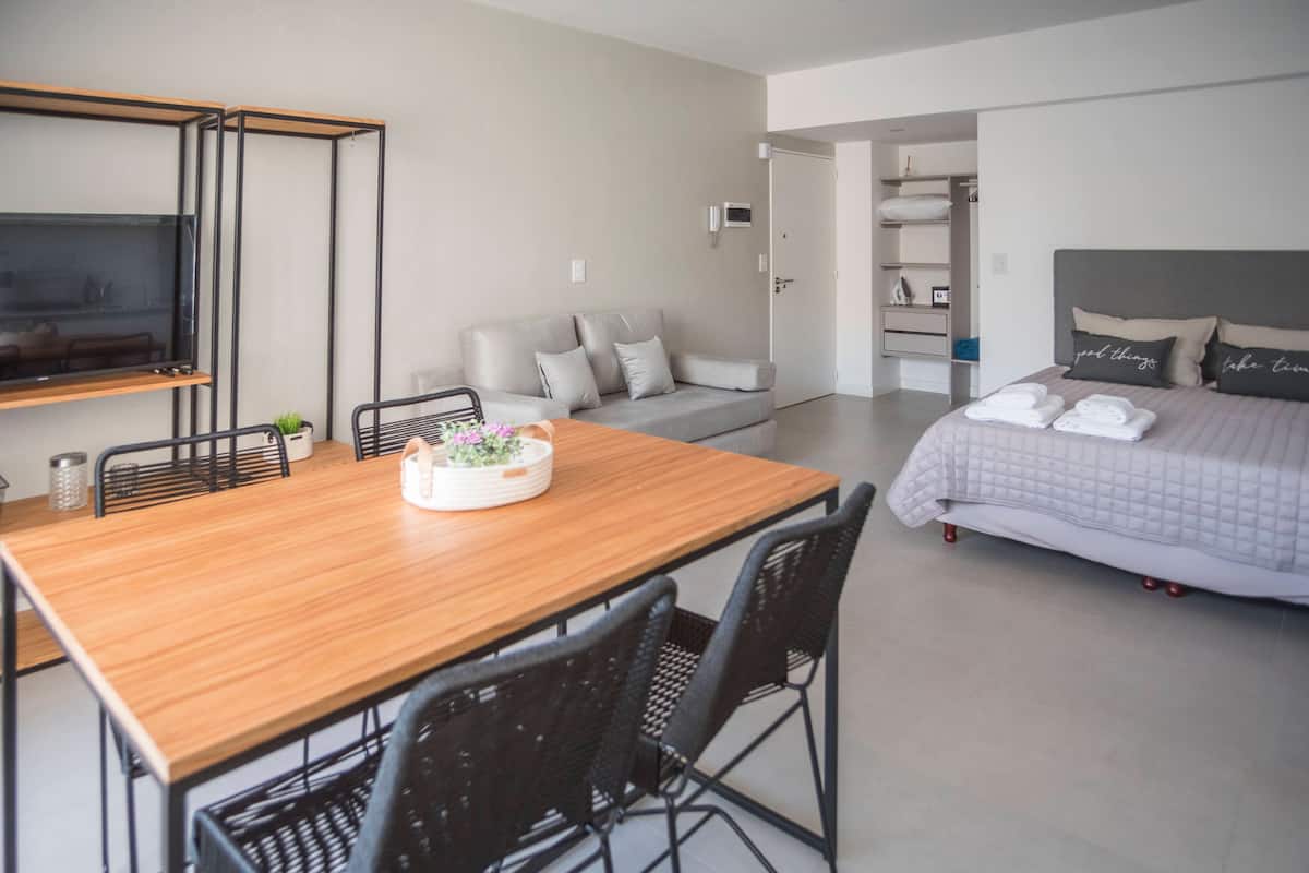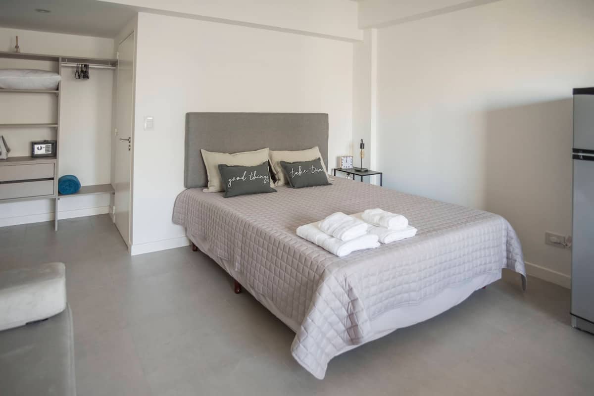 Studio de 1 ambiente com 9º andar, mobiliado e equipado para 3 hóspedes. Cama de casal de 140 cm e sofá-cama para a terceira pessoa. Água quente central com ar-condicionado quente/frio e varanda. Acesso à piscina e ao solarium no 13º andar, lavanderia no subsolo e área de ginástica.