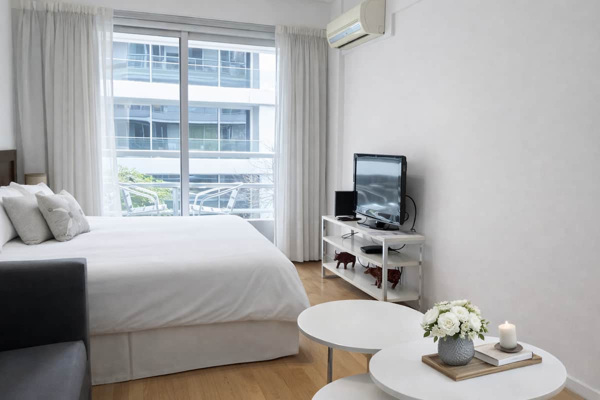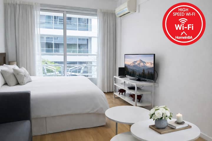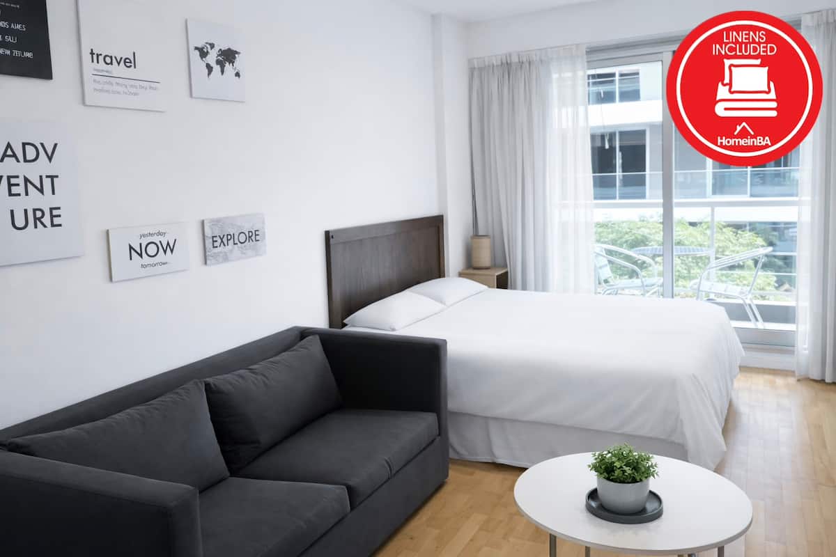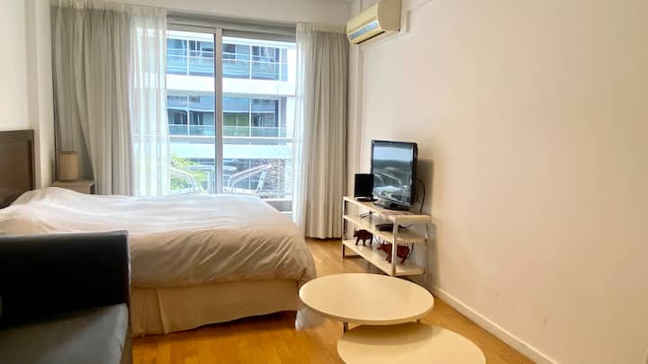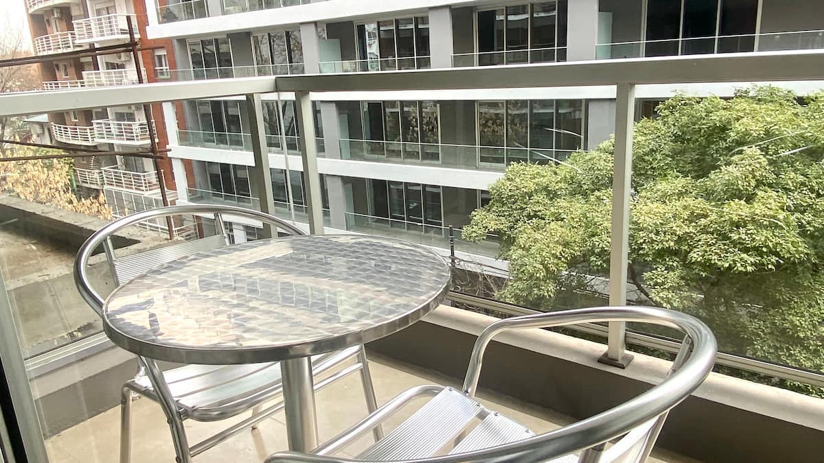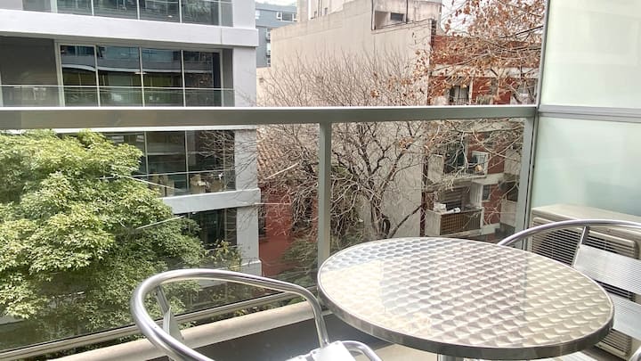 Kitnet em Palermo Soho, Buenos Aires, com varanda voltada para a rua. Mobiliada e equipada, em prédio com piscina, academia, jacuzzi, sauna e lavanderia. A cerca de 3 quadras do metrô e a poucos quarteirões do Arcos Shopping, com acesso a Plaza Serrano e La Rural.