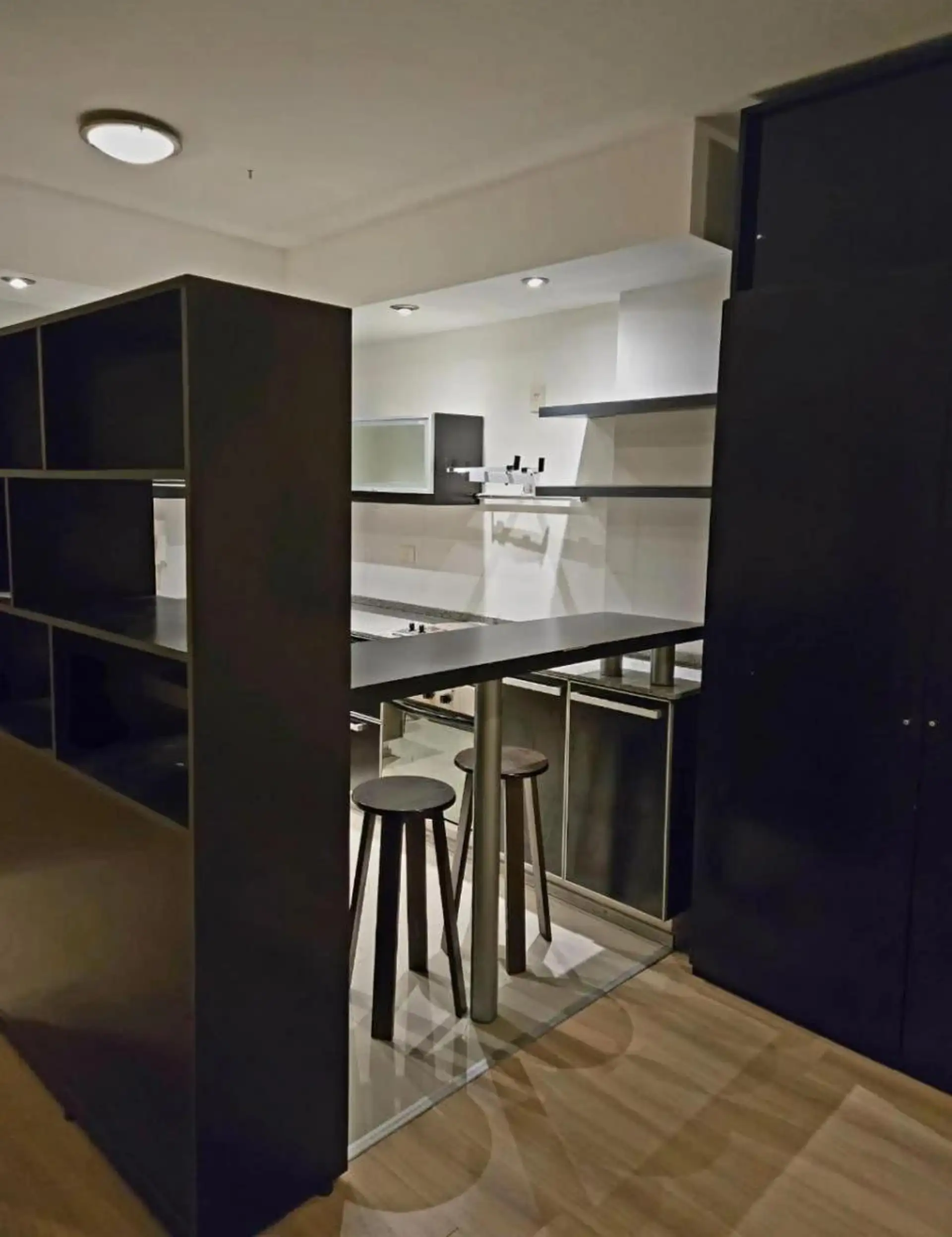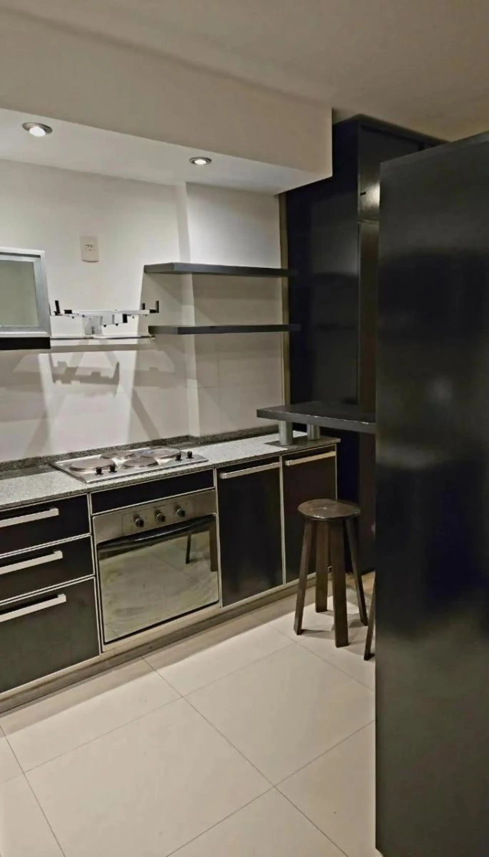 Kitnet de aproximadamente 42 m² totais, com 37 m² cobertos, no alto do edifício, com acesso por elevador, de frente para a rua e orientação a nordeste. A unidade tem cozinha com móveis sob e sobre a bancada, espaço principal com armários embutidos e banheiro completo. Inclui varanda; o anúncio menciona boa ventilação natural. O condomínio era de aproximadamente $180.000 em 22/12/2025.