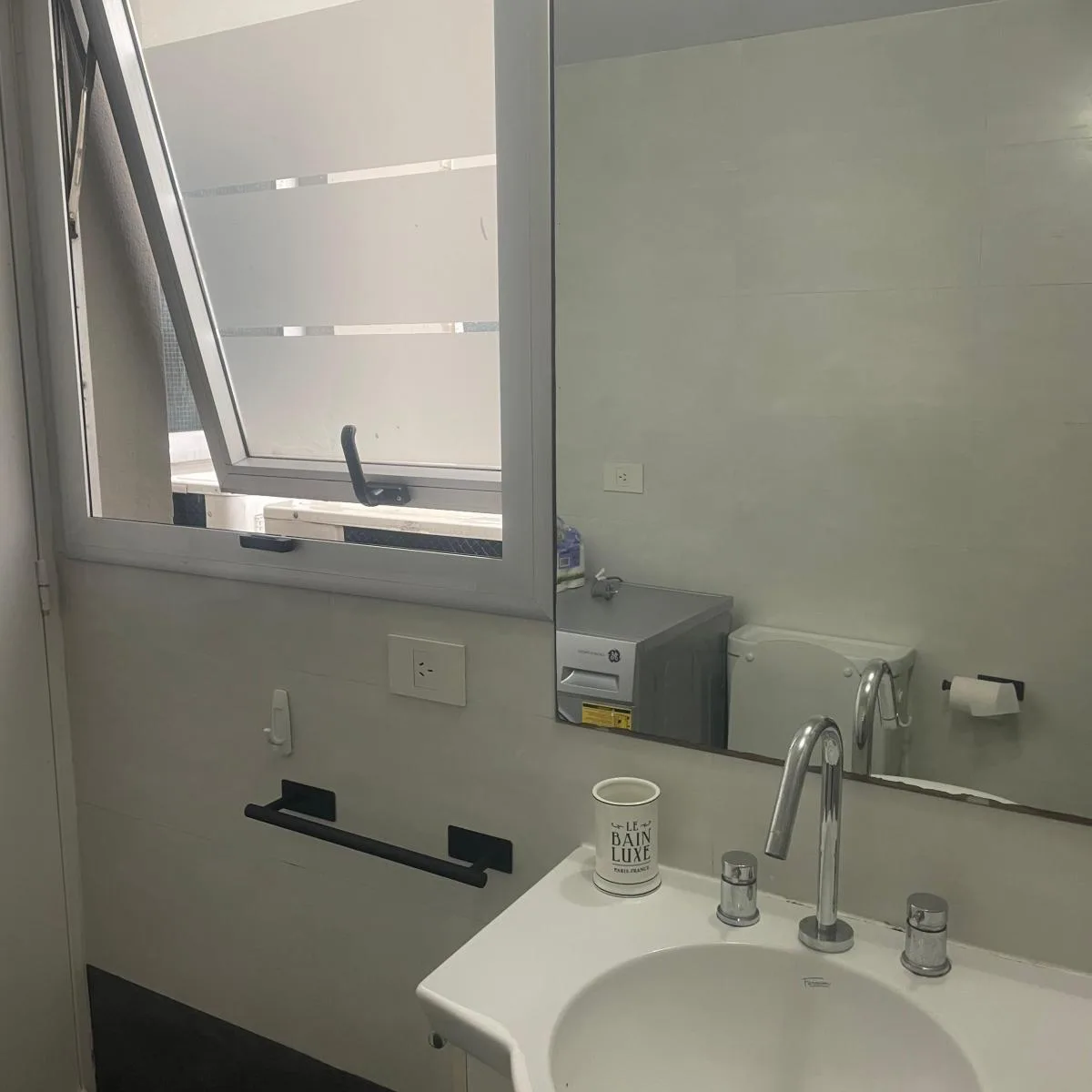 Kitnet divisível com vista aberta e de frente para a rua, com ventilação natural no apartamento. Tem pisos de madeira, cortina no living e no banheiro, cozinha a gás e armário. Possui conexão para lavadora e ar-condicionado frio e quente. O edifício tem piscina, solarium e salão comunitário; não aceita animais. Exige depósito de 1 mês e reajuste a cada 4 meses pelo IPC.
