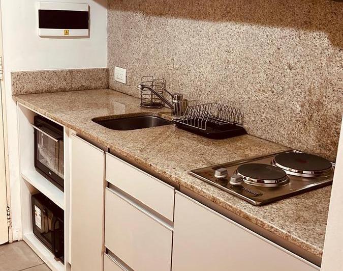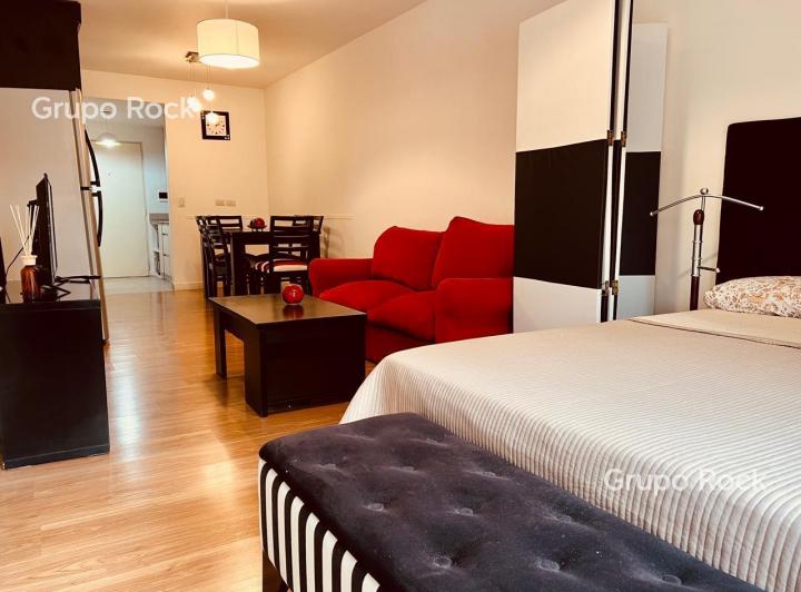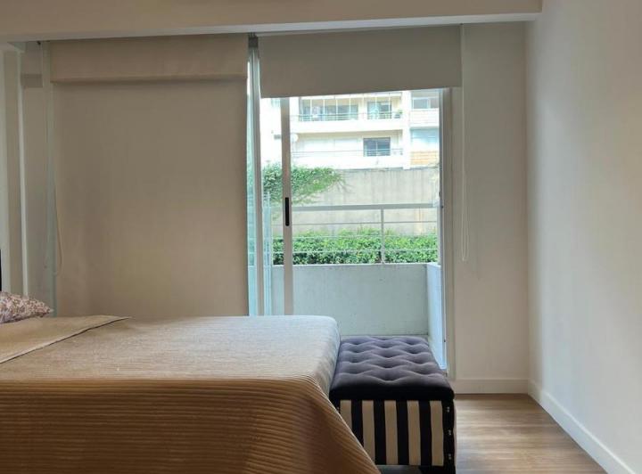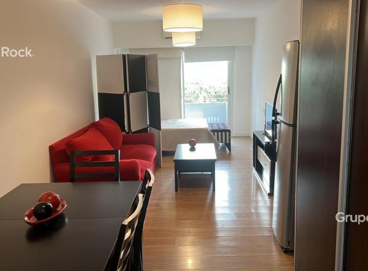 Kitnet (monoambiente) com varanda, de frente para o Distrito Arcos, em Palermo. Edifício com amenities. A publicação menciona proximidade com as Av. Santa Fe e Juan B, Plaza Italia e La Rural. Os valores de condomínio (expensas) e ABL indicados referem-se à última informação disponível e devem ser confirmados.