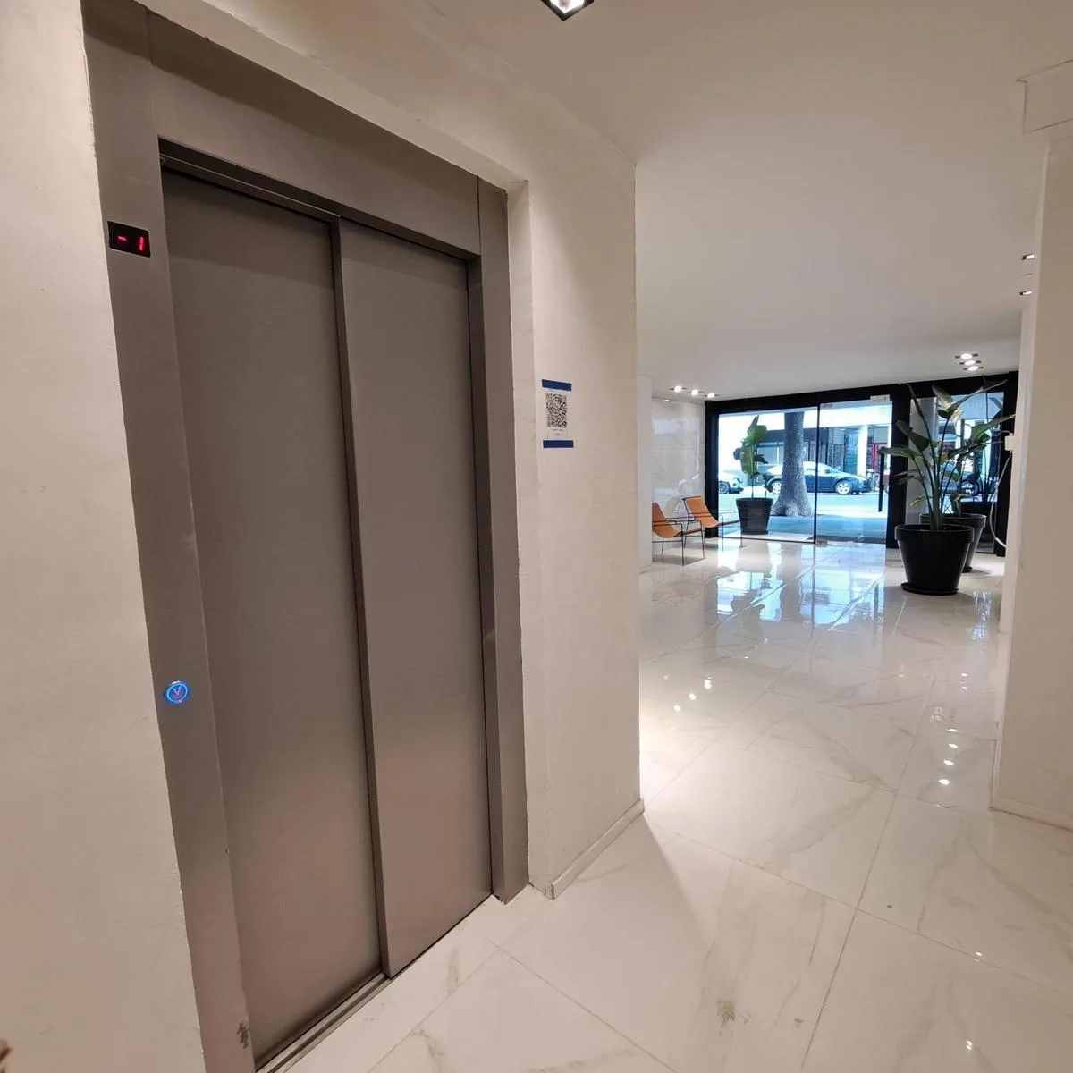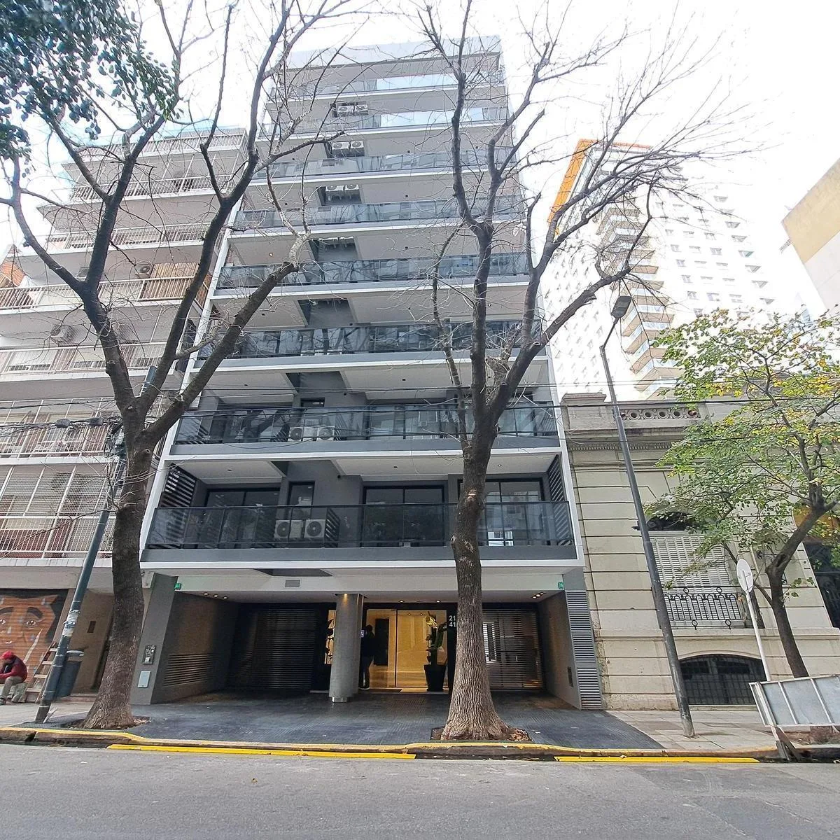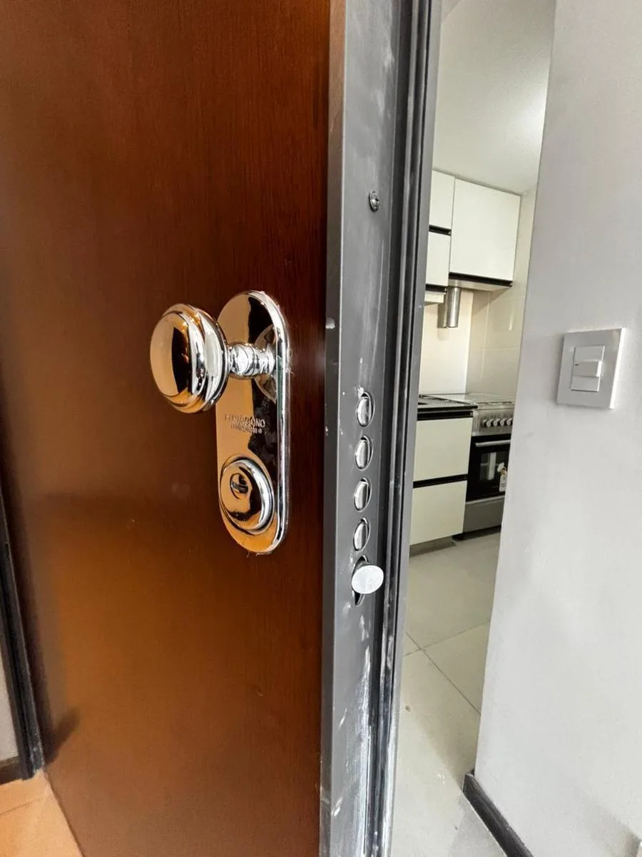 Kitnet novo (nunca habitado) em Palermo Soho, com balcão de fundos e vista aberta. Possui porta blindada, ar-condicionado (frio/quente), pisos de porcelanato e cozinha separada com móveis planejados, fogão elétrico. Há espaço para máquina de lavar e banheiro com banheira. O edifício tem piscina, SUM com área de churrasco e solarium/terraço. Condomínio e vaga de garagem (opcional) são informados à parte: vaga no prédio por US$ 170.000 mensais, mais condomínio. Contrato de 2 anos com ajuste trimes