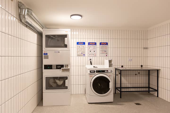 Kitnet mobiliada de 22 m² no 2º andar, com vista para área verde e sem varanda. Inclui cama de 1,40 x 1,90 m, armário grande e cofre. Conta com ar-condicionado e aquecimento com termostato digital, TV Smart de 40 polegadas, mesa com cadeira, cozinha equipada com geladeira com freezer, 2 fogareiros elétricos, torradeira, Aeroccino, cafeteira Nespresso, chaleira elétrica e micro-ondas (sem forno), além de Wi‑Fi de 300 MB e secador de cabelo. O prédio tem elevador e escadas; há lavanderia com máqui
