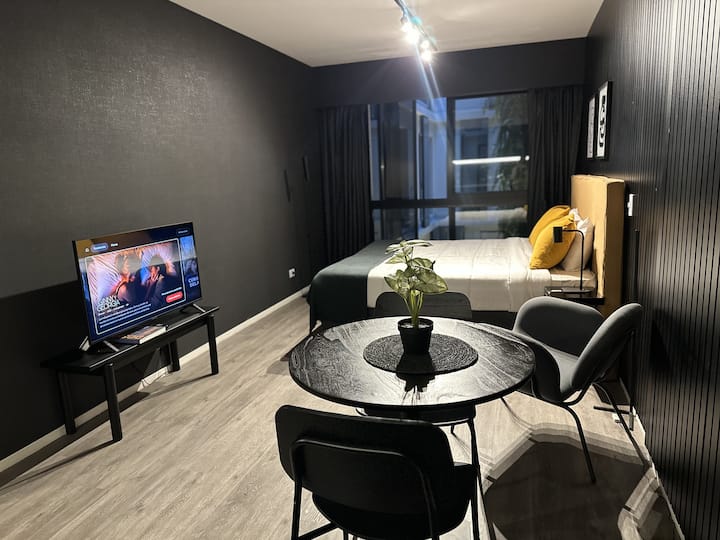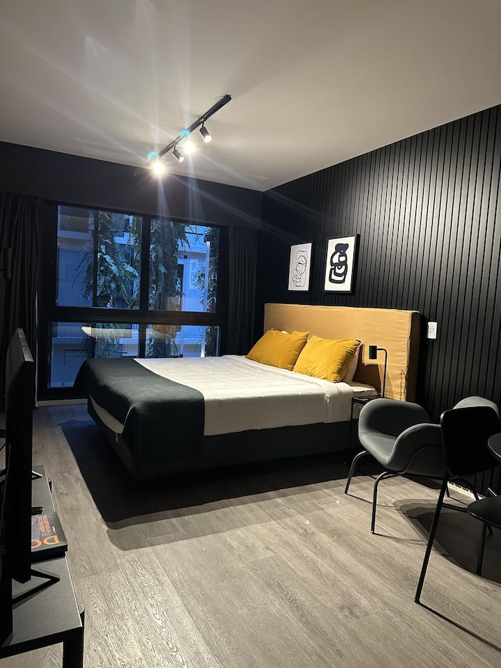 Kitnet em Palermo, em categoria premium. O prédio tem piscina aquecida semi-olímpica, piscina ao ar livre, academia com 500 m², área de co-working, espaço para yoga e meditação, sala de massagem, segurança 24 horas, terraço, solário e áreas para churrasco. Localizada na divisa entre Palermo Hollywood e Colegiales.