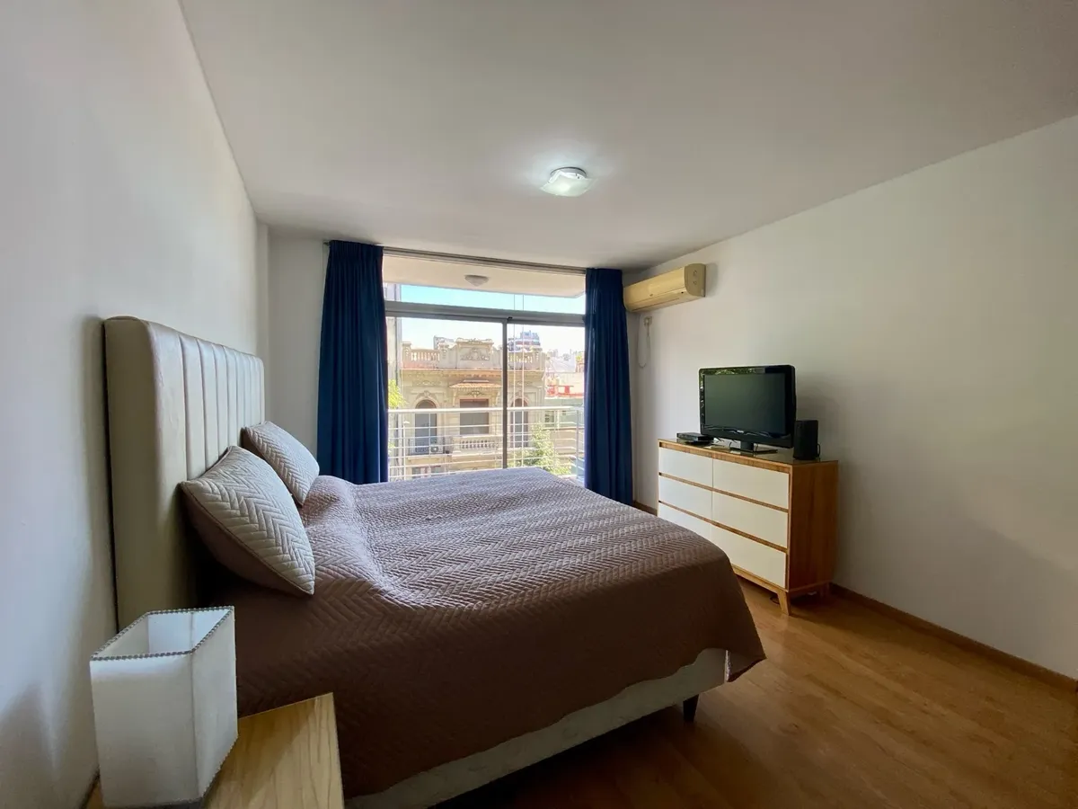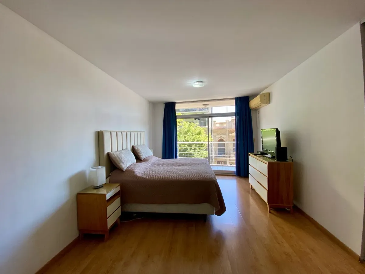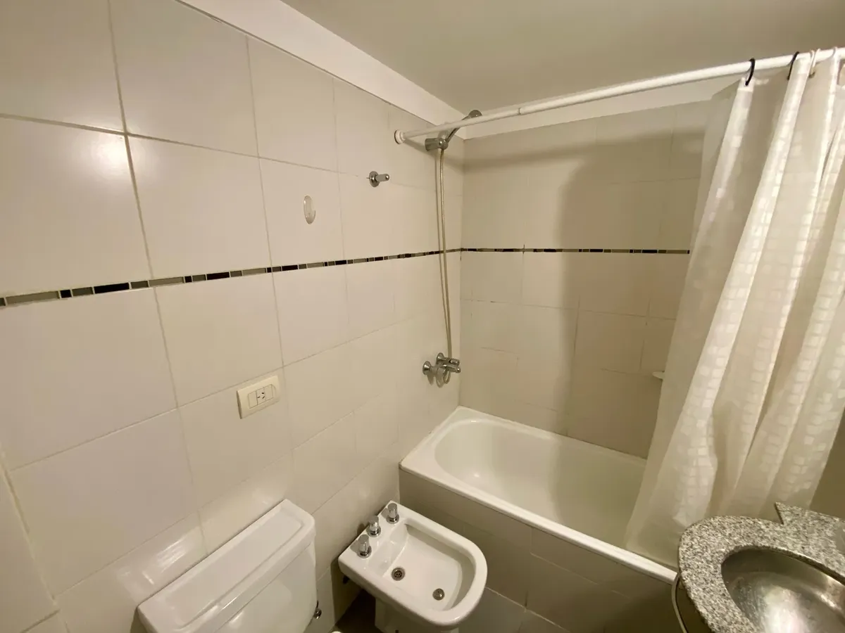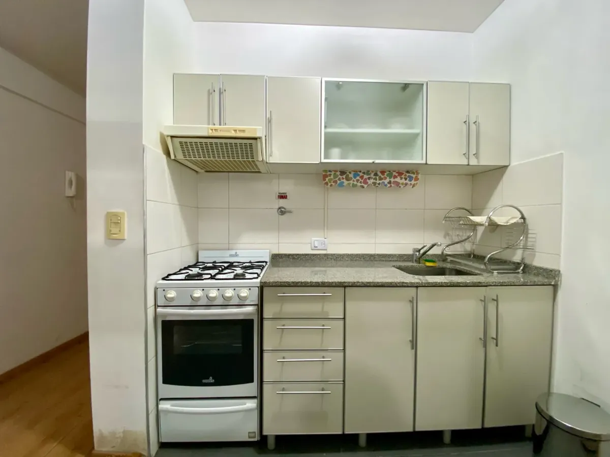 Kitnet mobiliada, de frente para a rua, com cozinha semi integrada e área principal equipada com mesa para 4 pessoas, cama de casal, mesas laterais e rack com TV. Possui armário com portas espelhadas e balcão de frente. Inclui banheiro completo, além de terraço com piscina, área de churrasco e lavanderia (laundry). Contrato de 2 anos, com 1 mês de adiantamento e 2 meses de depósito; é exigida fiança de aluguel ou garantia de CABA, mediante comprovação de renda.