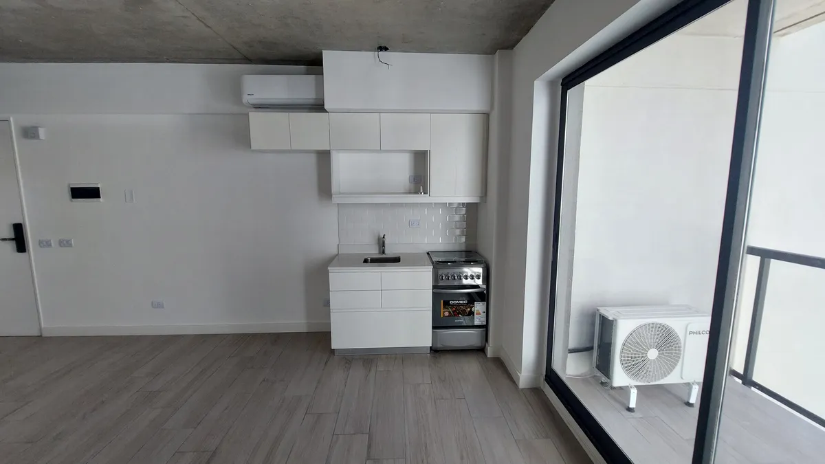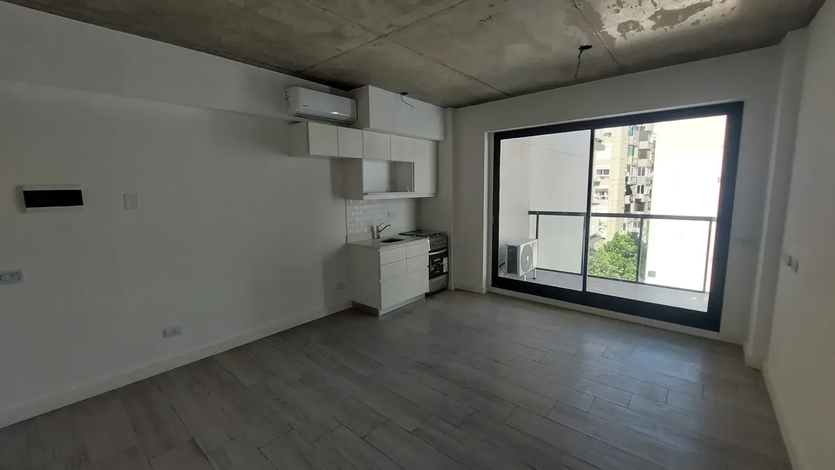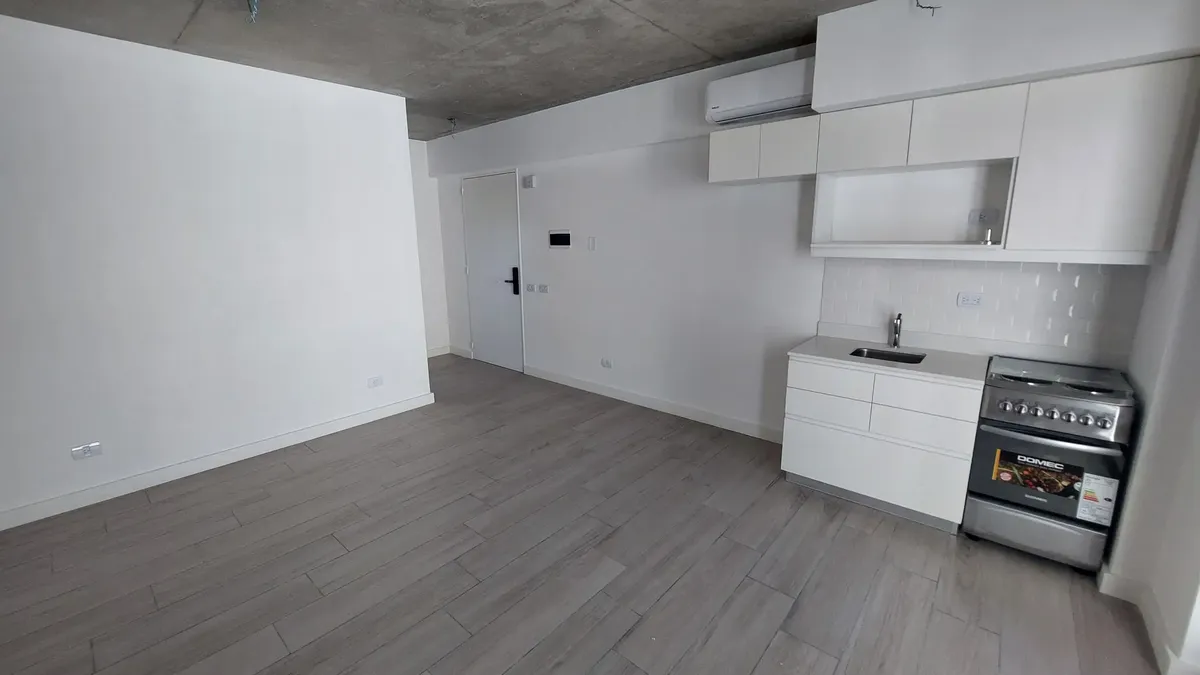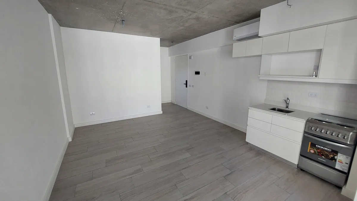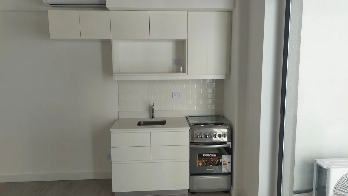 Kitnet em Palermo, com cozinha integrada e ar-condicionado. Frente ao Shopping Los Arcos, com 1 banheiro completo e luz natural. O imóvel é entregue com forno e fogão elétrico (anafe), cozinha equipada, pisos de porcelanato, techos de concreto aparente e fechadura eletrônica. O prédio oferece piscina, solarium, salão de festas, área de churrasco, academia e lavanderia. Apto profissional. Para locação: 1 mês adiantado e 1 mês de depósito, com garantia (fiador ou seguro fiança) e apresentação de c