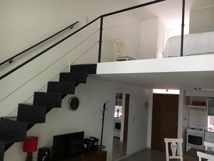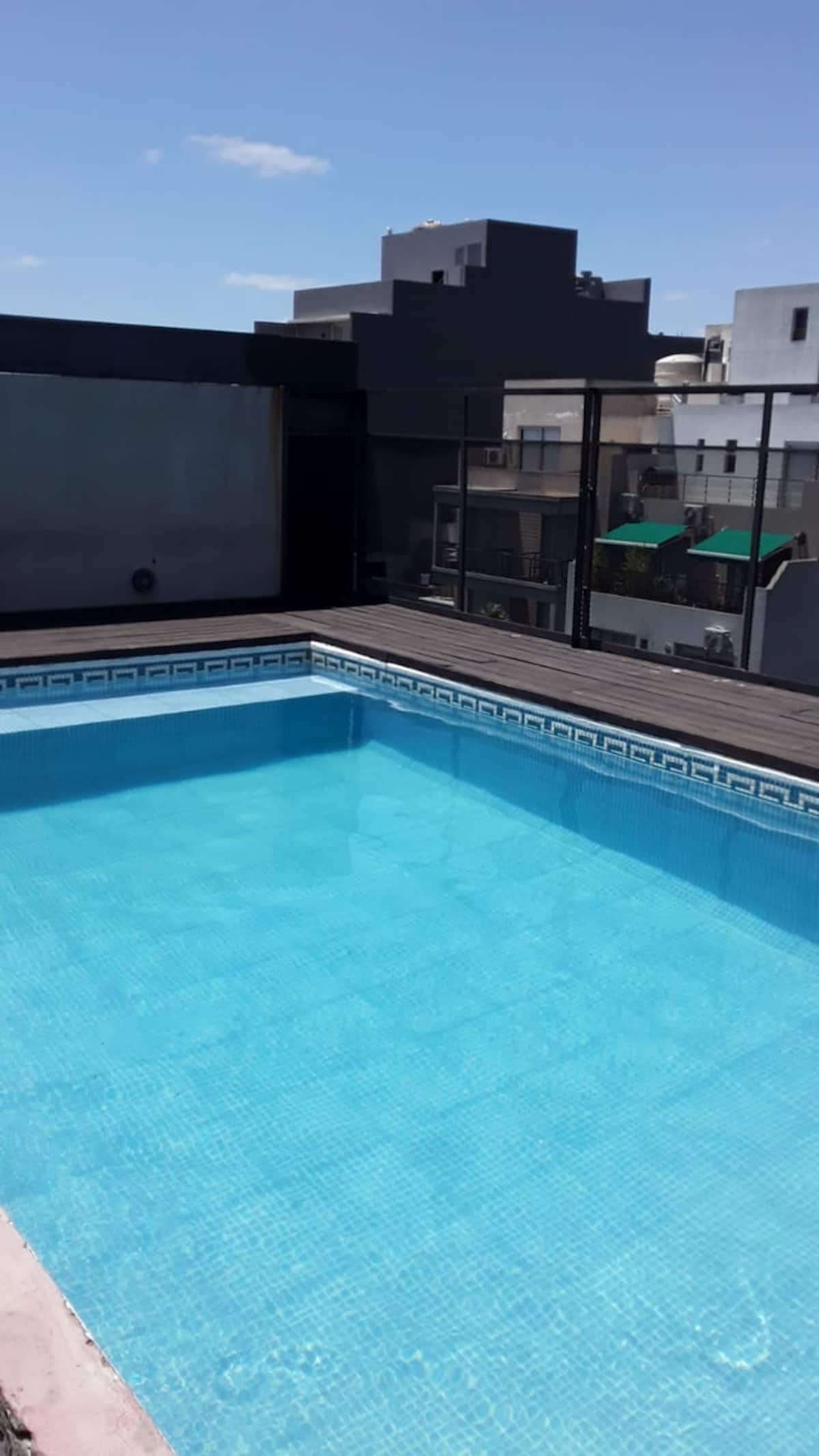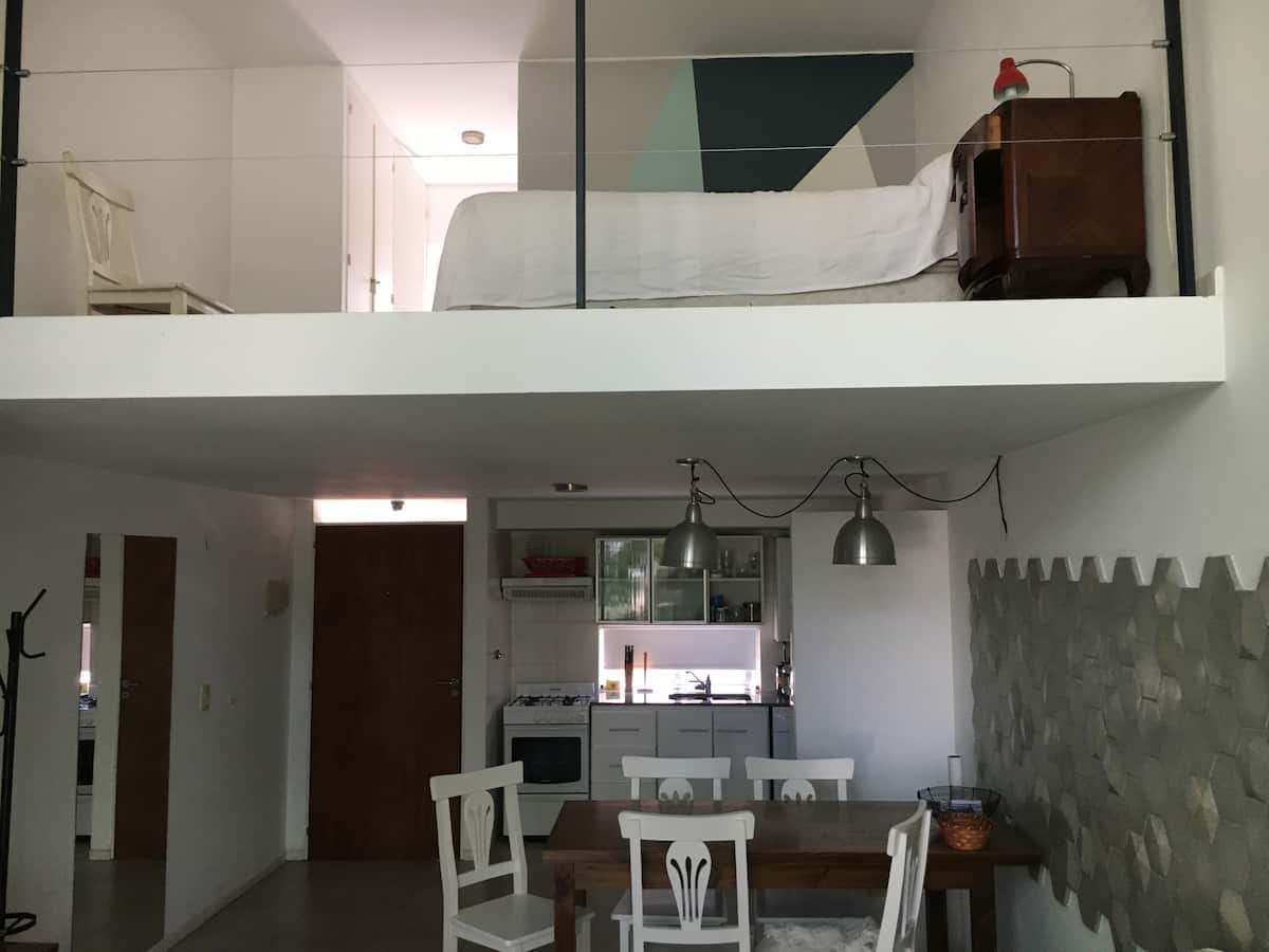 Loft mobiliado no 3º andar, em prédio novo, em Palermo Hollywood. No primeiro nível há sala, cozinha americana integrada e varanda com cadeiras e mesa. No segundo nível há quarto com cama queen, espaço para closet, cofre e 1 banheiro completo. O imóvel tem janelas em dois pavimentos, sistema de ar-condicionado e aquecimento, TV, geladeira, freezer e player de DVD; há TV a cabo com canais em inglês. O prédio oferece garagem, elevador e terraço com piscina e solário.