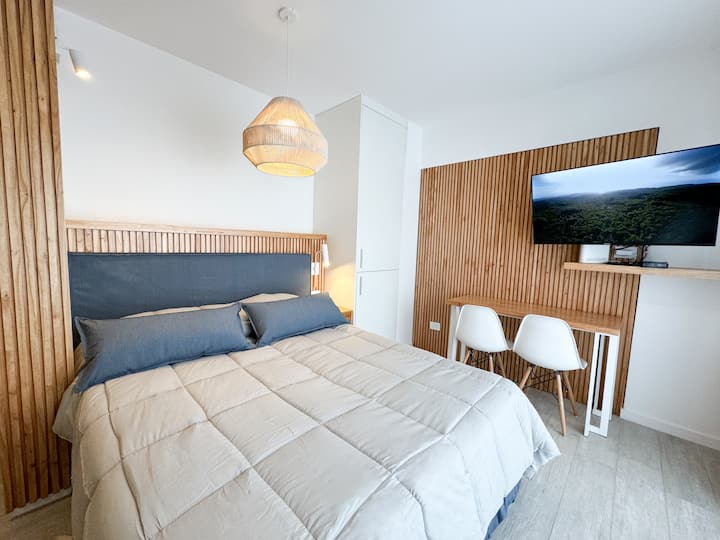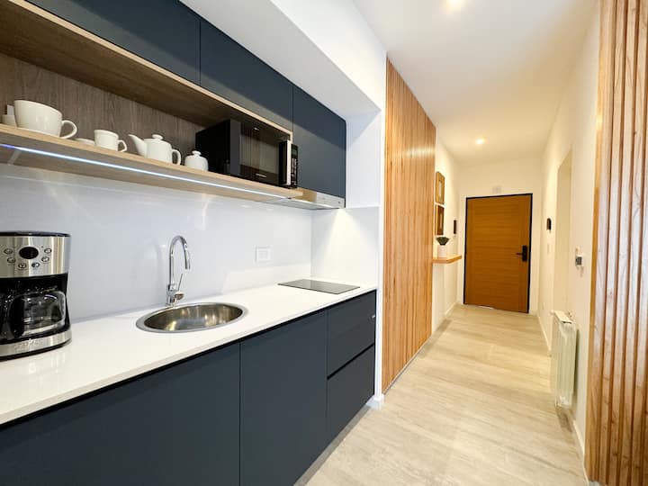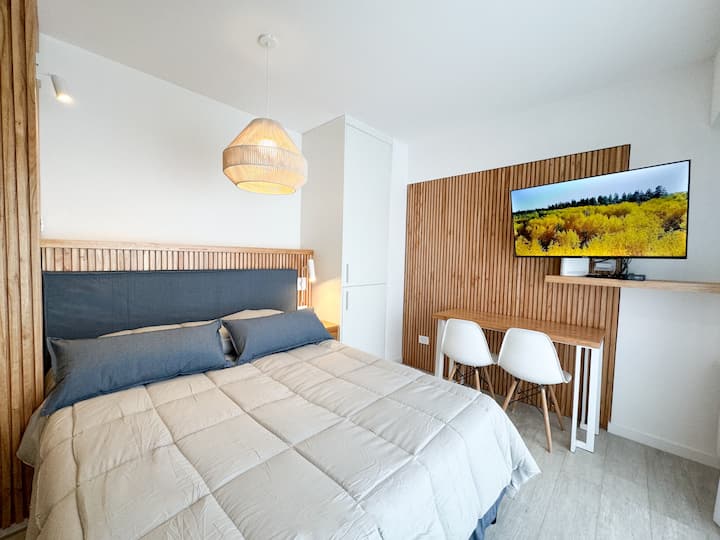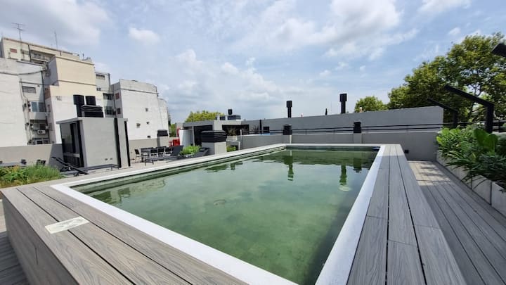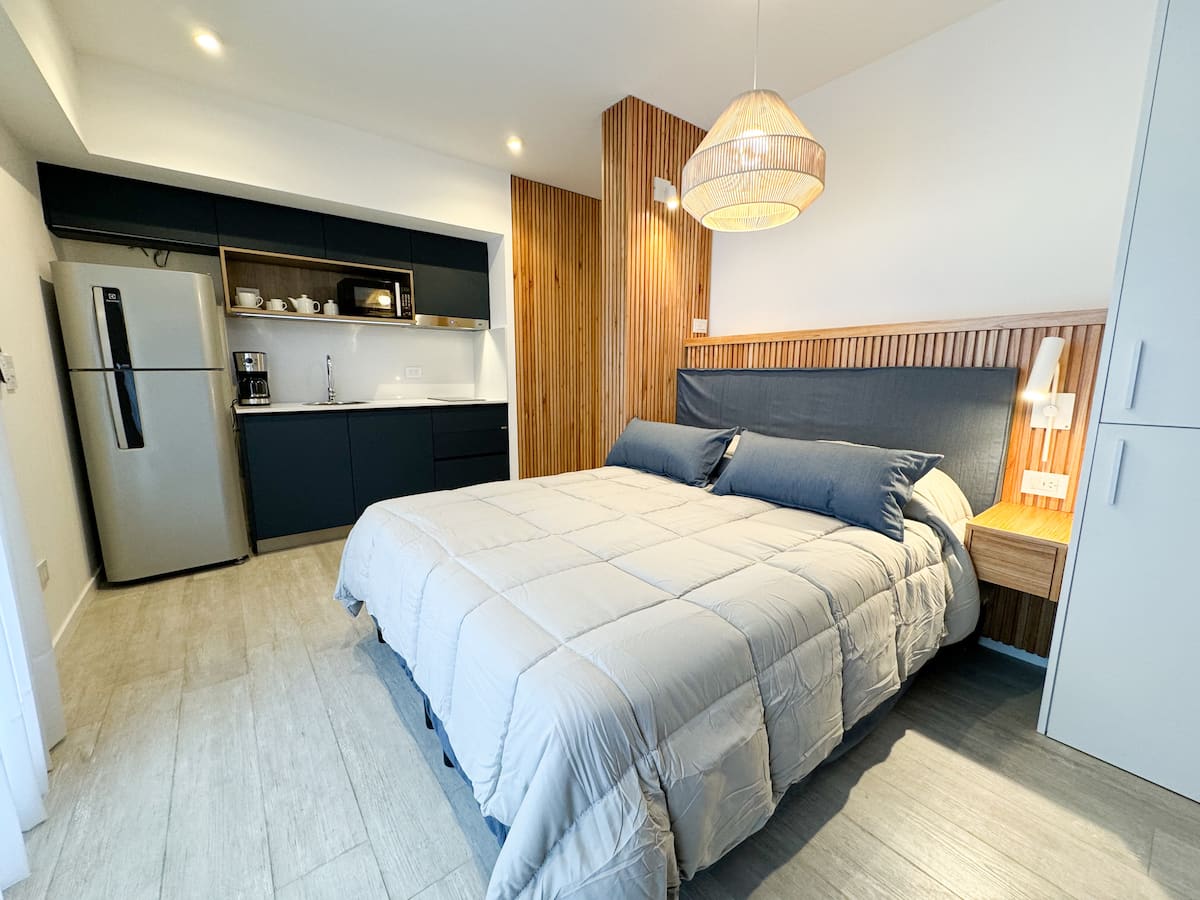 Apartamento tipo kitnet em Palermo Soho, novo. Mobiliado e equipado para estadia de até 2 pessoas. O prédio fica perto de restaurantes, bares e cafés, e também de conexões de transporte público.