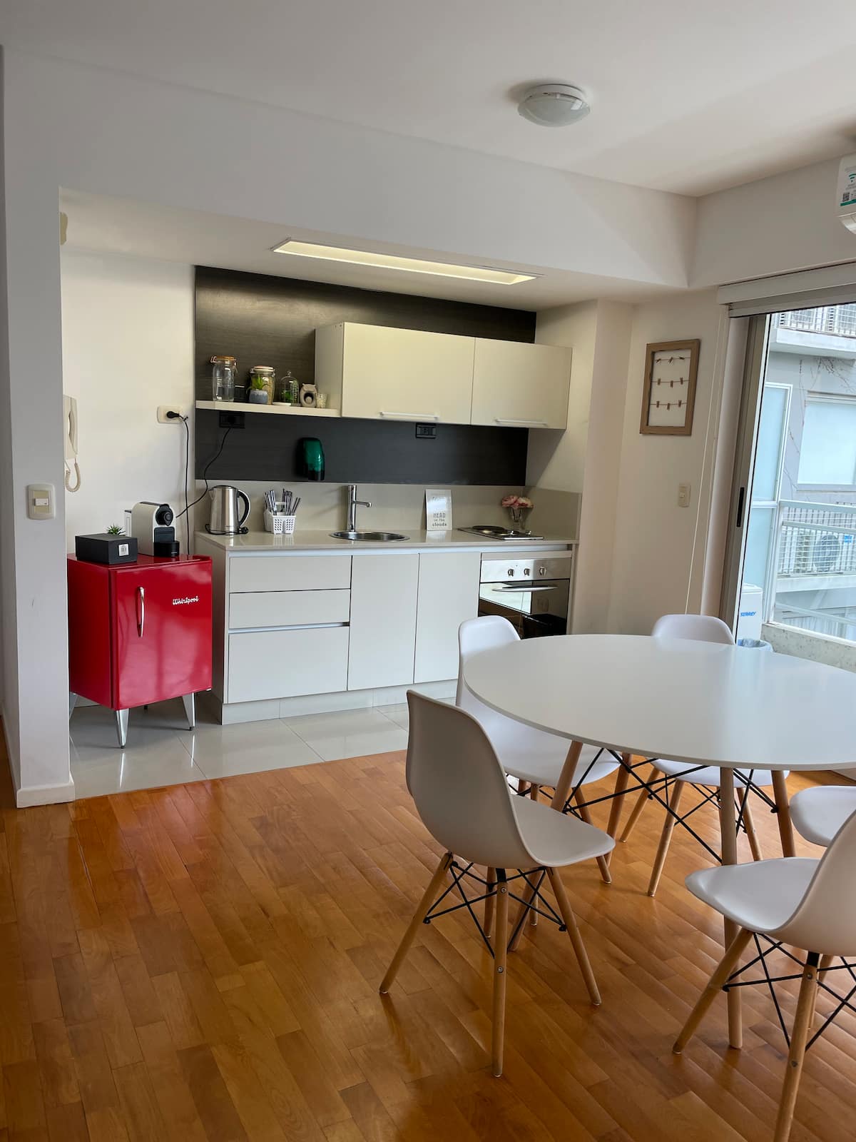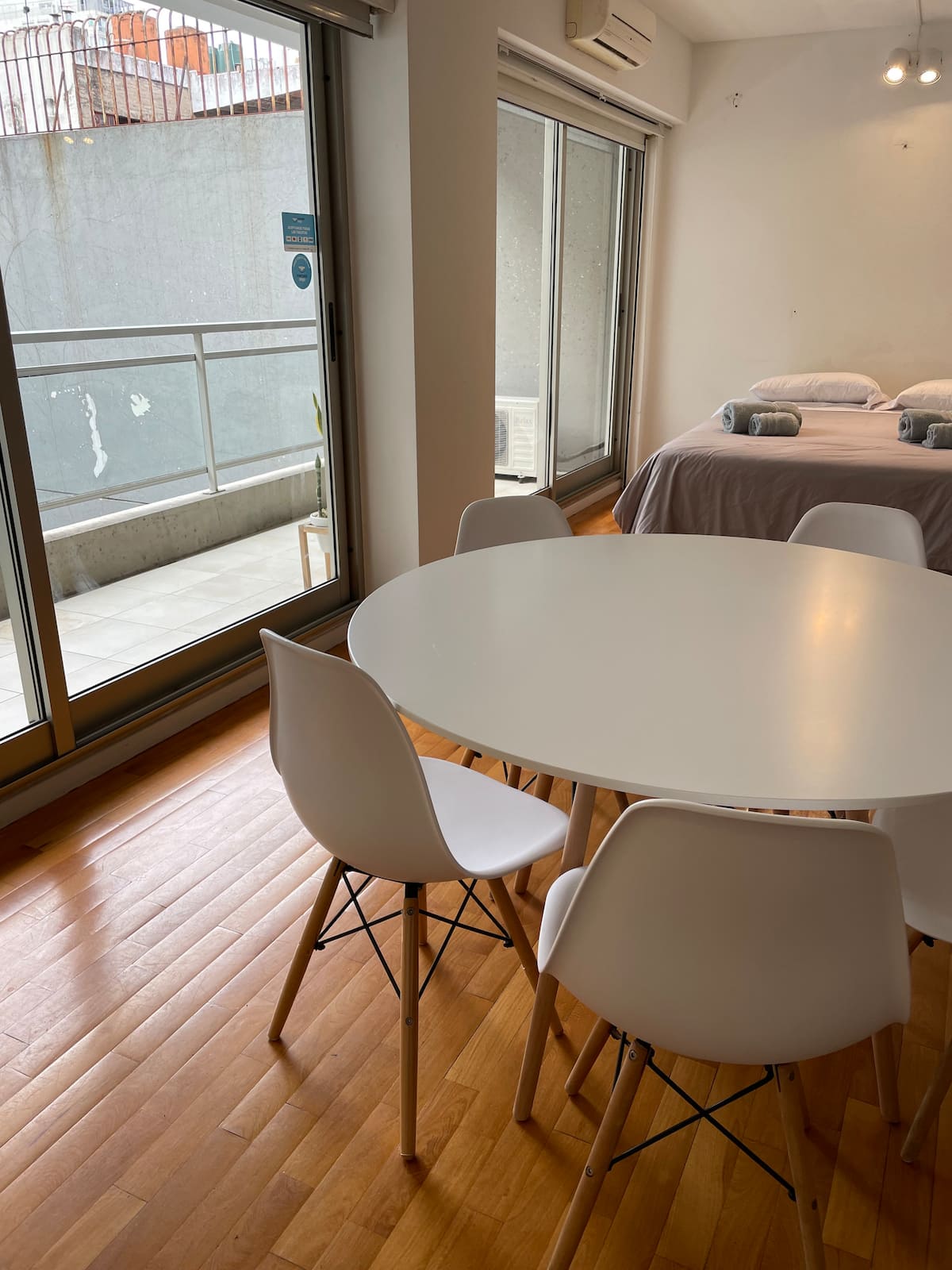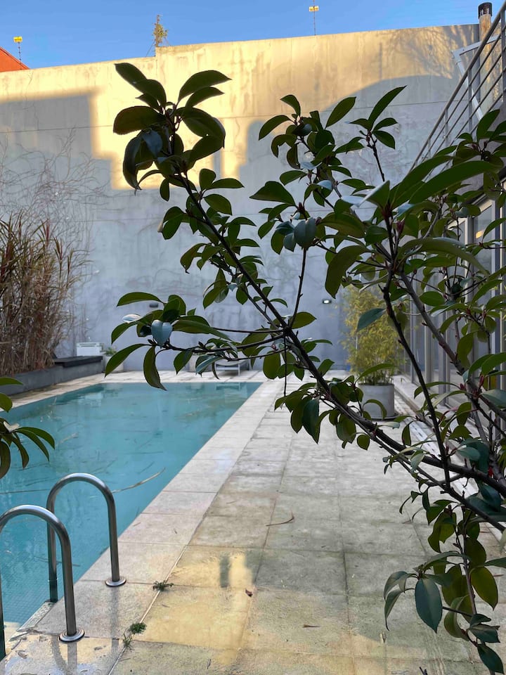 Kitnet em Palermo Soho, mobiliada, com varanda ampla. A unidade fica em área residencial silenciosa e dispõe de boa conexão à internet. O prédio tem piscina e academia, com acesso entre 8:00 e 20:00.