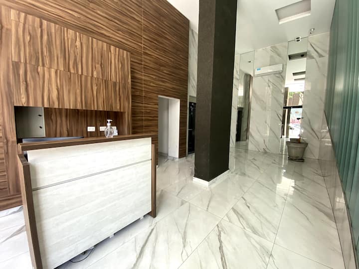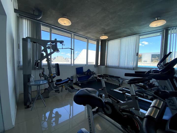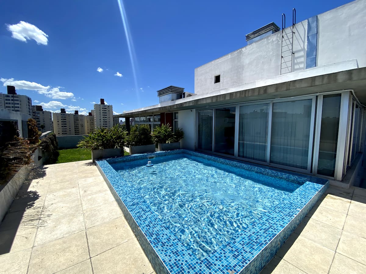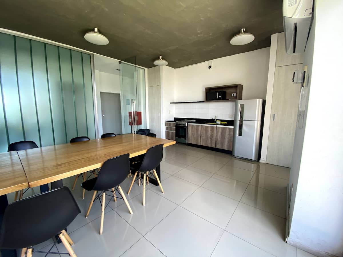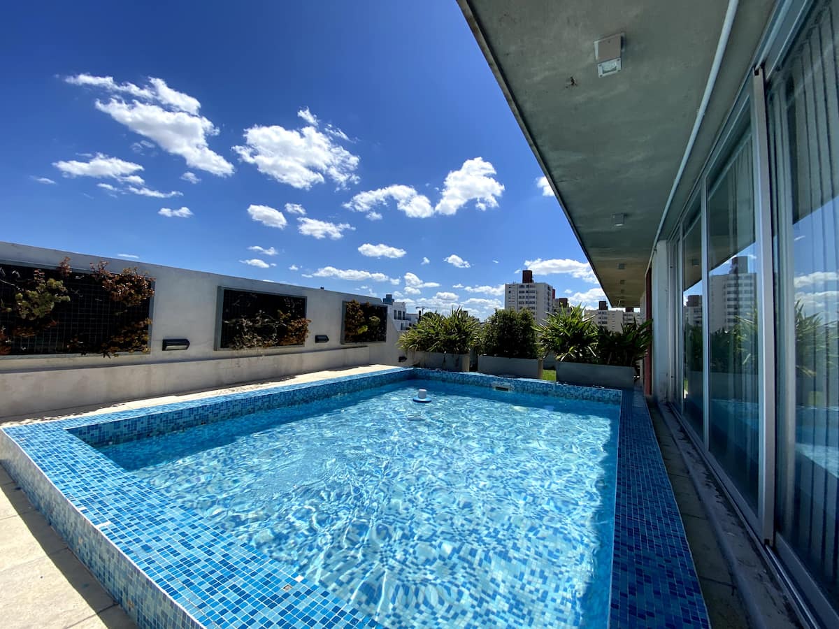 Apartamento do tipo kitnet em Palermo, com capacidade para 2 hóspedes, mobiliado e conforme fotos. Inclui cama de casal, ar-condicionado frio e quente, louças completas, Smart TV e mesa de refeições. O edifício oferece piscina, academia, solário e SUM, com acesso mediante regras de convivência.