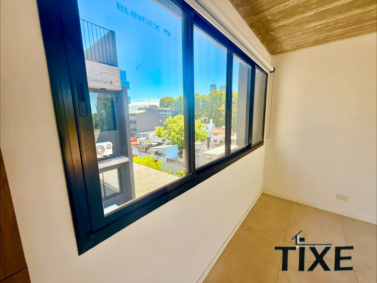 Loft/estúdio novo em Palermo Soho, em meio andar no 4º andar, de frente para a rua. Tem cozinha integrada estilo americana, 1 banheiro completo e lavanderia integrada, além de ventilação cruzada. Conta com ar-condicionado split e aquecimento por piso radiante com caldeira dual; cortinas Roller Black Out instaladas. Inclui terraço próprio de 15 m². Apto profissional e condomínio com valor baixo.