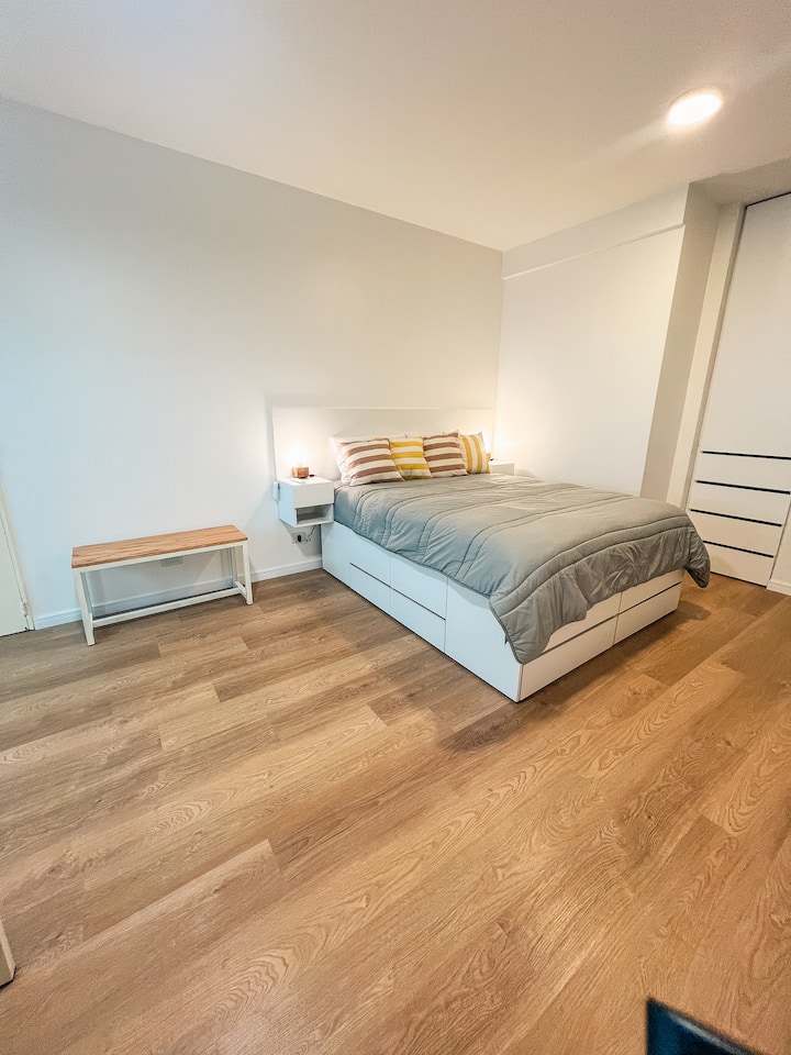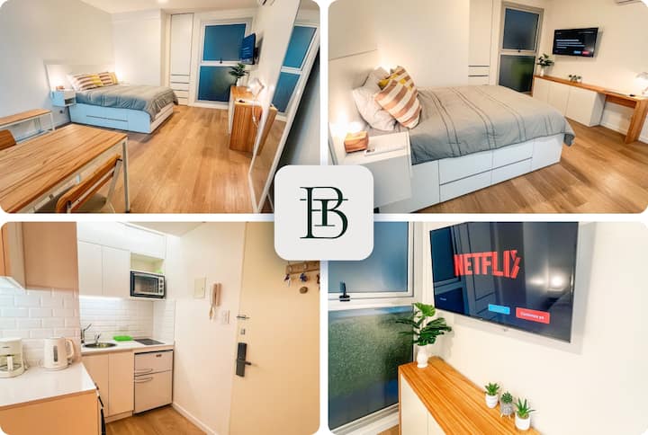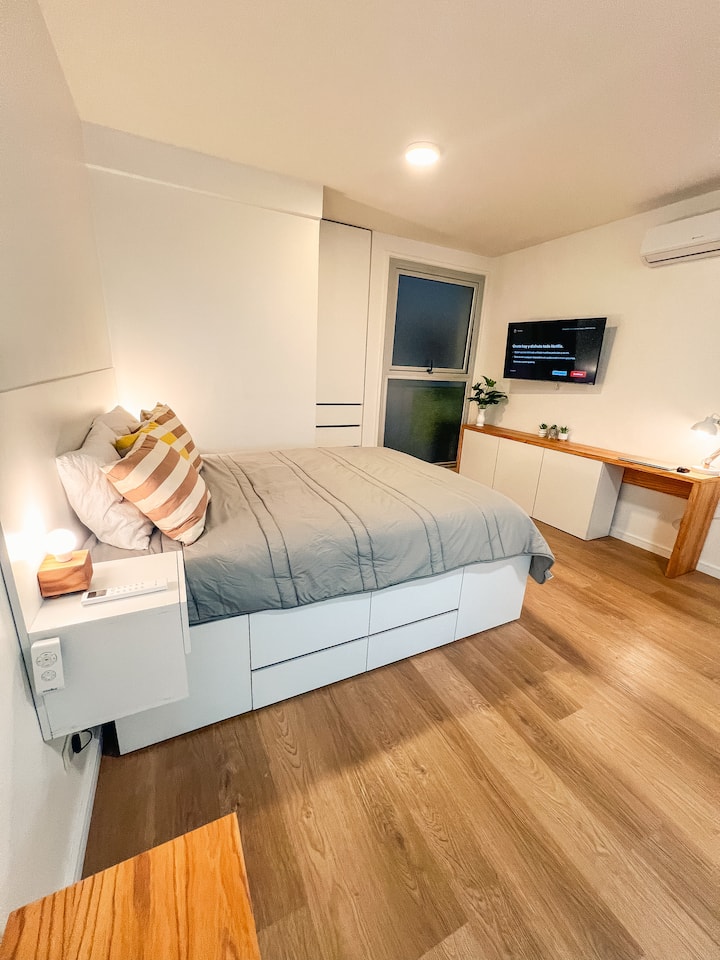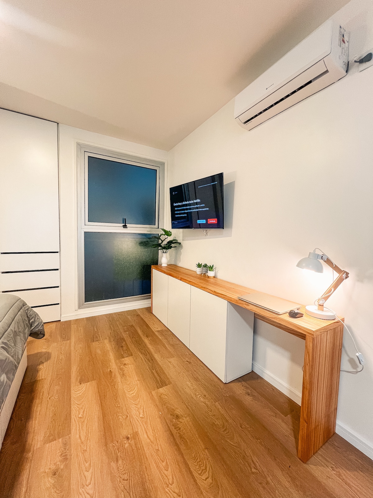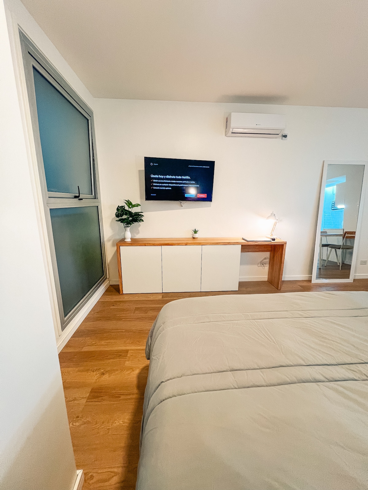Kitnet reciclada em Palermo, para até 2 pessoas, com cama de casal e Smart TV. Inclui WiFi de alta velocidade e banheiro completo. Disponibiliza roupas de cama e toalhas, além de itens de higiene pessoal (shampoo, sabonete e condicionador) e utensílios como cafeteira, sal e óleo. A poucos metros de linhas de ônibus e metrô.