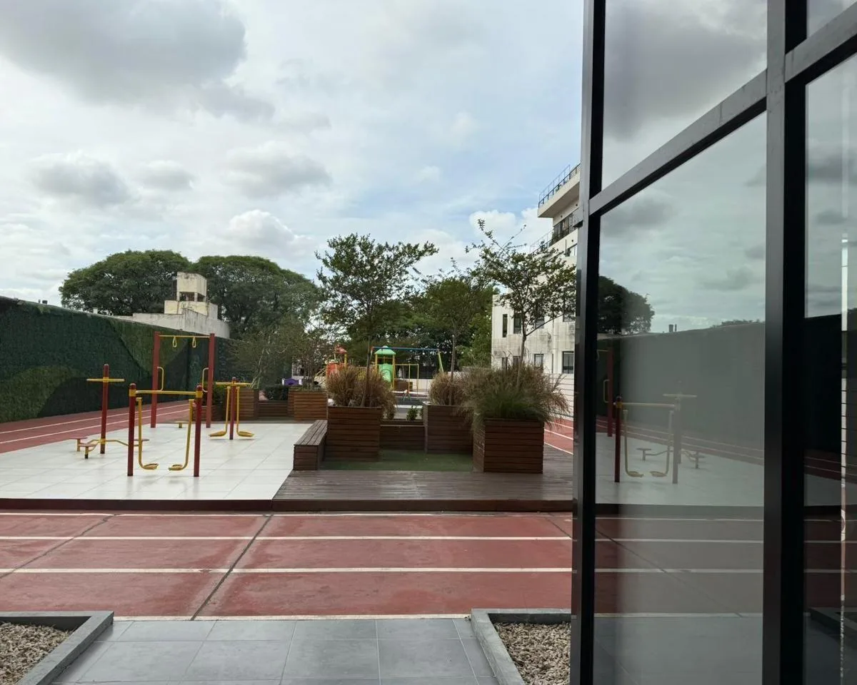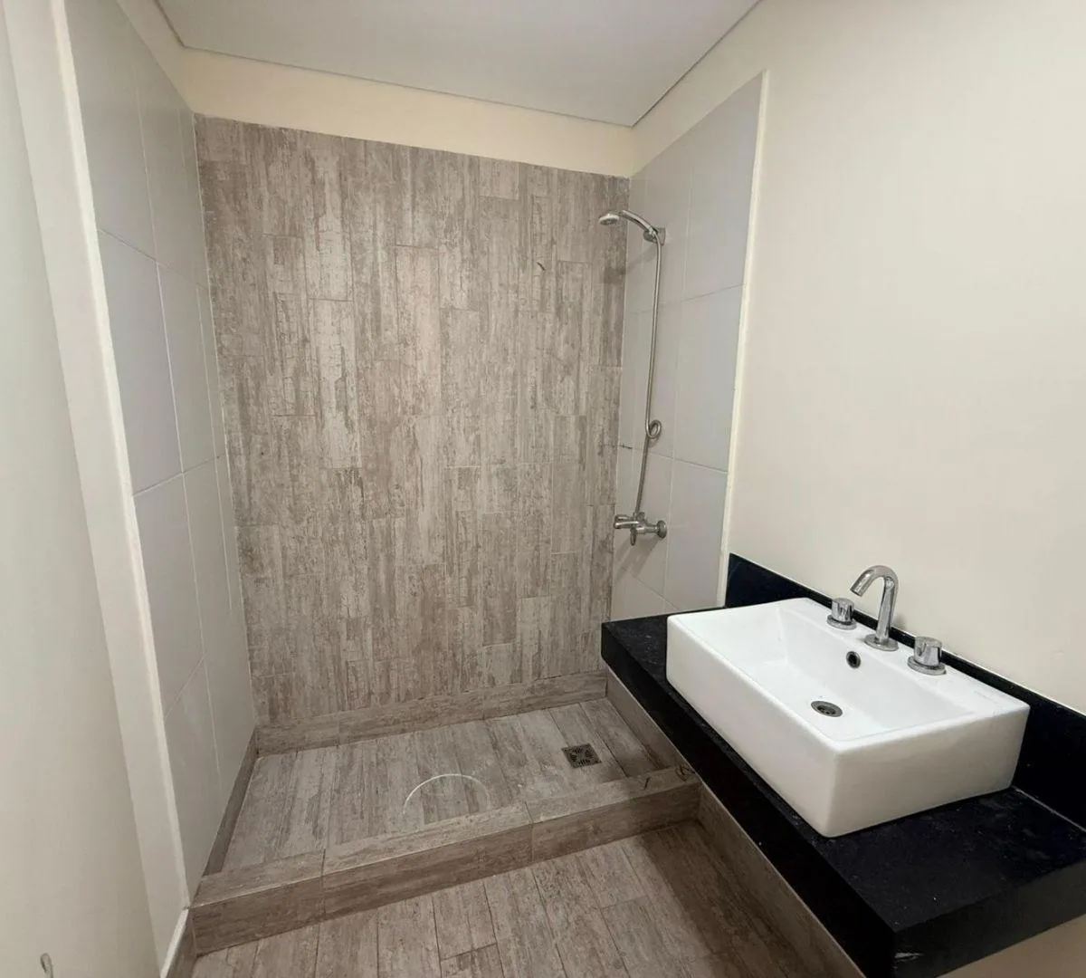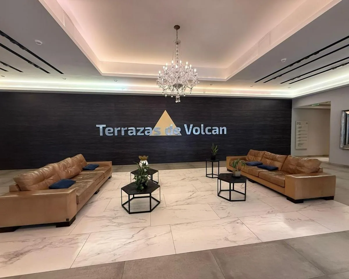 Kitnet (1 ambiente) com vista aberta e pé-direito alto, recém-pintada, com blackouts. O desnível separa o ambiente; a cozinha integrada tem armários sob a bancada e fogão elétrico com 2 bocas. Banheiro completo e amplo. O edifício Terrazas de Volcan tem 4 piscinas (2 climatizadas e 2 externas), área de churrasco e solário, pista de running, academia com vestiários, saunas (masculina e feminina) com vestiários, laundry em 3 pisos e SUM com internet própria em 4 pisos, além de salão de festas (até