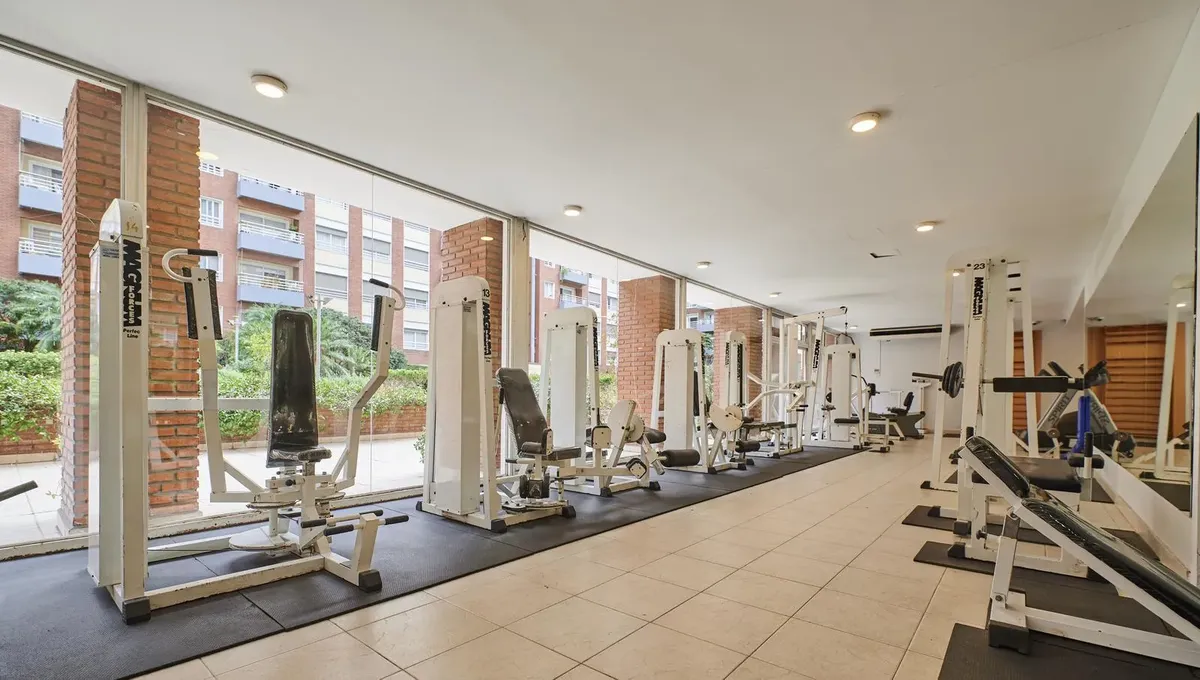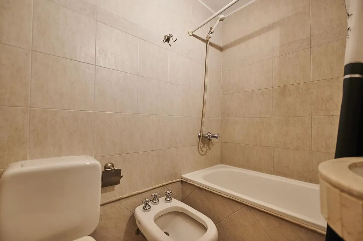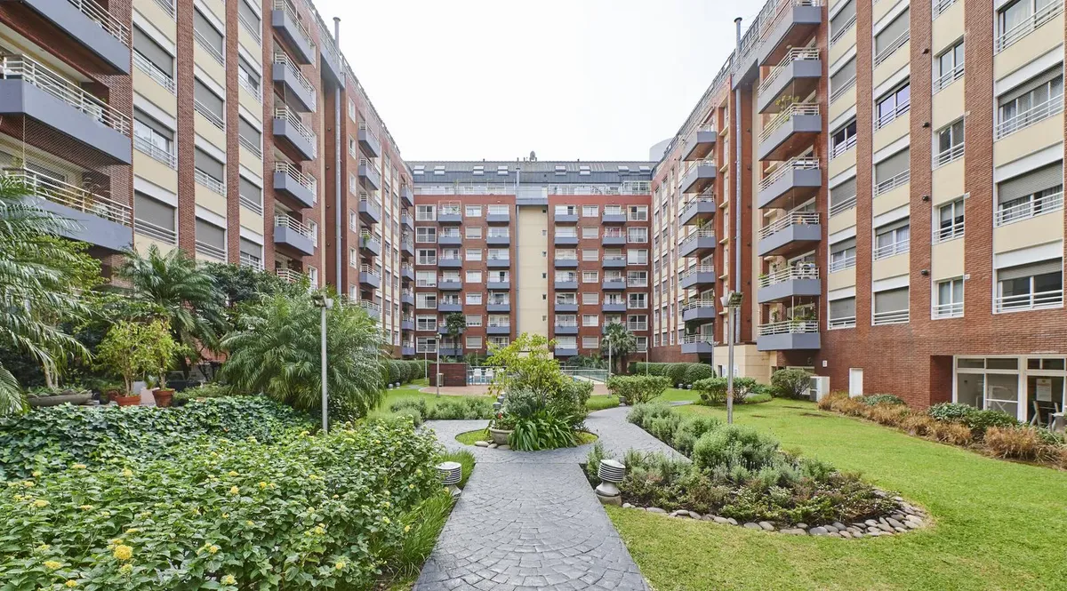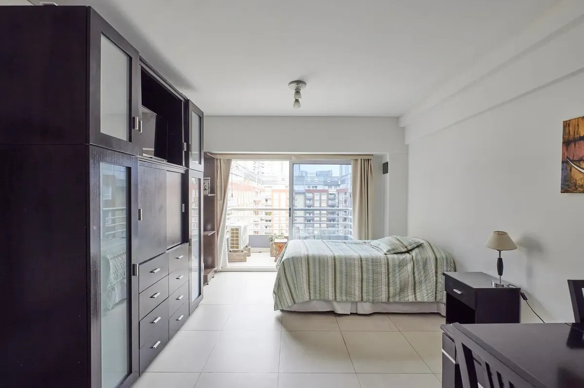 Kitnet de 1 ambiente no edifício Terrazas de Puerto Madero, acesso Acacias. Unidade mobiliada e totalmente equipada, com cama de casal. Varanda de fundos com vista para o parque e para a piscina do complexo; ar-condicionado com função frio/calor. O prédio tem duas piscinas, academia, sauna, lavanderia e salão de festas, além de segurança presencial 24 horas e acesso controlado por câmeras. Condomínio de ARS 179.000, com AYSA incluída. Disponível a partir de 1º de abril.