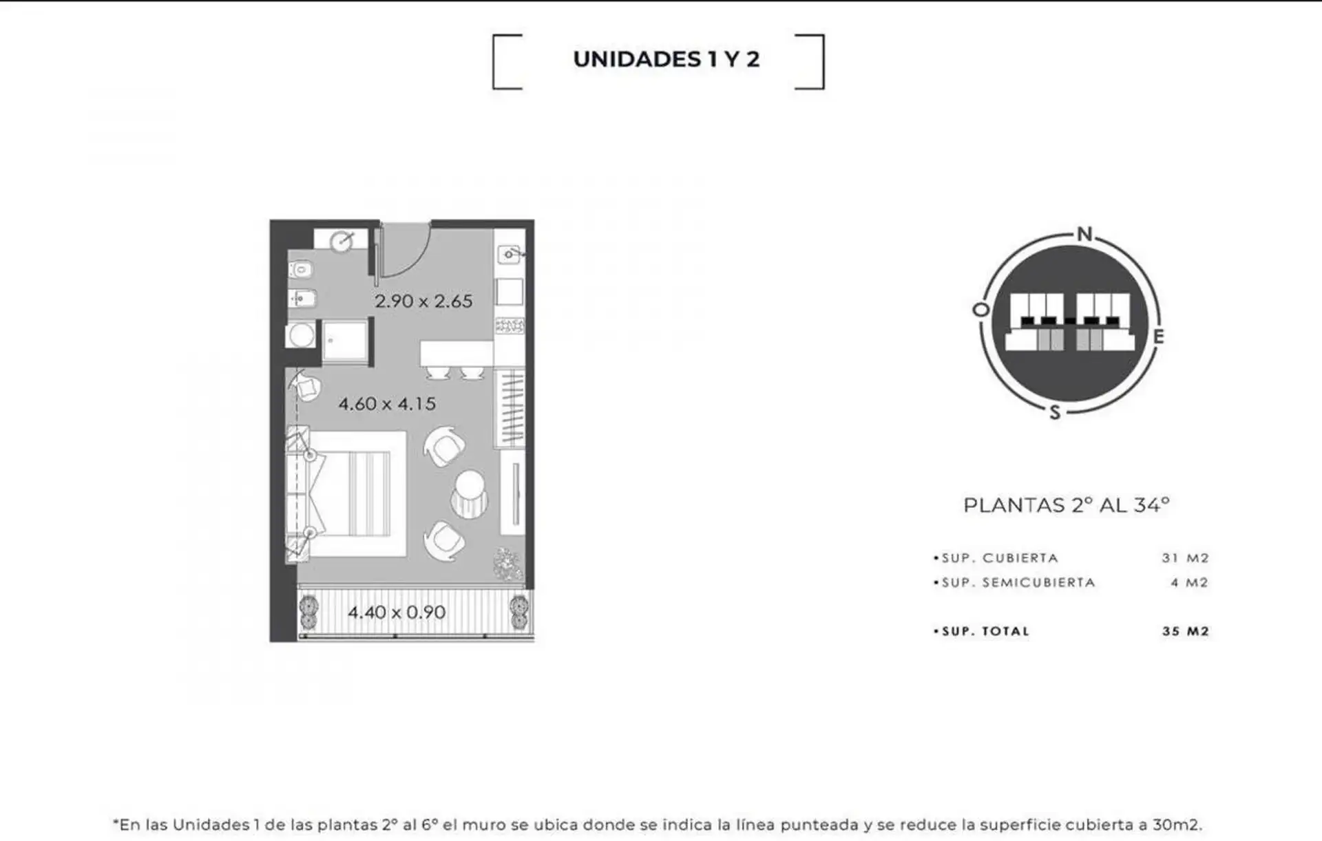 Apartamento de 35 m² em Puerto Madero, conceito estilo hotel, com segurança 24 h. O imóvel tem sistema split frio/calor, aberturas com vidro duplo e banheiro com acabamentos modernos. Inclui varanda e acesso a academia, sauna seca e úmida, piscina aquecida, espaço de coworking e 2 salões de festas com área de churrasco; o prédio também oferece piscina no piso 36 com solário.