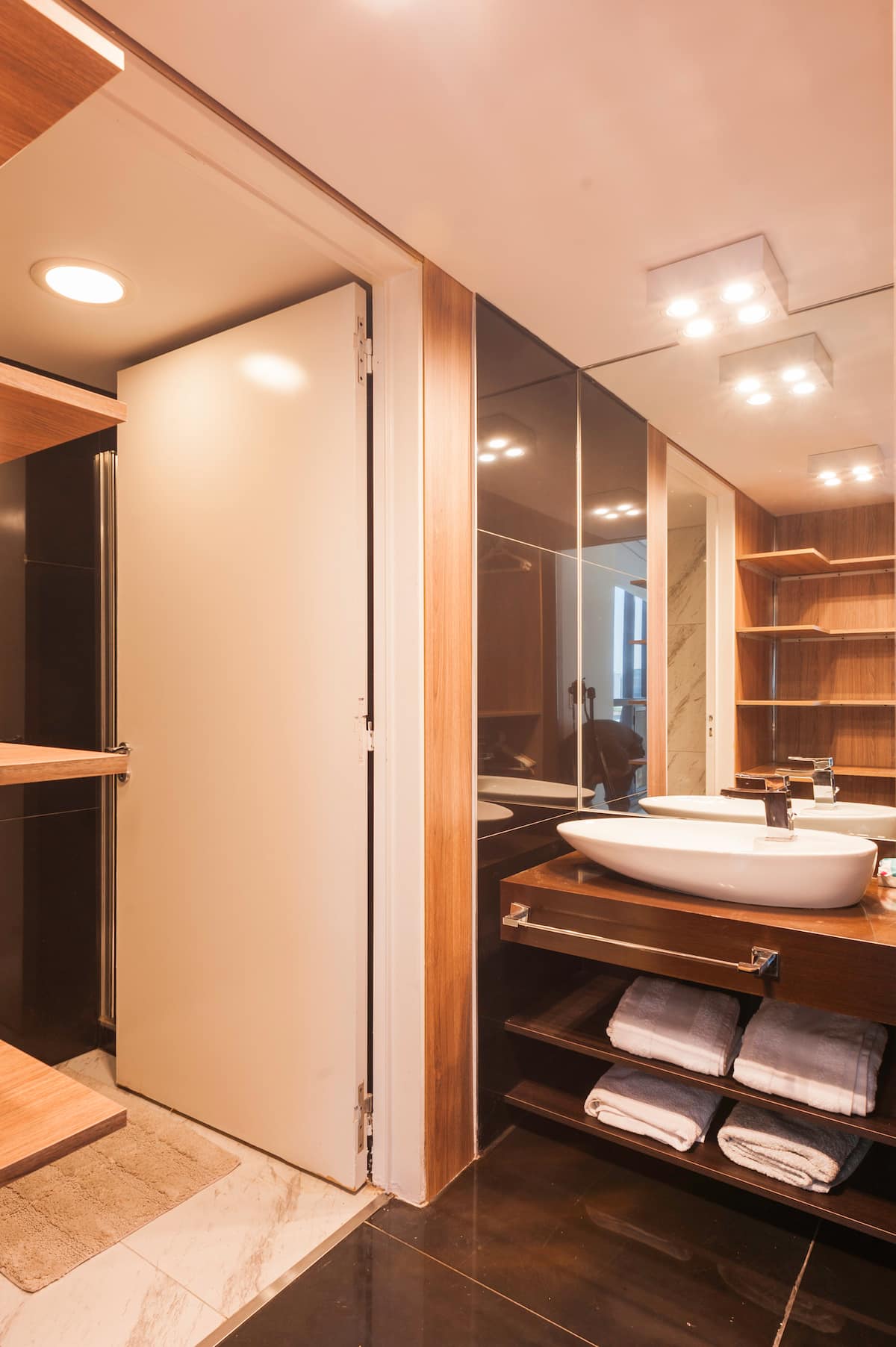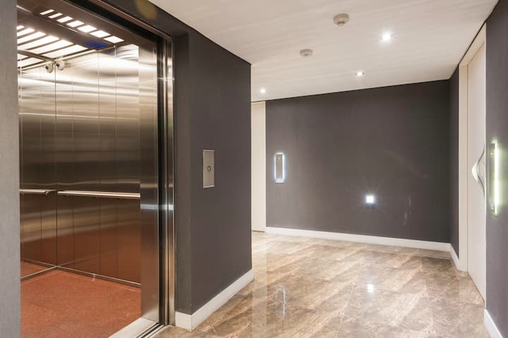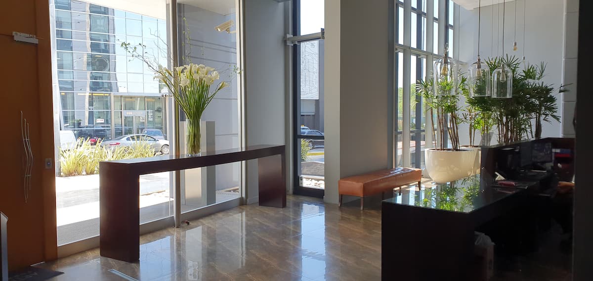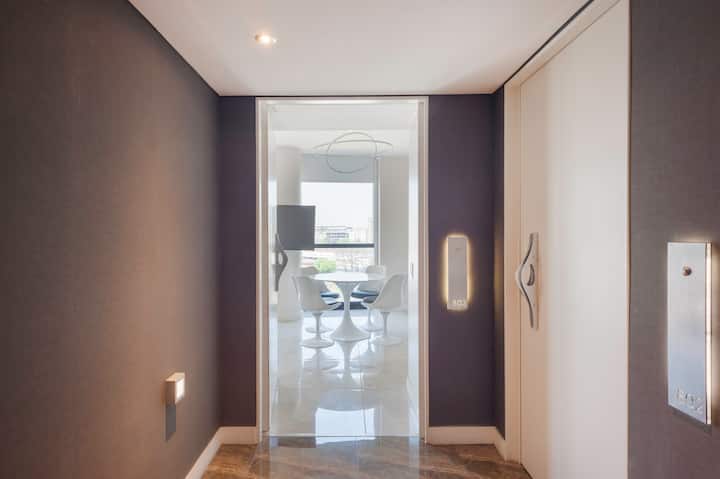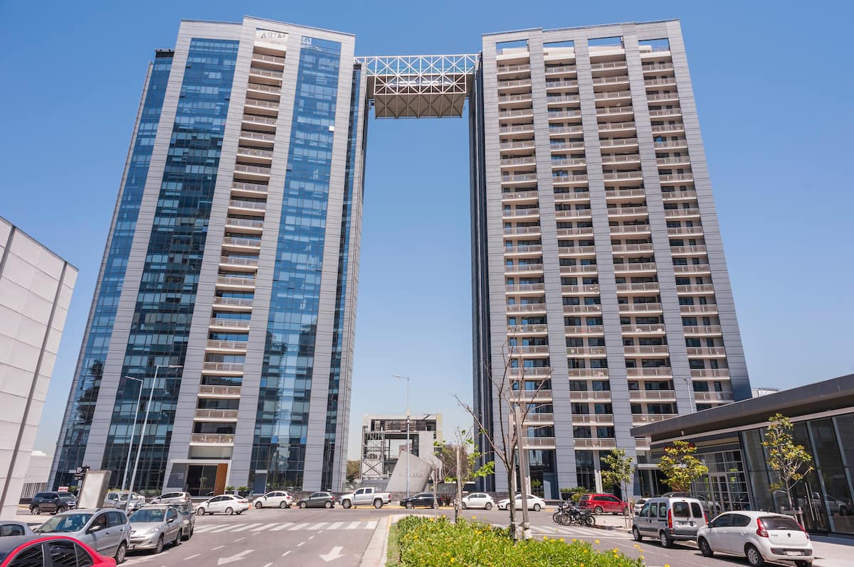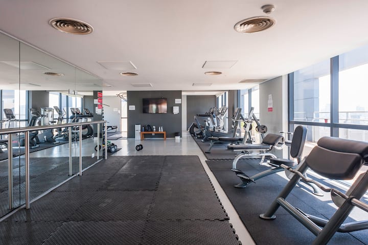 Kitnet em Puerto Madero, no 8º andar, com 38 m². Tem janelas do piso ao teto com vidro acústico duplo, com vista para o porto e para o canal. A unidade é para até 3 pessoas e inclui cama de casal, sofá-cama, TV LED de 50 polegadas, cozinha equipada com forno e fogão elétrico, cafeteira, geladeira com freezer, micro-ondas e torradeira, além de máquina de lavar e banheiro. Há internet de 300 MB por fibra óptica e água filtrada; não há oferta de comida ou café. O prédio tem segurança 24 horas; esta