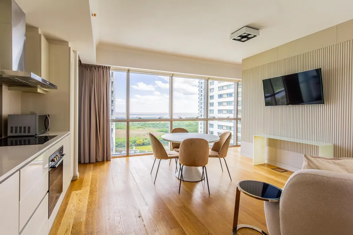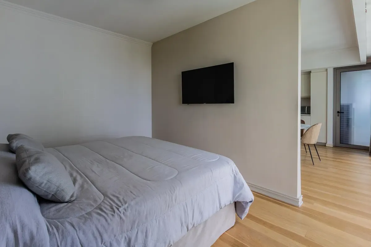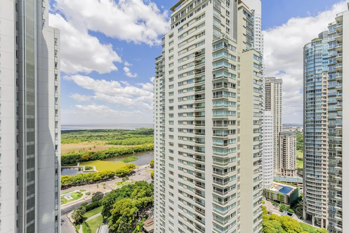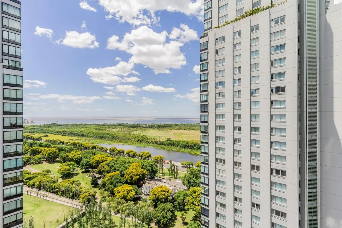 Kitnet (1 ambiente) em Puerto Madero, no Alvear Icon Hotel & Residences, no 25º andar, com varanda para os fundos. Unidade mobiliada e dividida para criar privacidade, com vista para a reserva ecológica. Inclui depósito (baulera) e vaga de garagem. O valor do aluguel é somado a condomínio (expensas) e serviços (valores a consultar). O edifício oferece spa, centro de fitness, piscina externa e interna, lobby bar e outros espaços gastronômicos, além de centro de convenções para 1.200 pessoas e áre