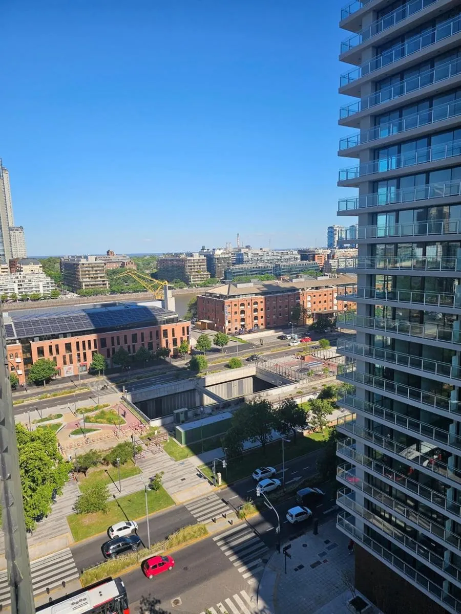 Kitnet novo (nunca habitado) em Puerto Madero, no 11º andar, com varanda. Cozinha elétrica com forno, banheiro completo com ducha e ar-condicionado frio-calor. Janelas com vidro duplo (DVH) e cortinas blackout e sunscreen de gasa. O prédio recém-inaugurado tem área de co-working e salas de reuniões no mesmo piso, além de TV-LED de 93 polegadas, central de conferências; no 7º andar há sala de massagens e sauna; no 6º, academia e sala de yoga; no 36º, salão de festas com cozinha, terraço e lavande