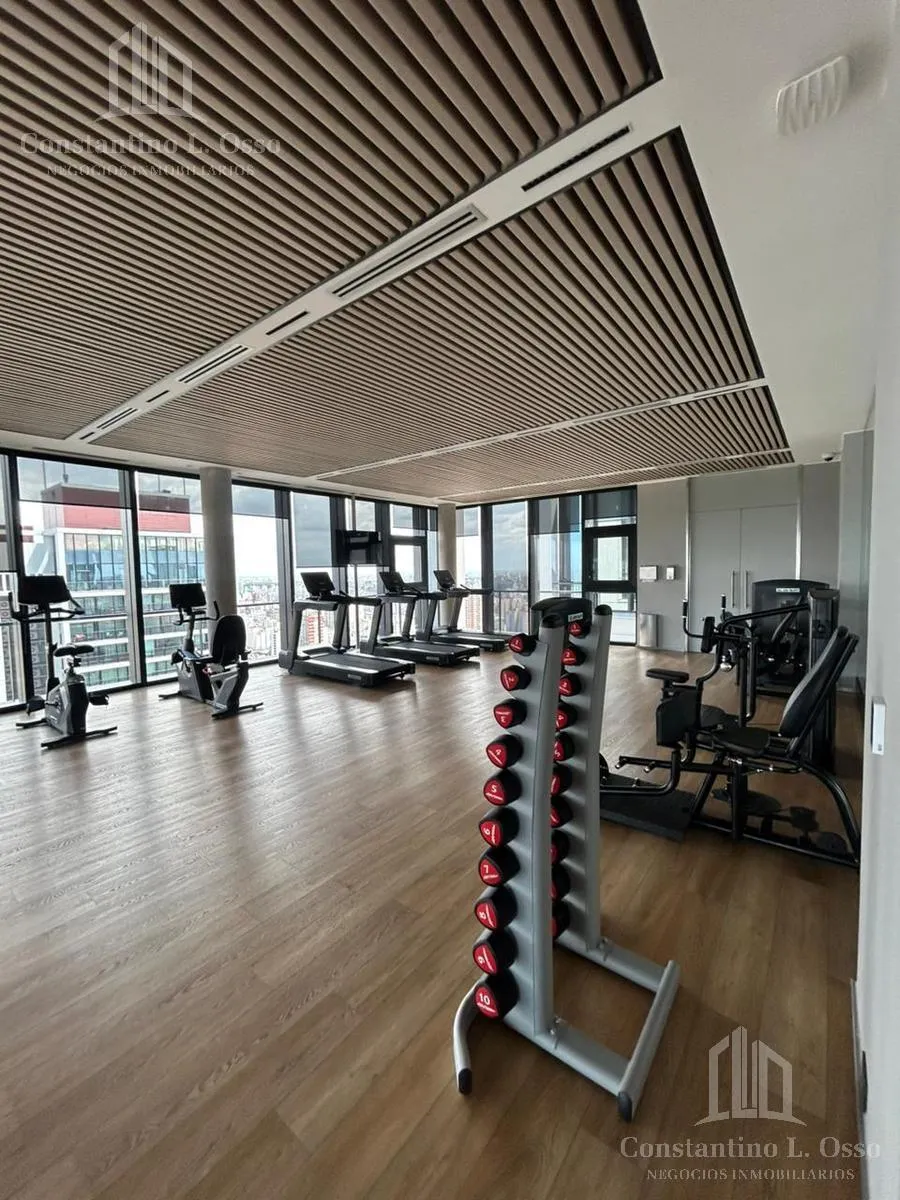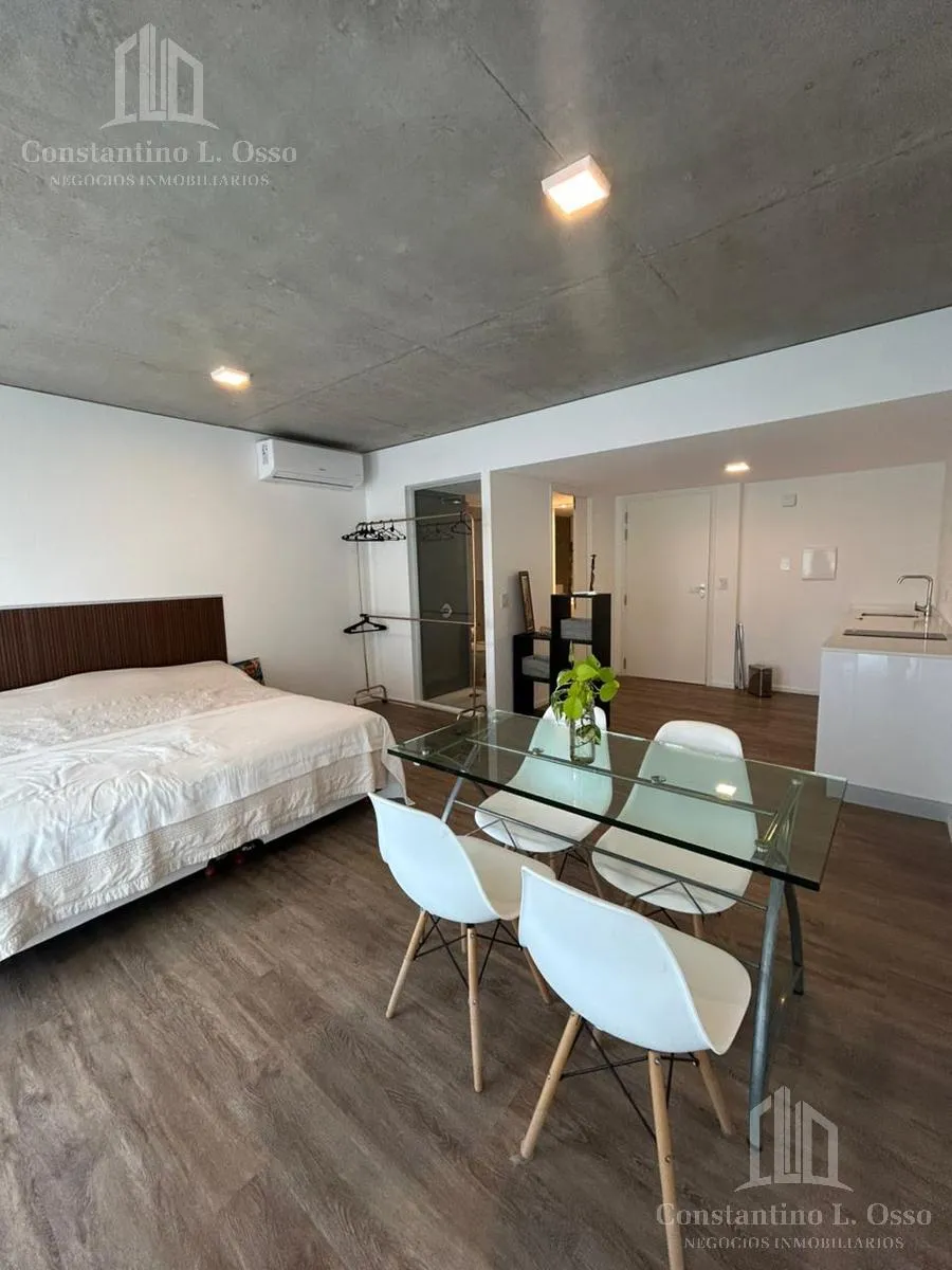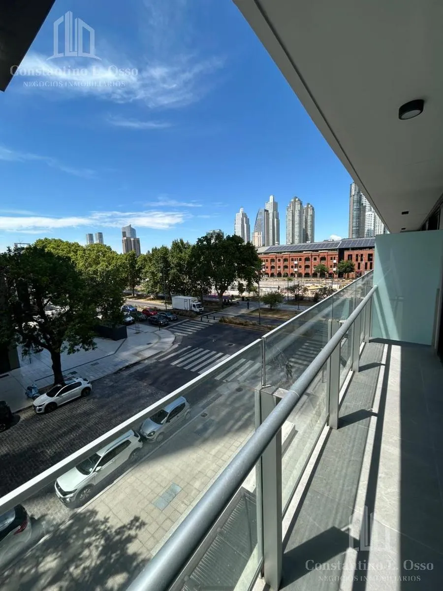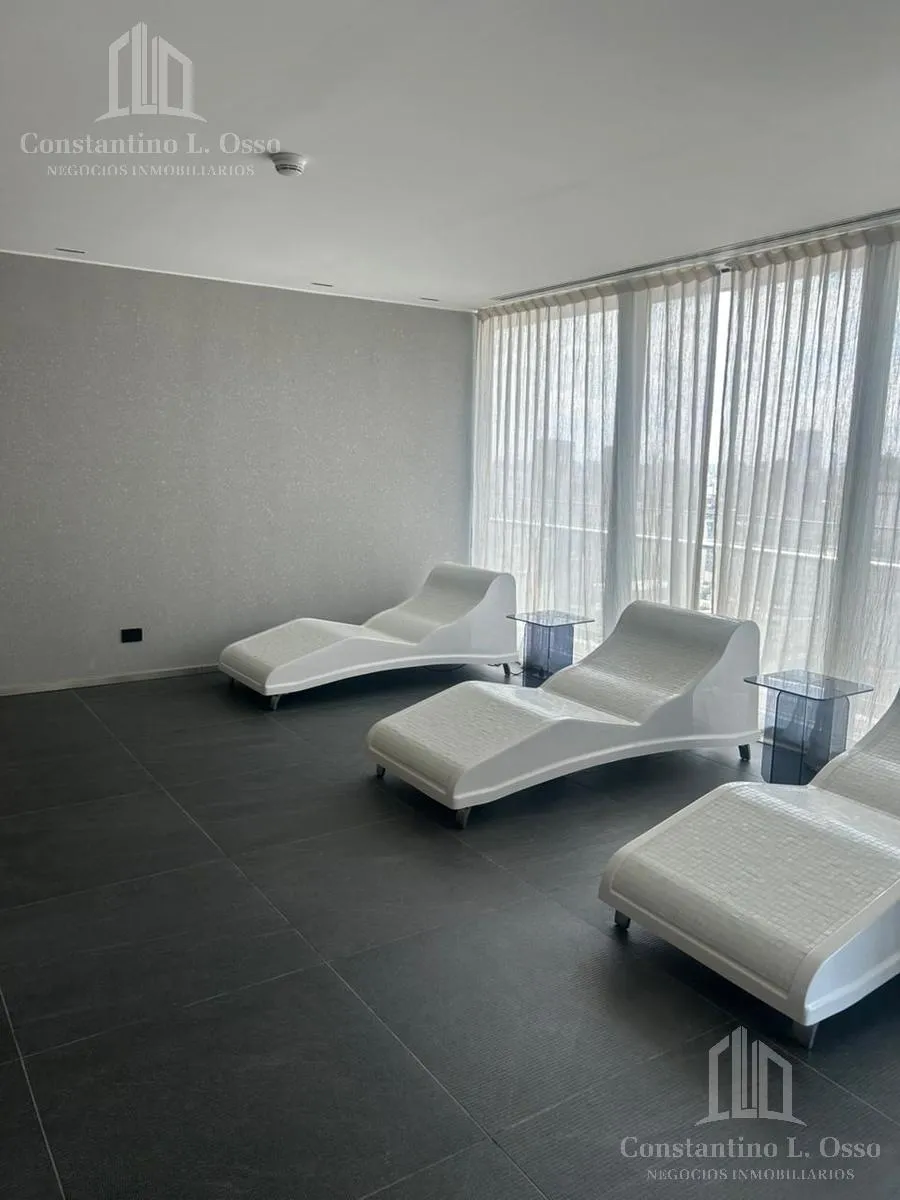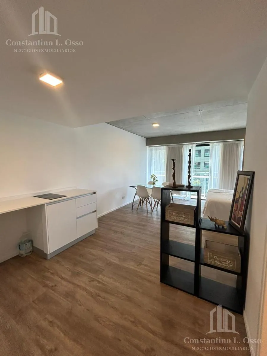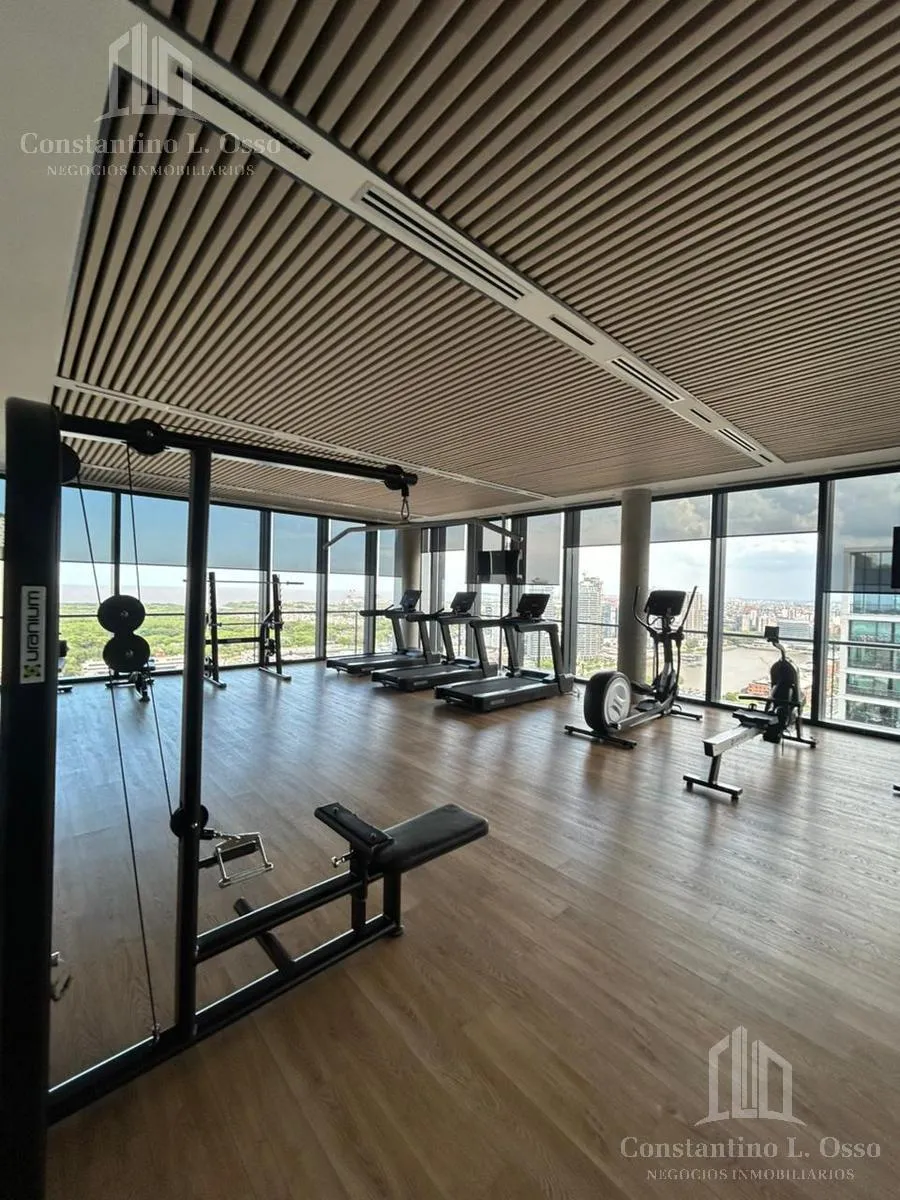 Kitnet (monoambiente) no Quartier del Bajo, no 3º andar, com vista para o Rio. Inclui banheiro completo e cozinha integrada. O edifício fica entre Huergo e Venezuela e tem piscina climatizada, SUM, sauna, spa, segurança, academia e área de churrasco, além de salas de massagens. O anúncio menciona condomínio (expensas).