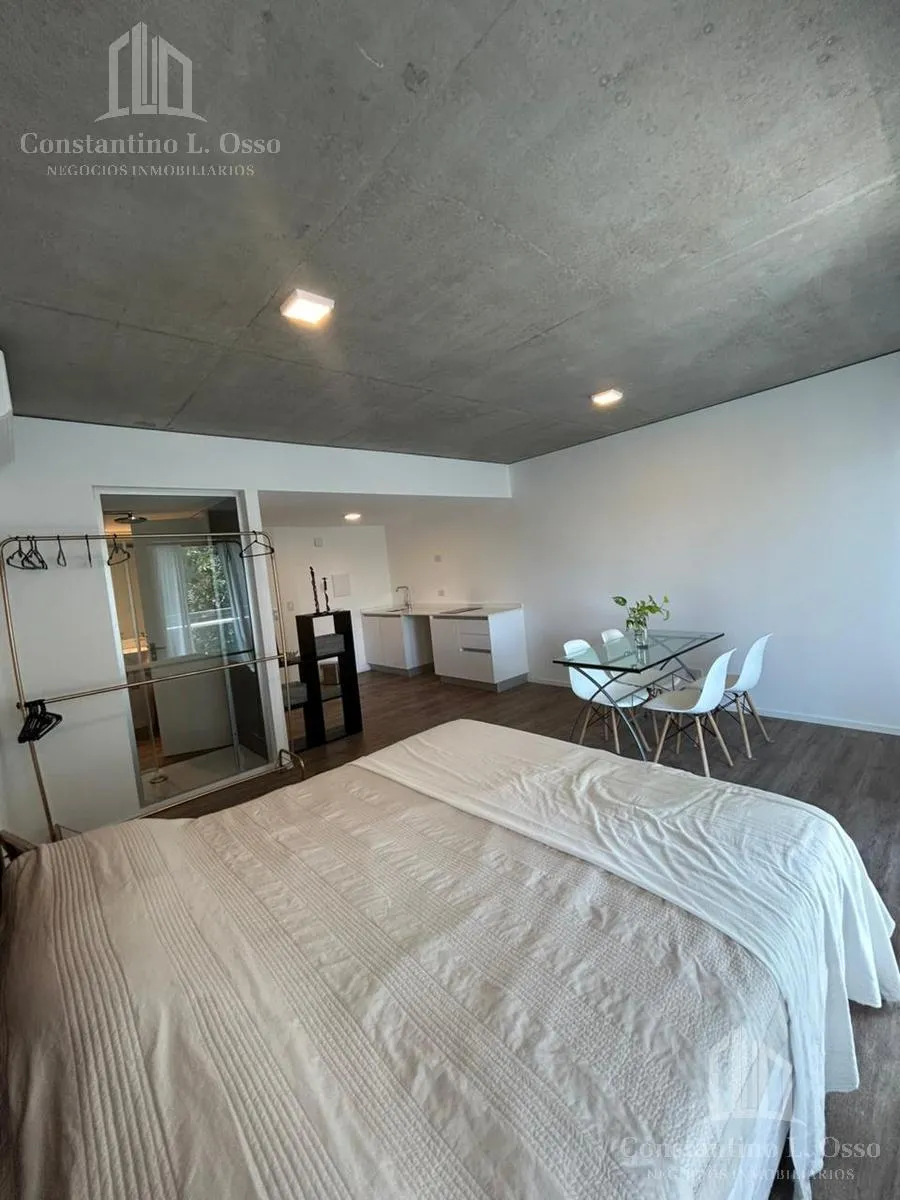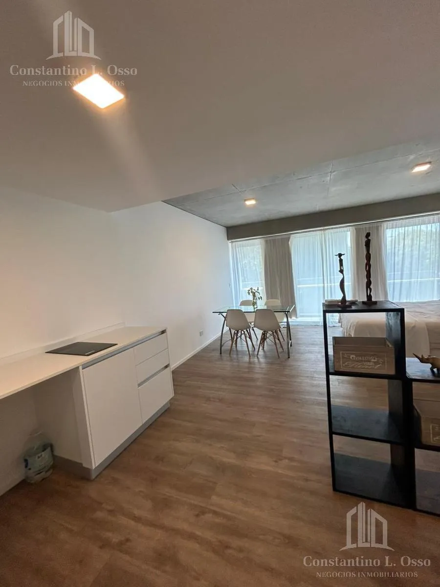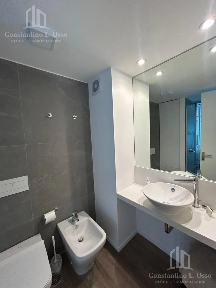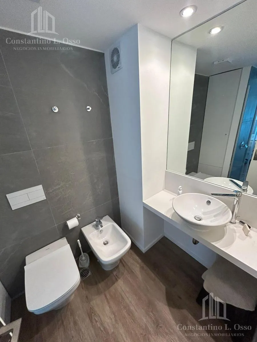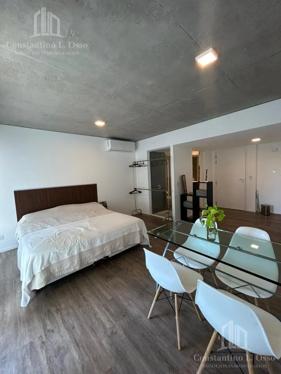 Kitnet (monoambiente) no Quartier del Bajo, no 3º andar, com vista para o Rio. Inclui banheiro completo e cozinha integrada. O edifício fica entre Huergo e Venezuela e tem piscina climatizada, SUM, sauna, spa, segurança, academia e área de churrasco, além de salas de massagens. O anúncio menciona condomínio (expensas).