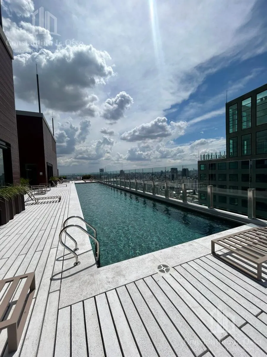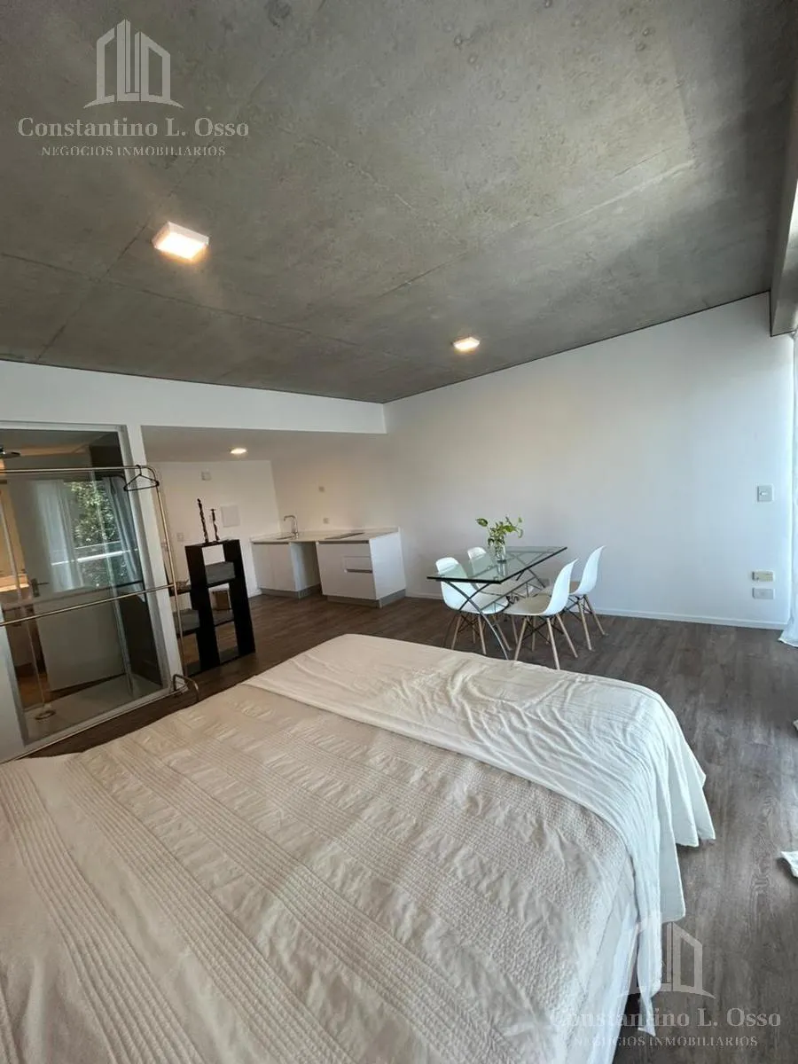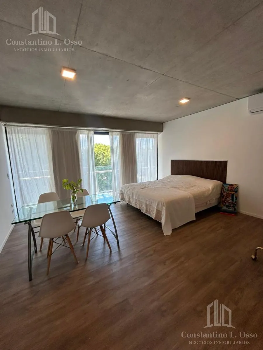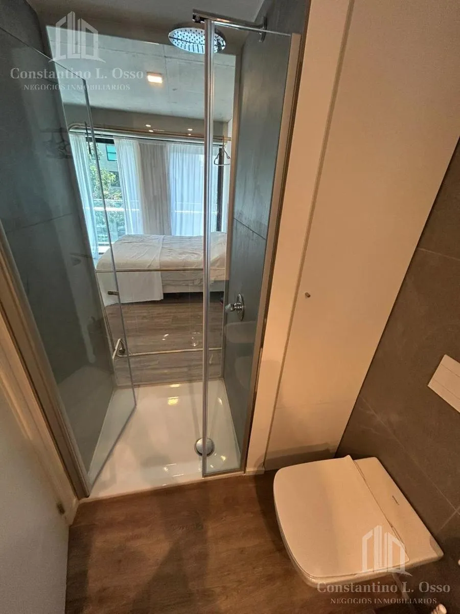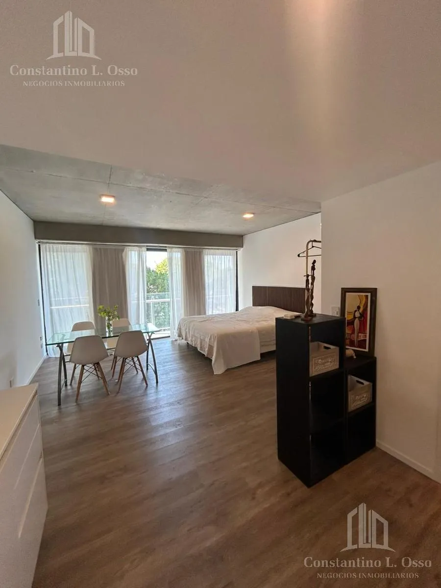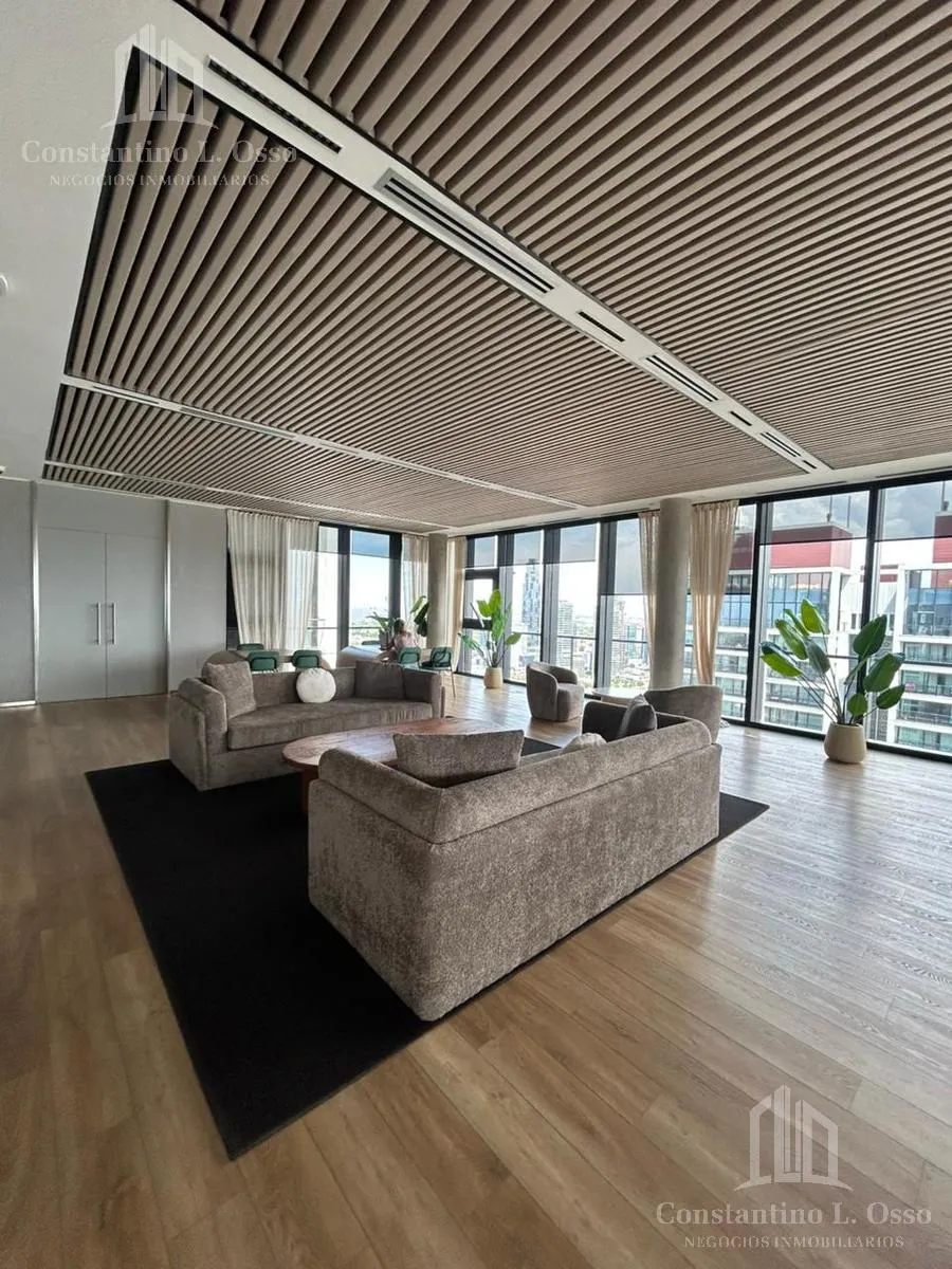 Kitnet (monoambiente) no Quartier del Bajo, no 3º andar, com vista para o Rio. Inclui banheiro completo e cozinha integrada. O edifício fica entre Huergo e Venezuela e tem piscina climatizada, SUM, sauna, spa, segurança, academia e área de churrasco, além de salas de massagens. O anúncio menciona condomínio (expensas).