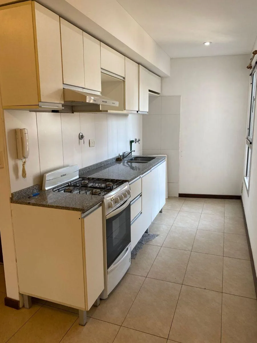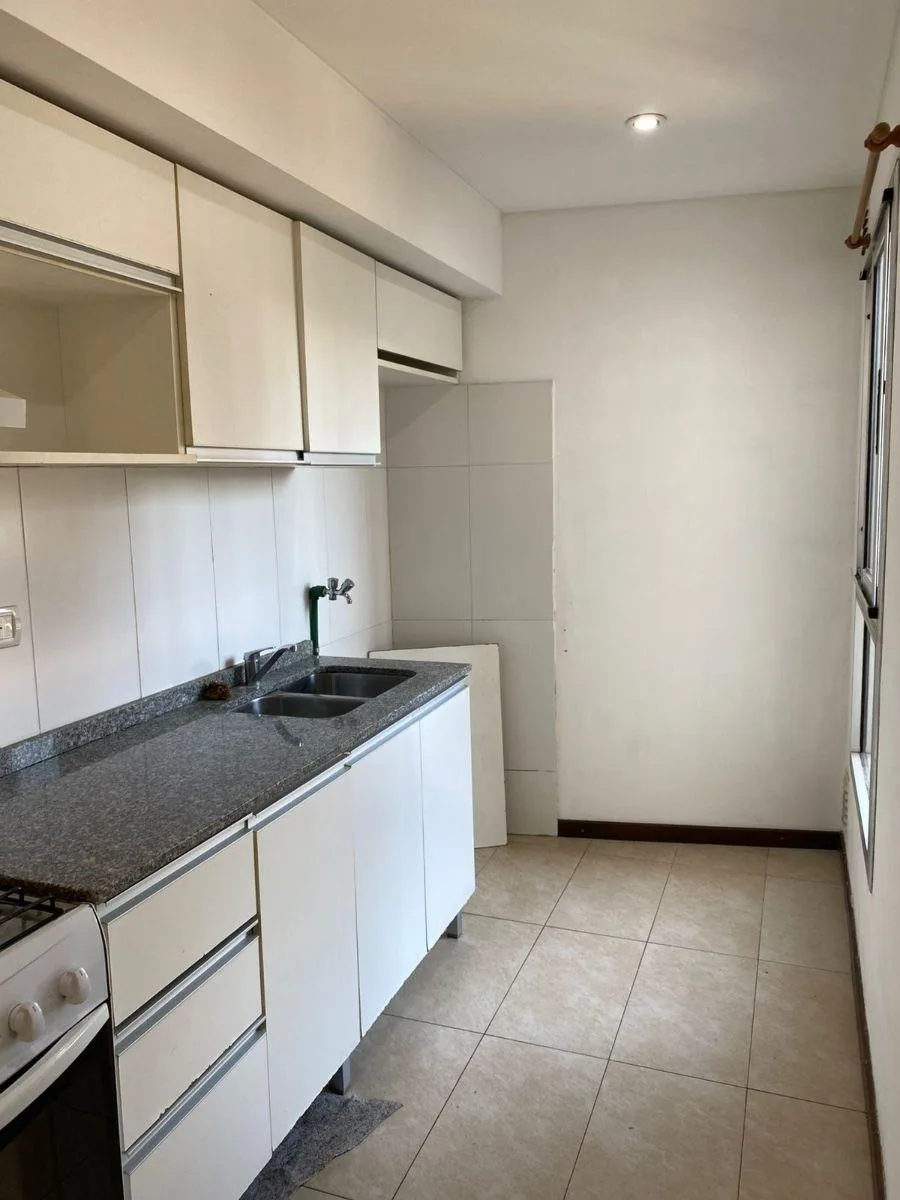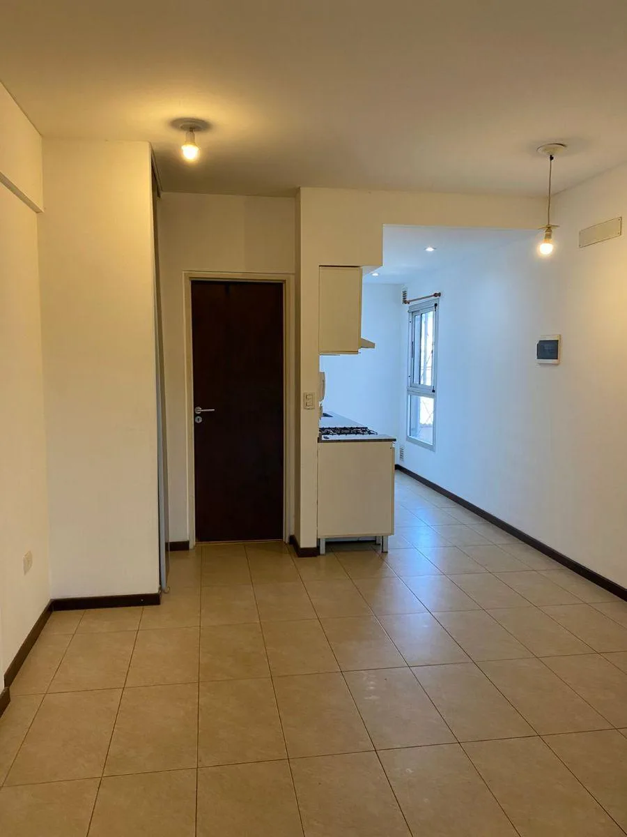Kitnet no 1º andar, acessada por escada, com ambiente integrado e balcão de frente para a rua. Inclui armário com portas de correr, banheiro completo e cozinha semi-integrada com alacena e armário inferior, além de espaço para máquina de lavar. Aluguel + condomínio (com AYSA) + ABL + Edesur + Metrogas + seguro contra incêndio. Contrato de 24 meses com reajuste a cada 4 meses pelo índice ICL; não são aceitos animais de estimação.